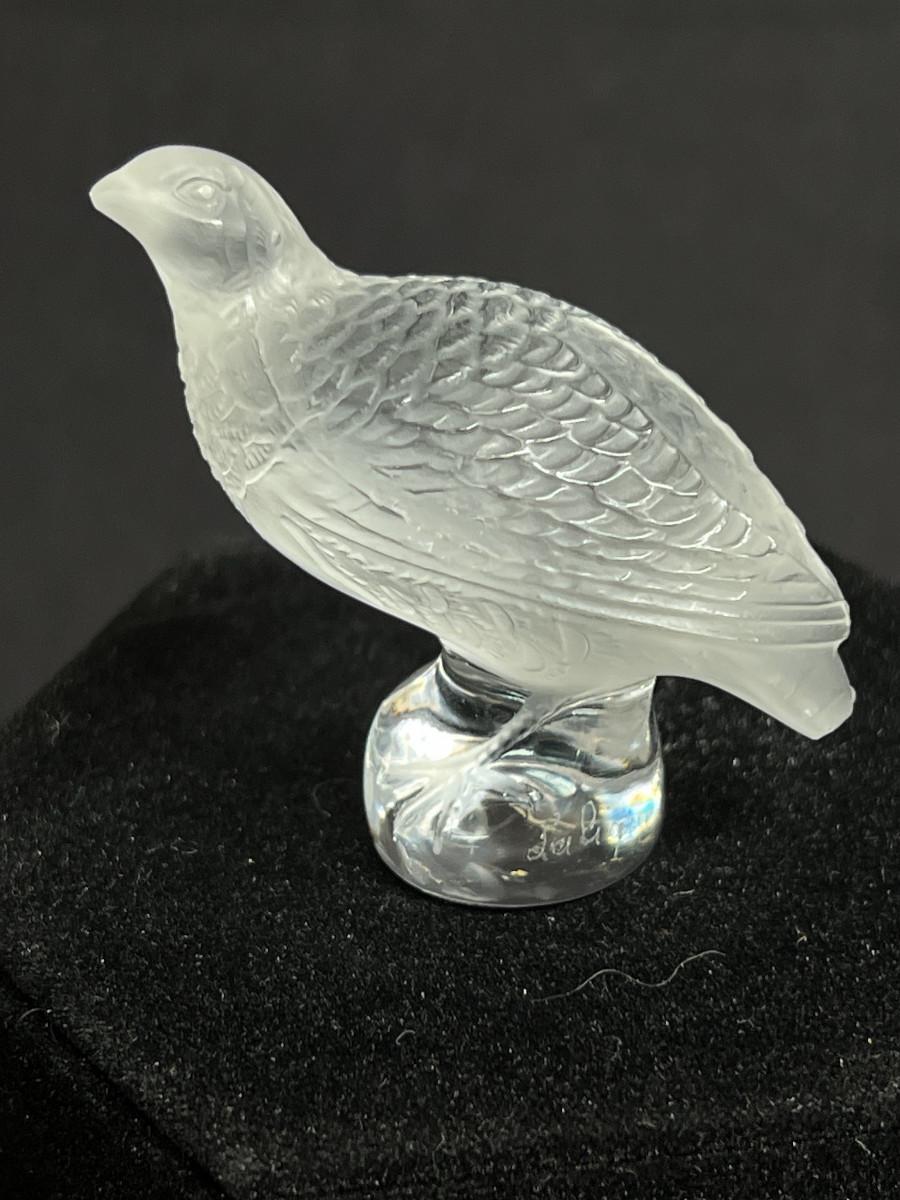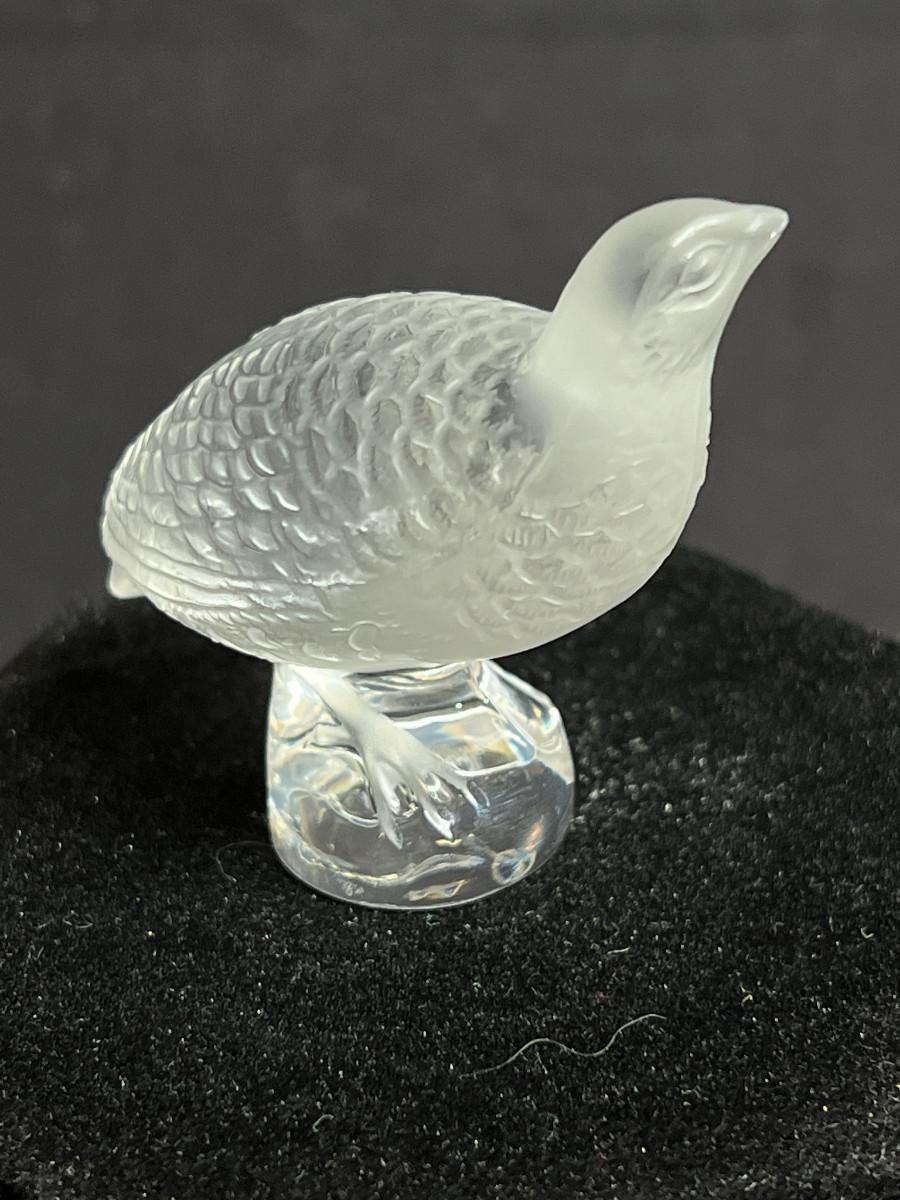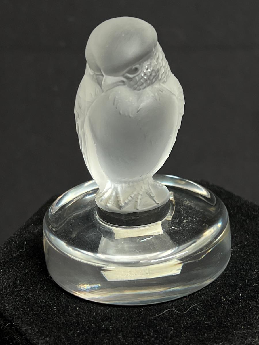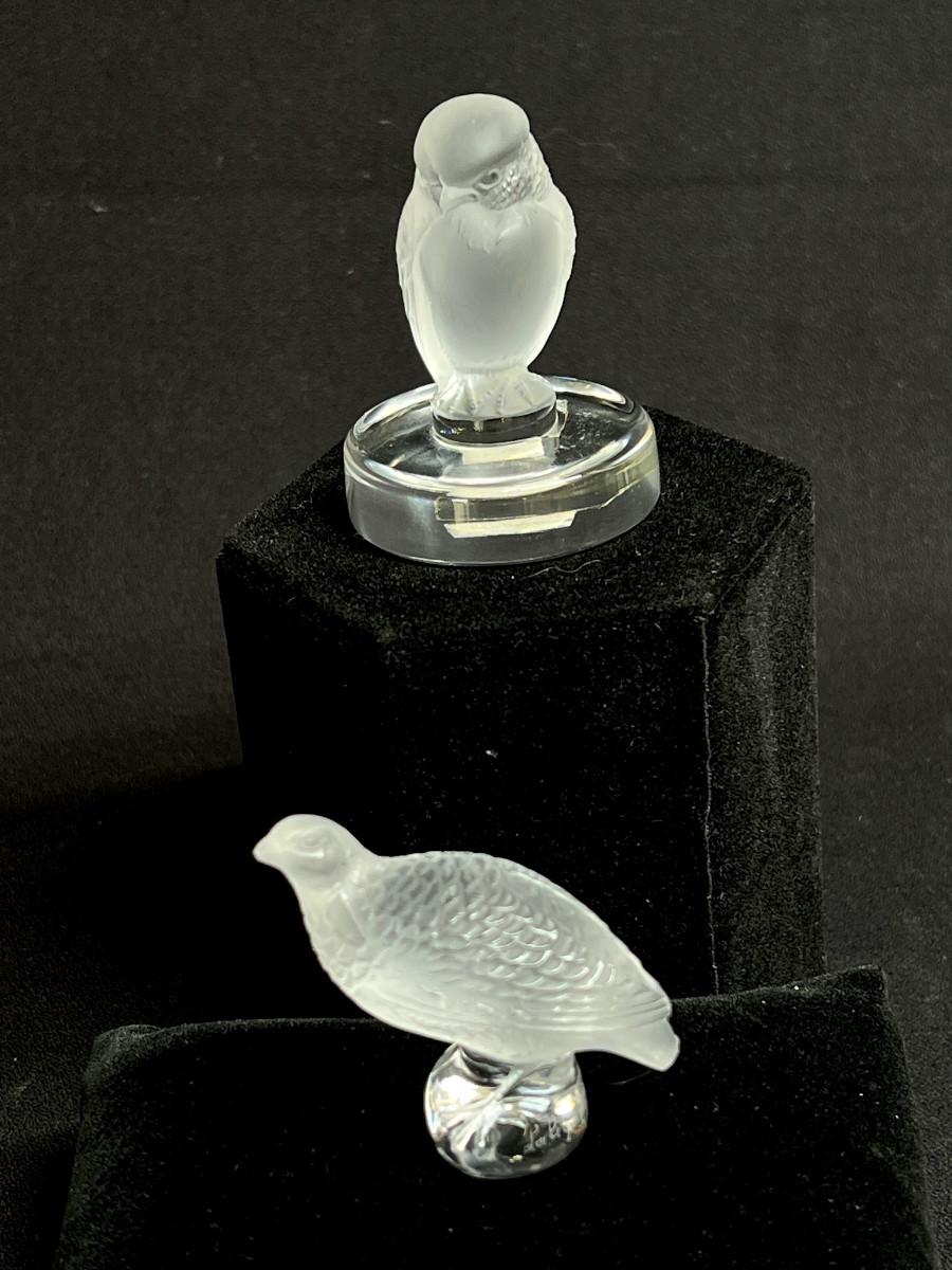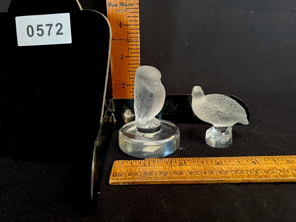 Pair of delightfully small LALIQUE birds - Pheasant and Angry little Raptor Bird of Prey. "Rapace"