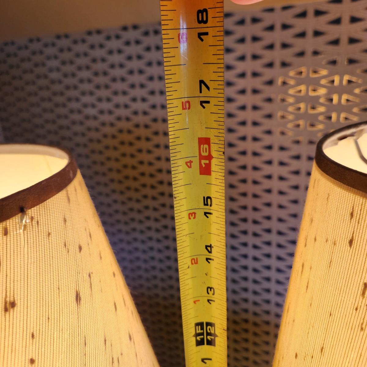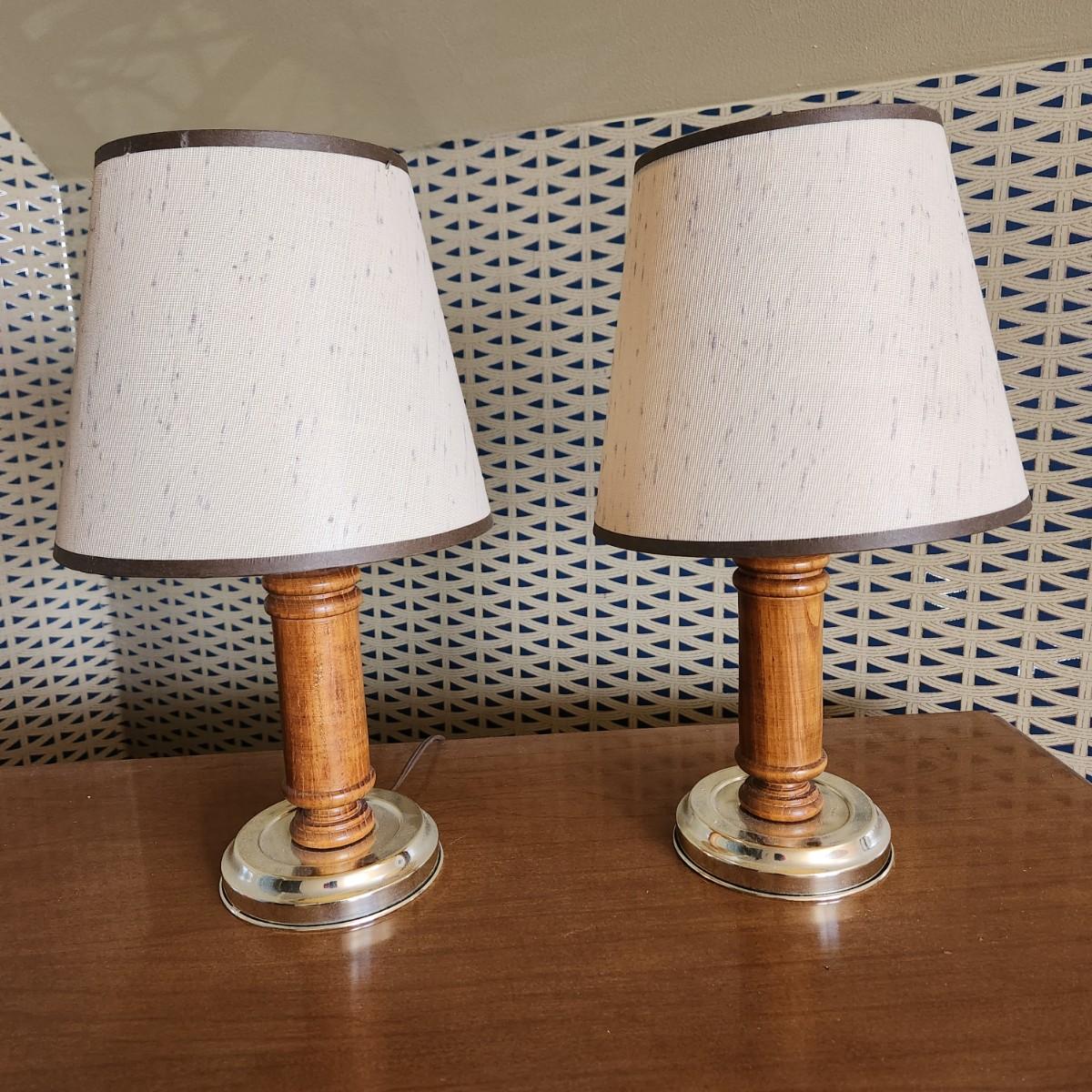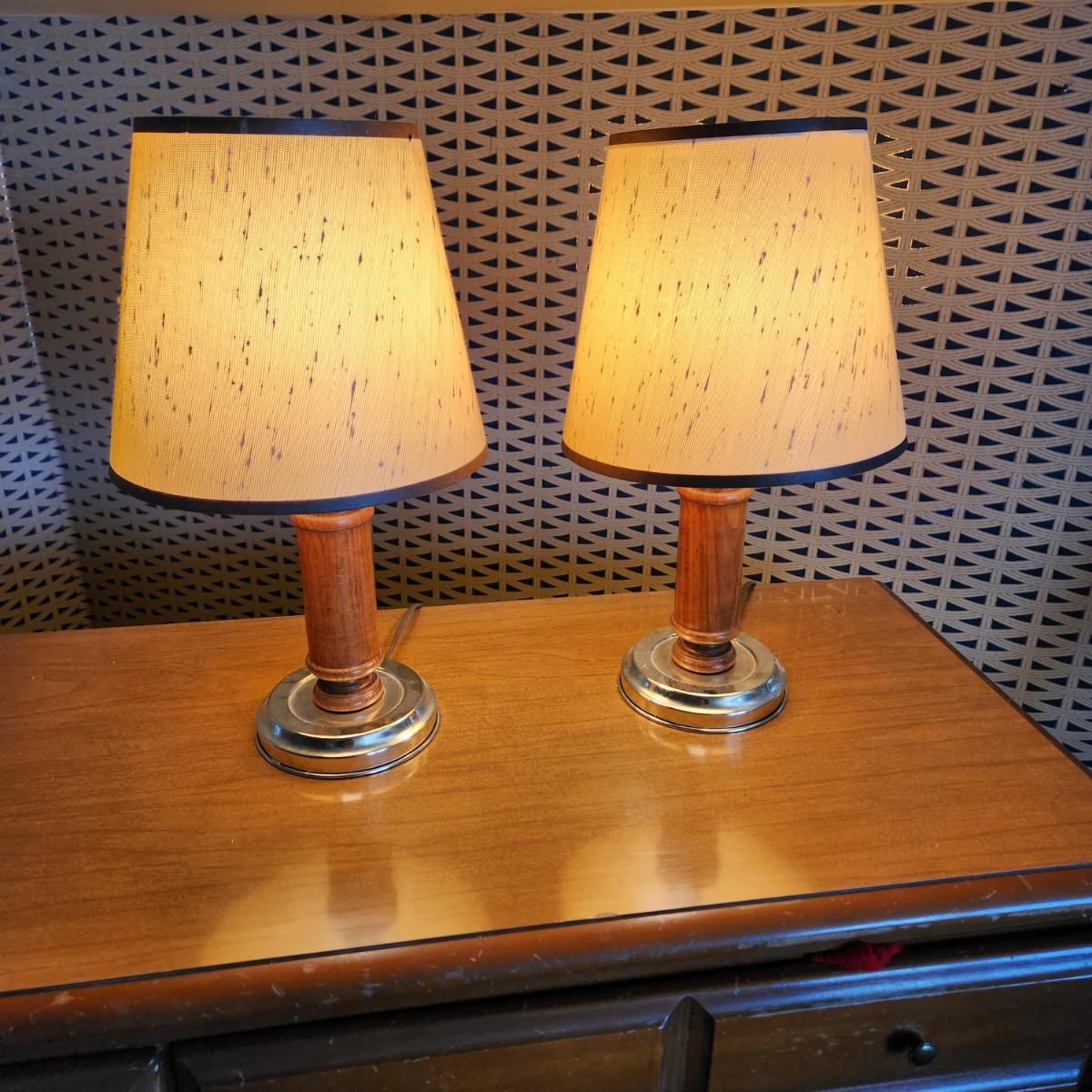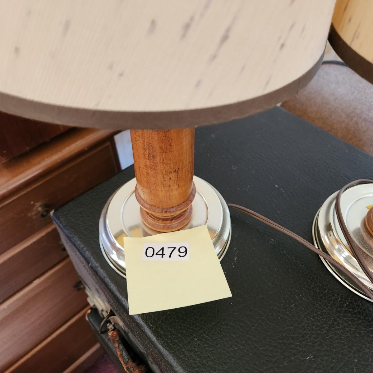 Pair Small Wood Mid Century MCM Table top Lamps Lot 479