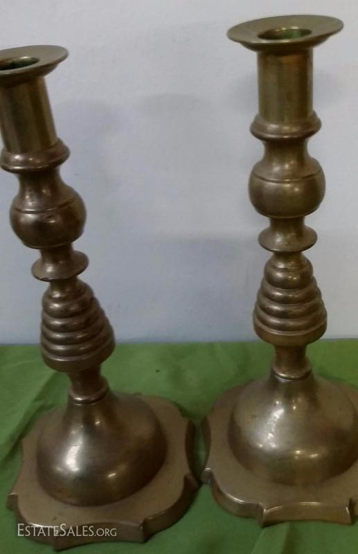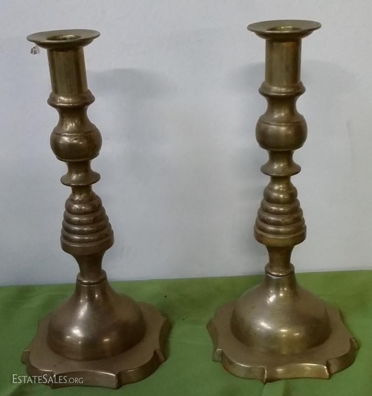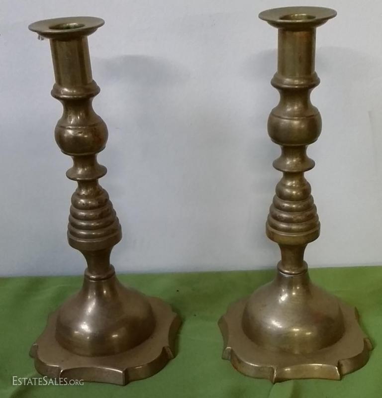 Solid Brass pair candleholders 9" high