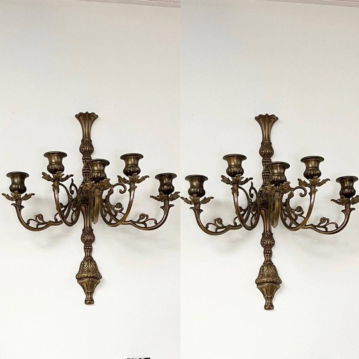 Pair ~ Solid Brass 5 Candelabra Wall Sconces