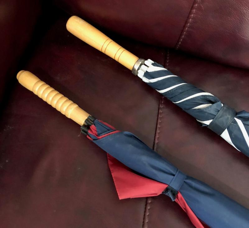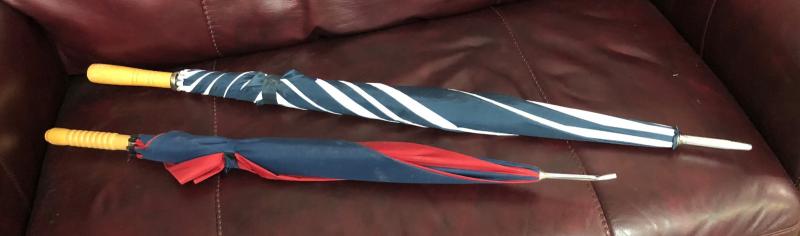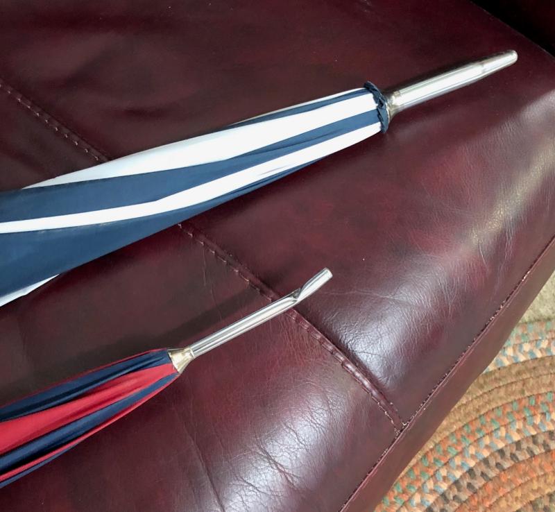 Normal use on this pair of vintage stadium umbrellas...a small bend on the tip of one..as shown...
