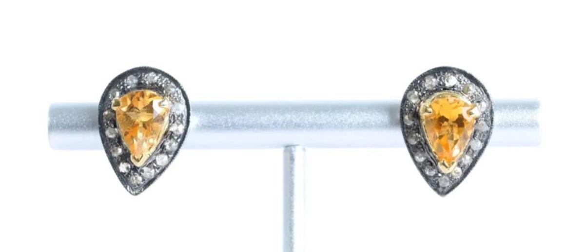 Pair, Sterling 3.10ctw Citrine & Diamond Earrings