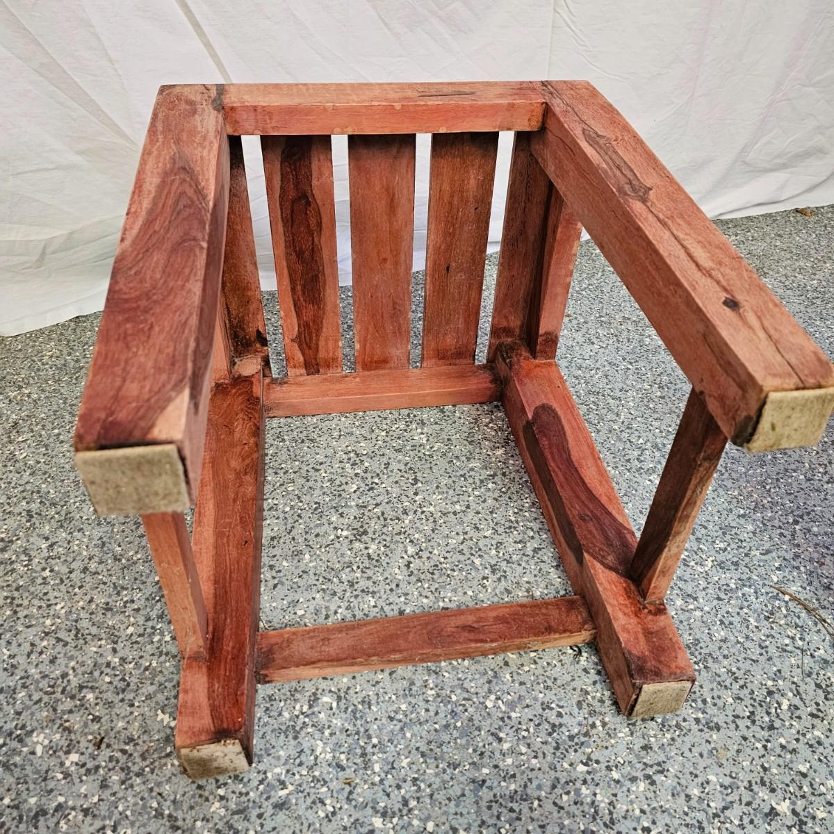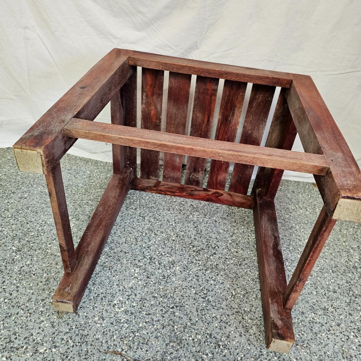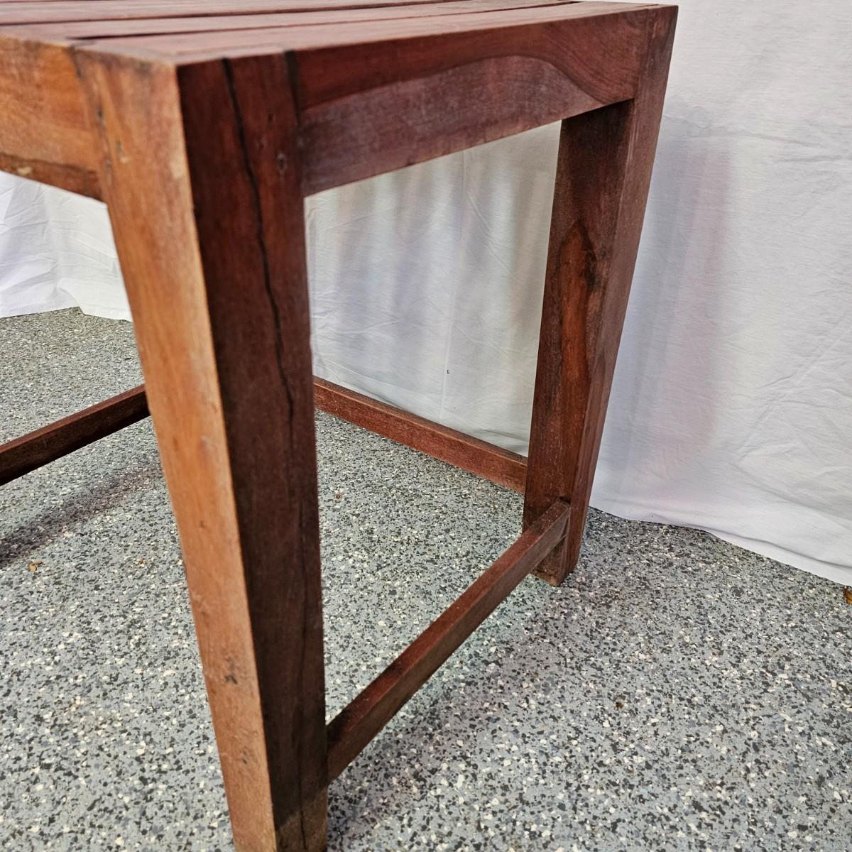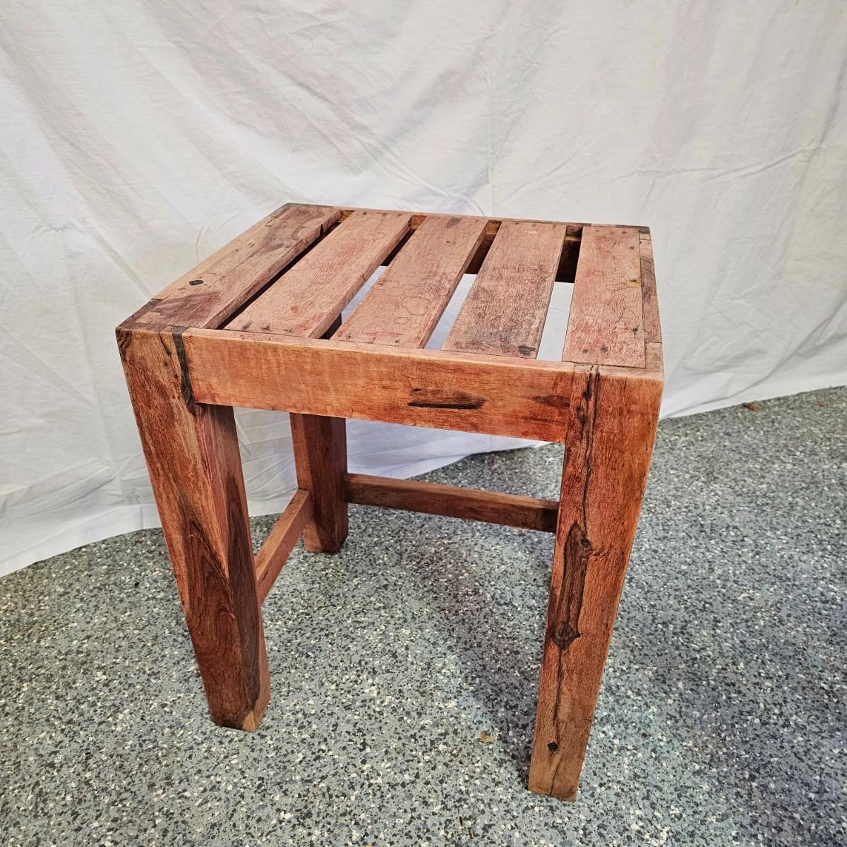 A stacking pair of teak wood end tables. Larger table is 23.5" x 19.5" x 23" h, smaller is 15" x 17" x 20"h. Solid wood, heavy. Some slight blemishes on tops, see photos for details. Local pickup only.
