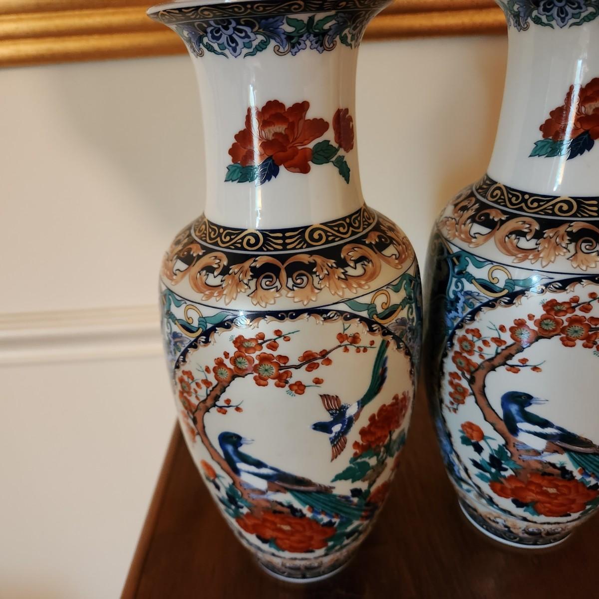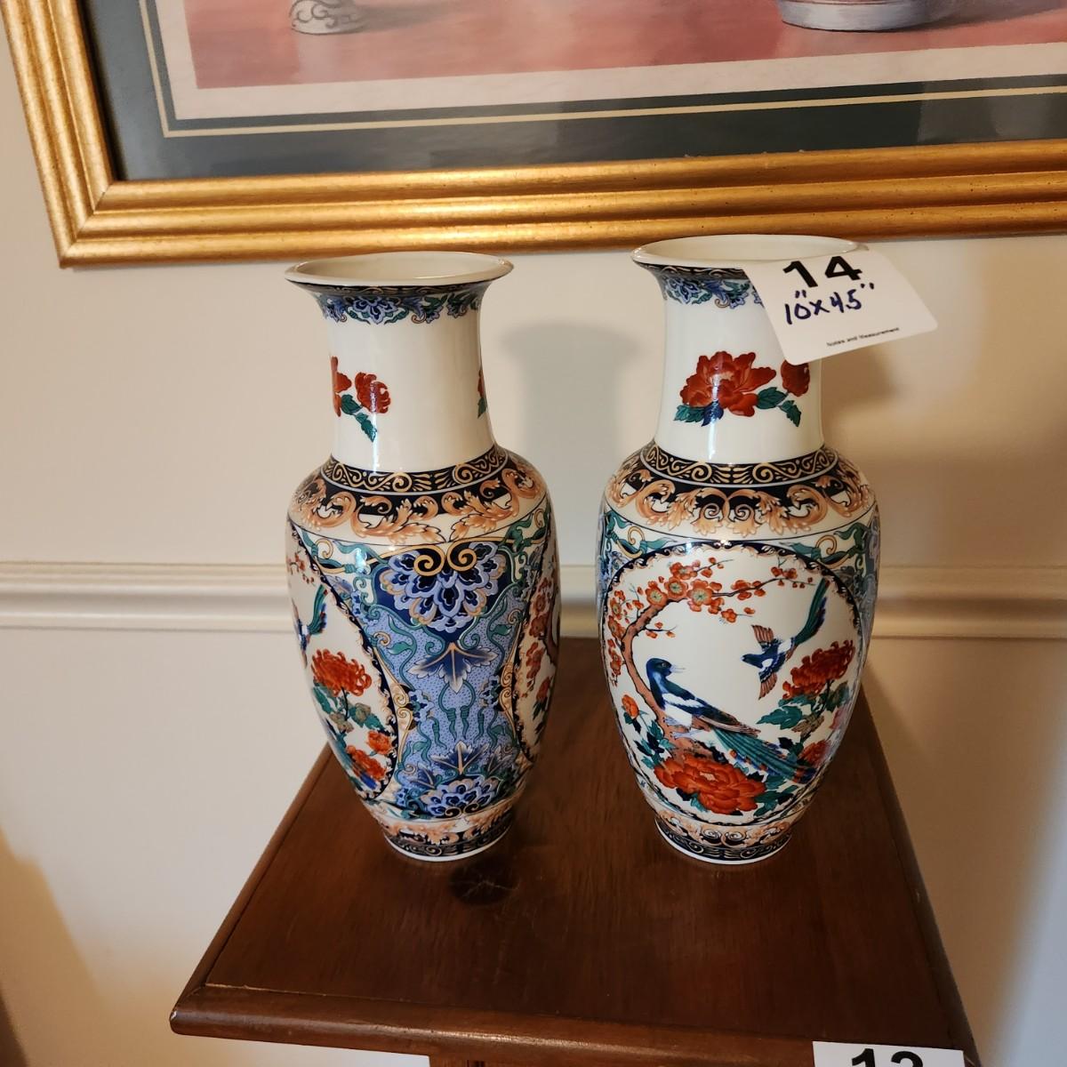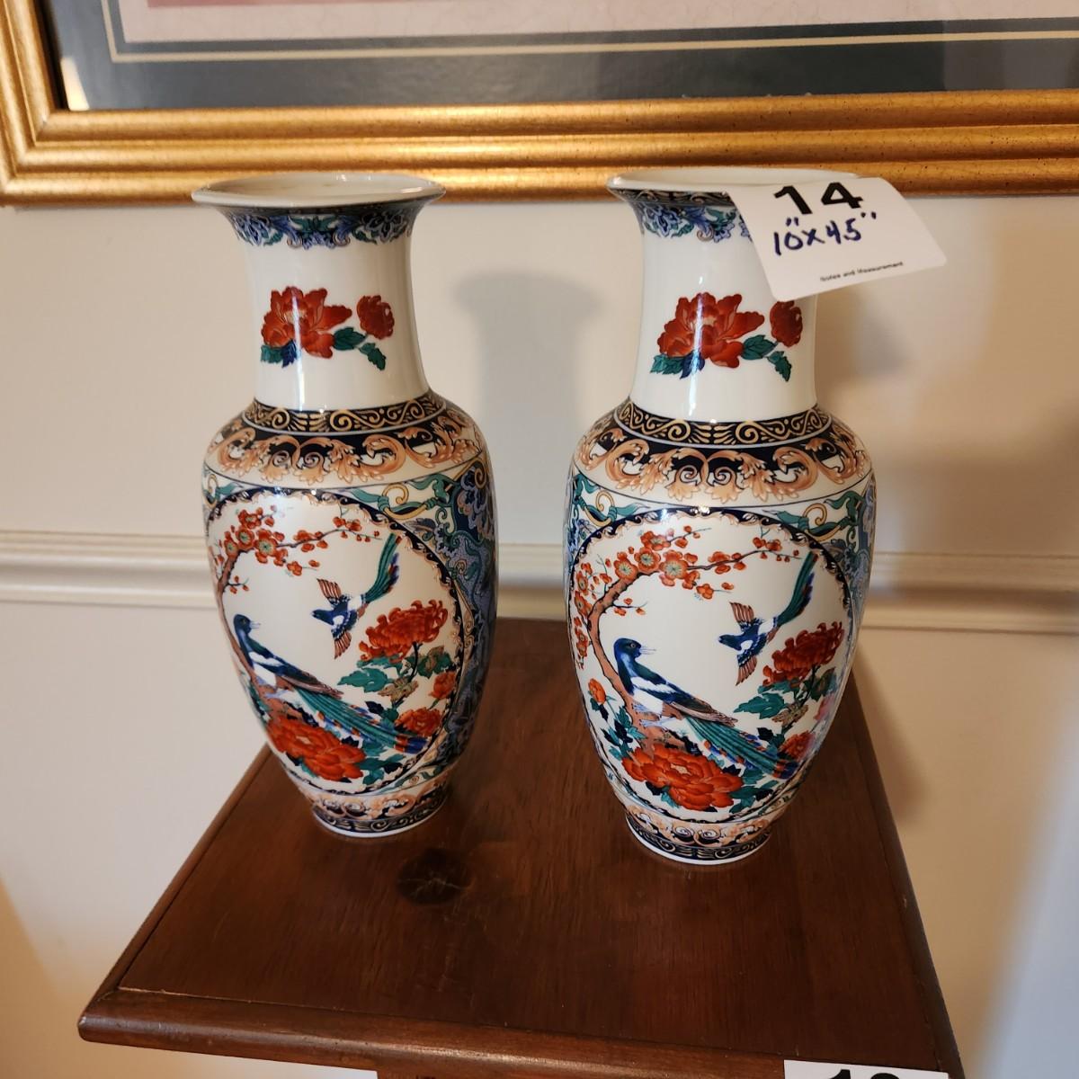 Pair Toyo Japan Vases 10" x4.5"