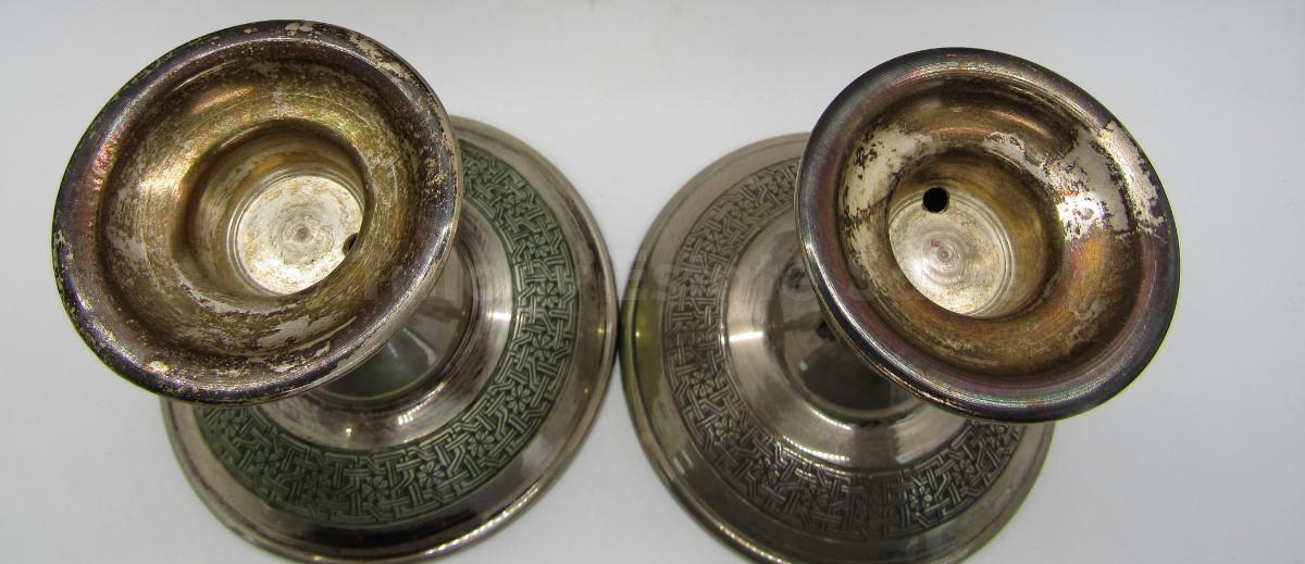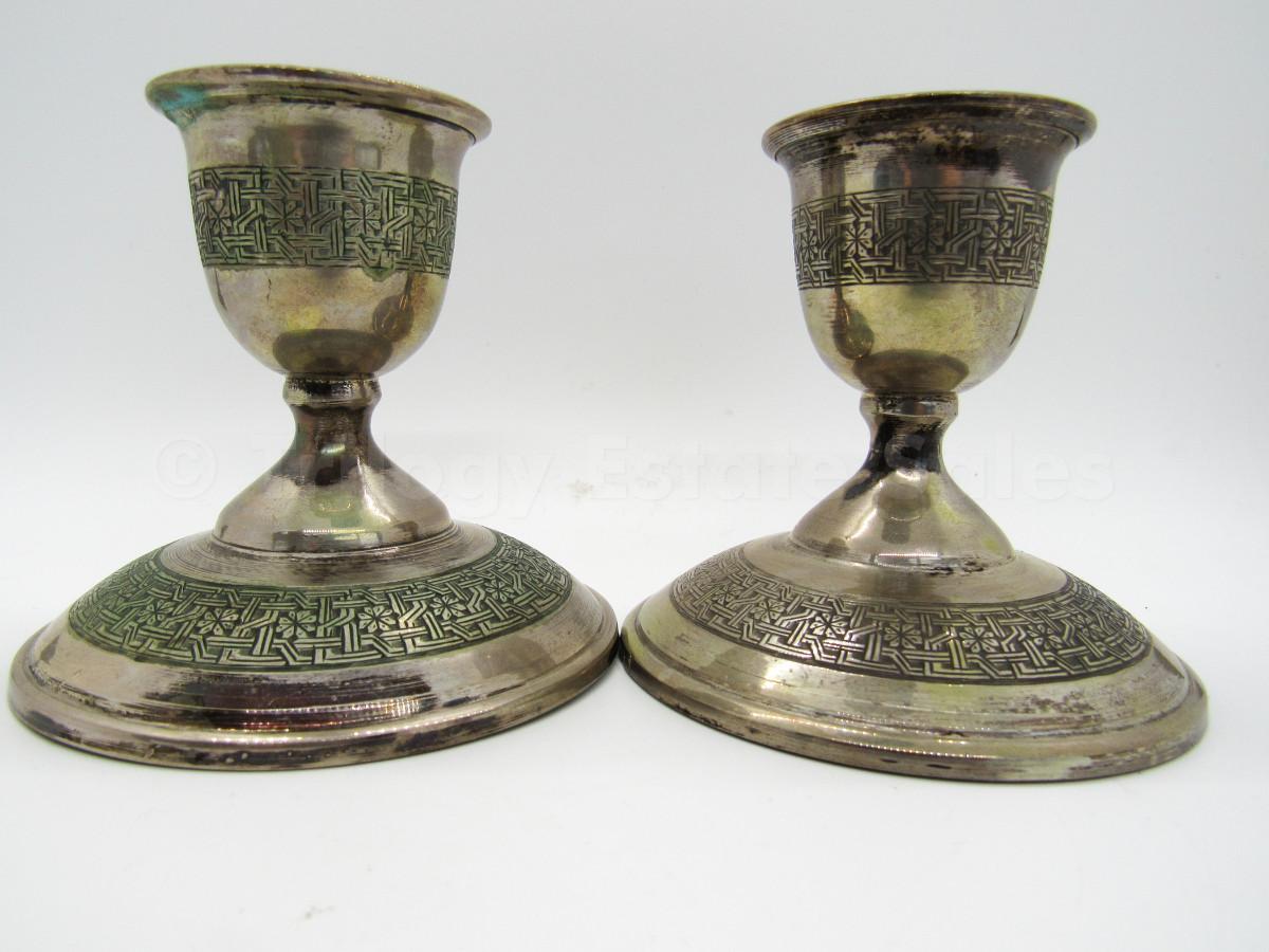 Pair Unweighted Persian 84 Silver Candlesticks, 9.04 ozt
