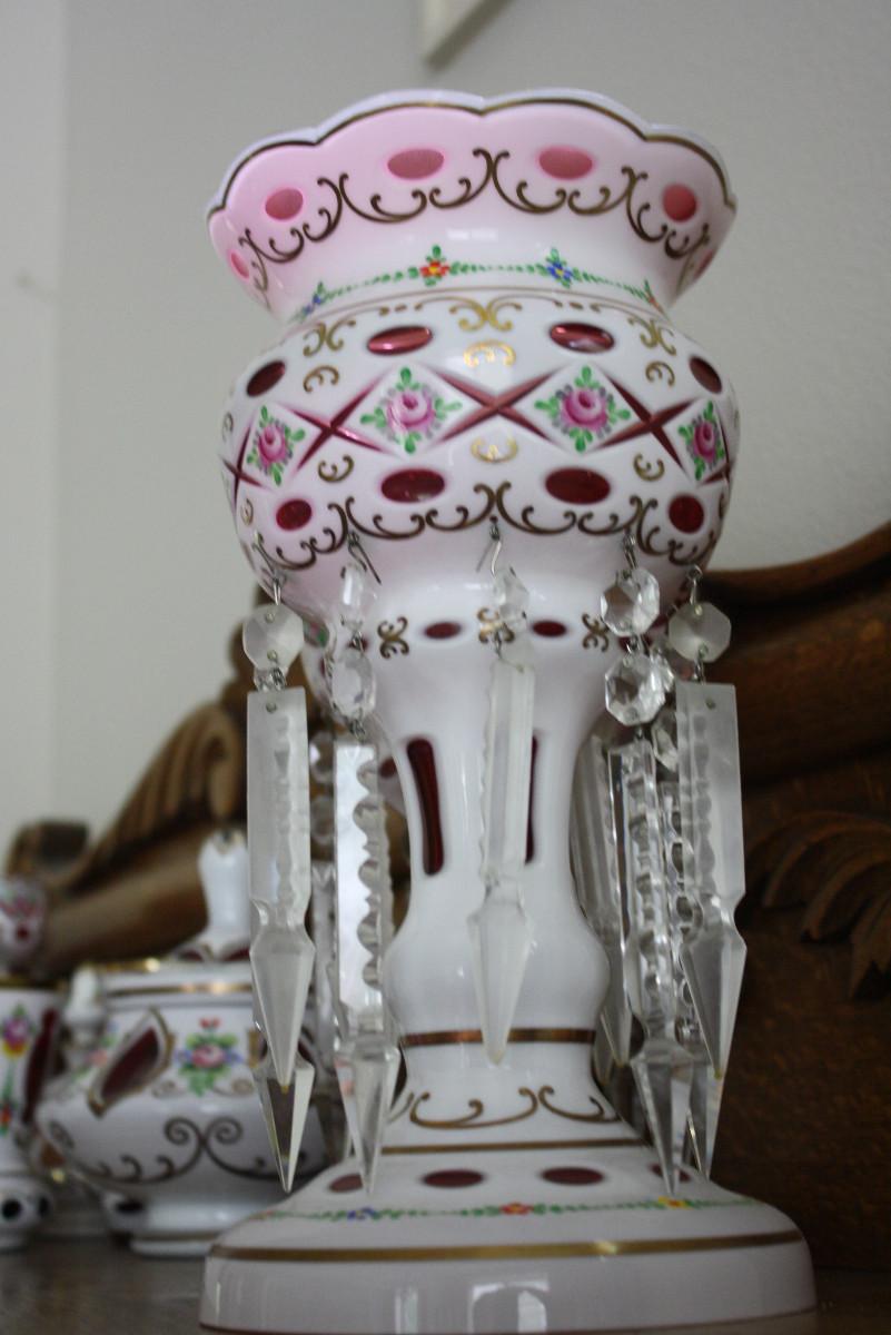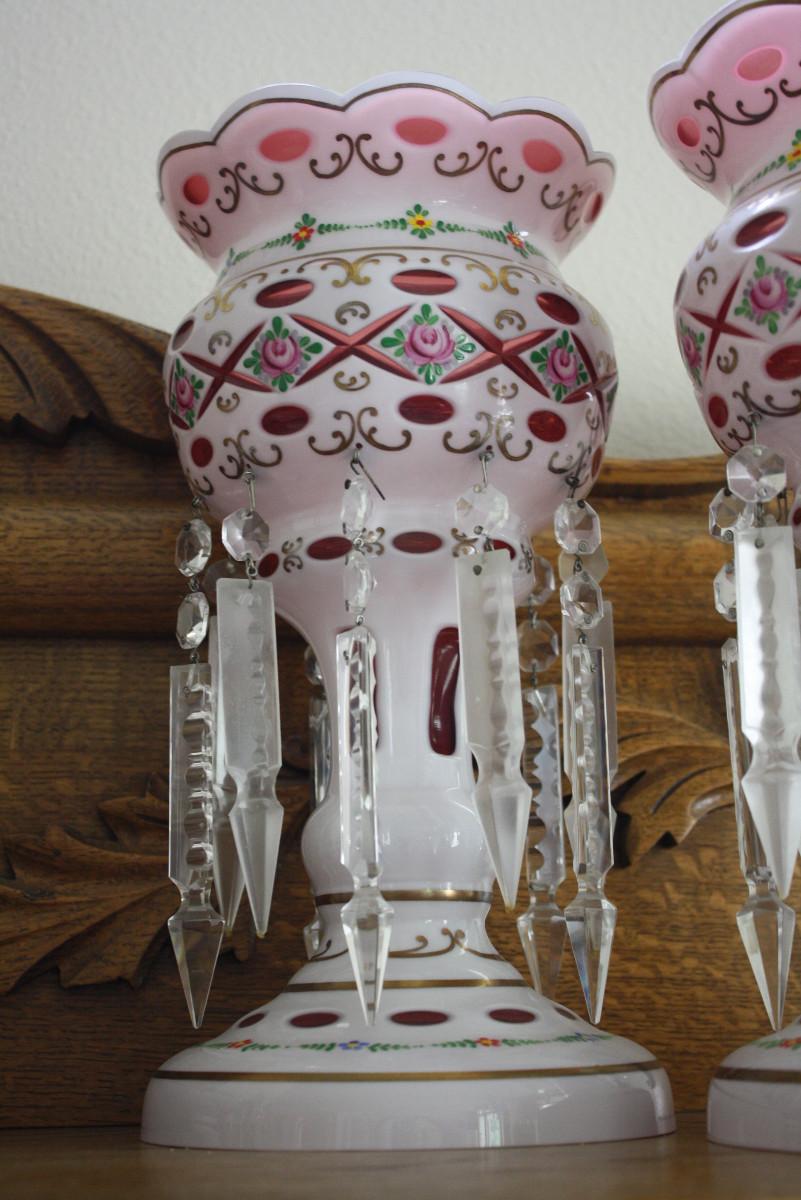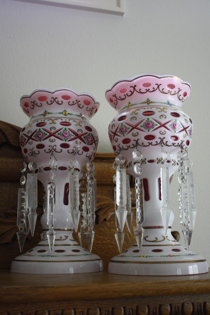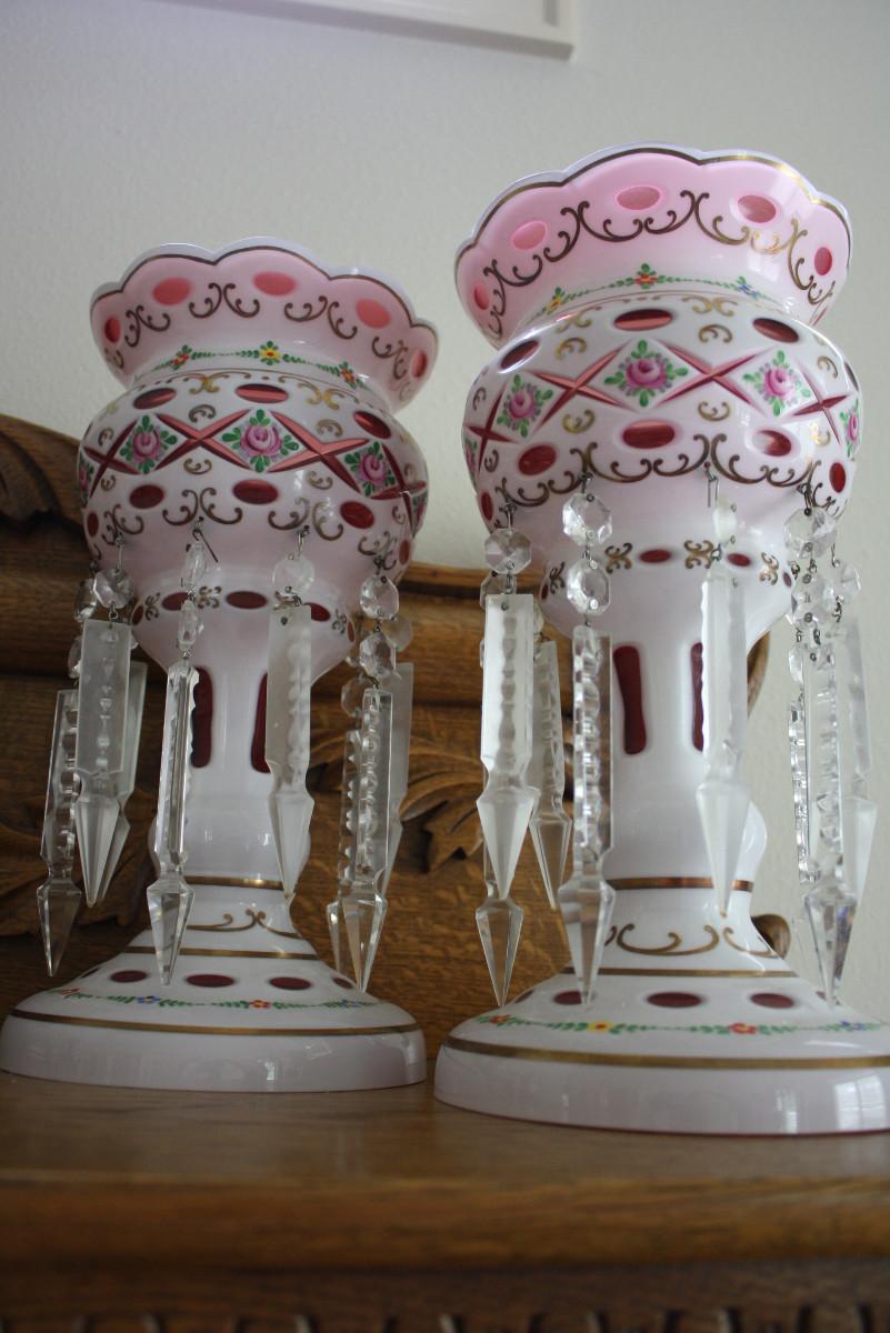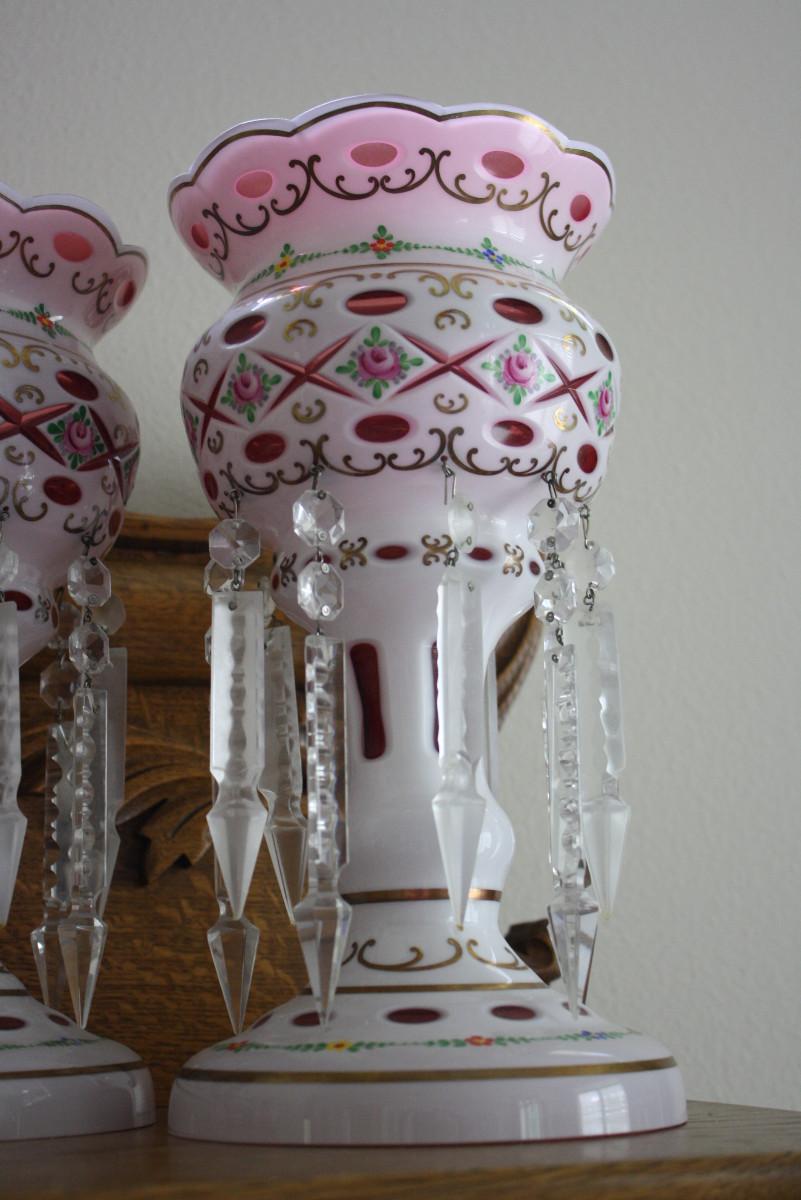 Pair Victorian Bohemian Overlay Mantle Lustres 12"  (KP/CN)