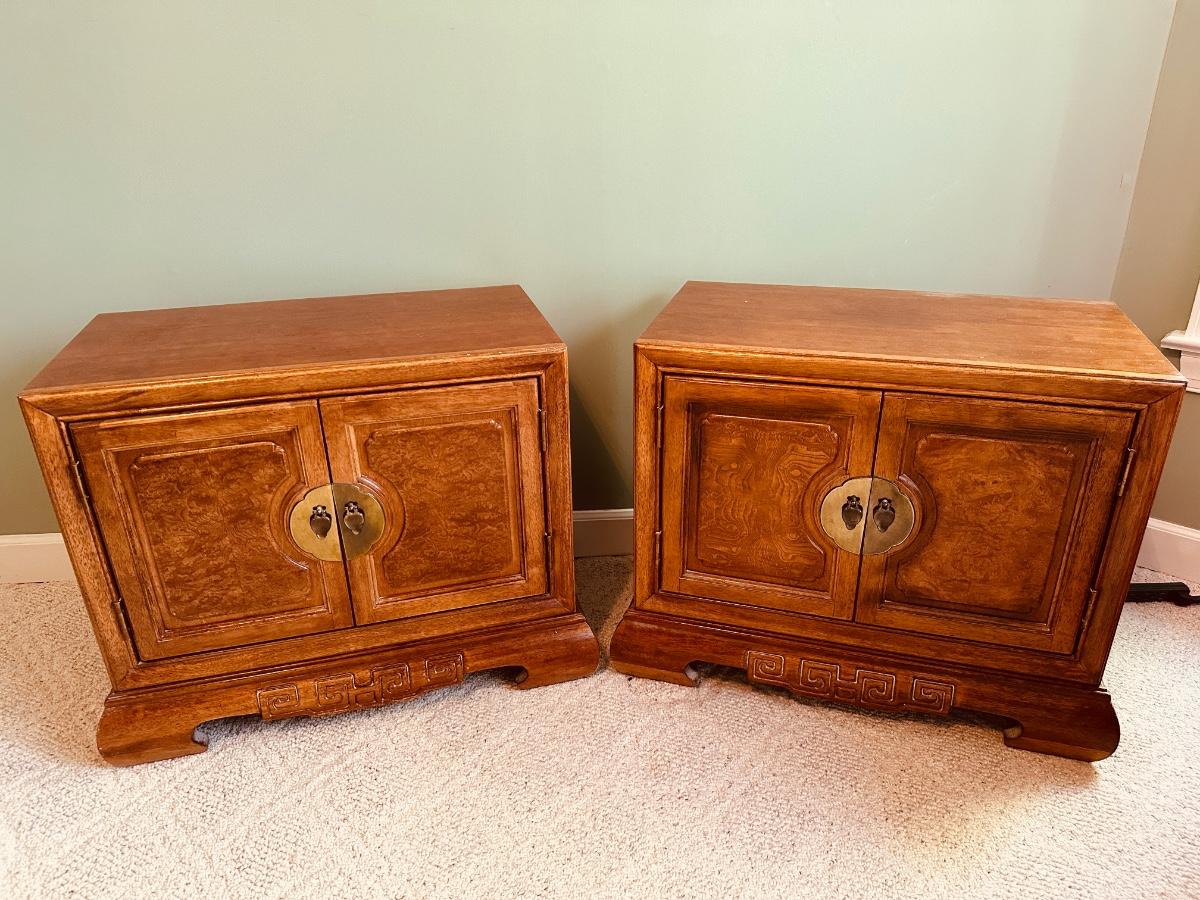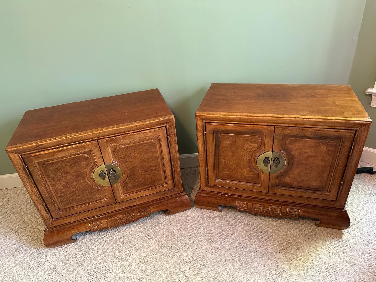 Pair Vintage Asian Chinoiserie Style Nightstands