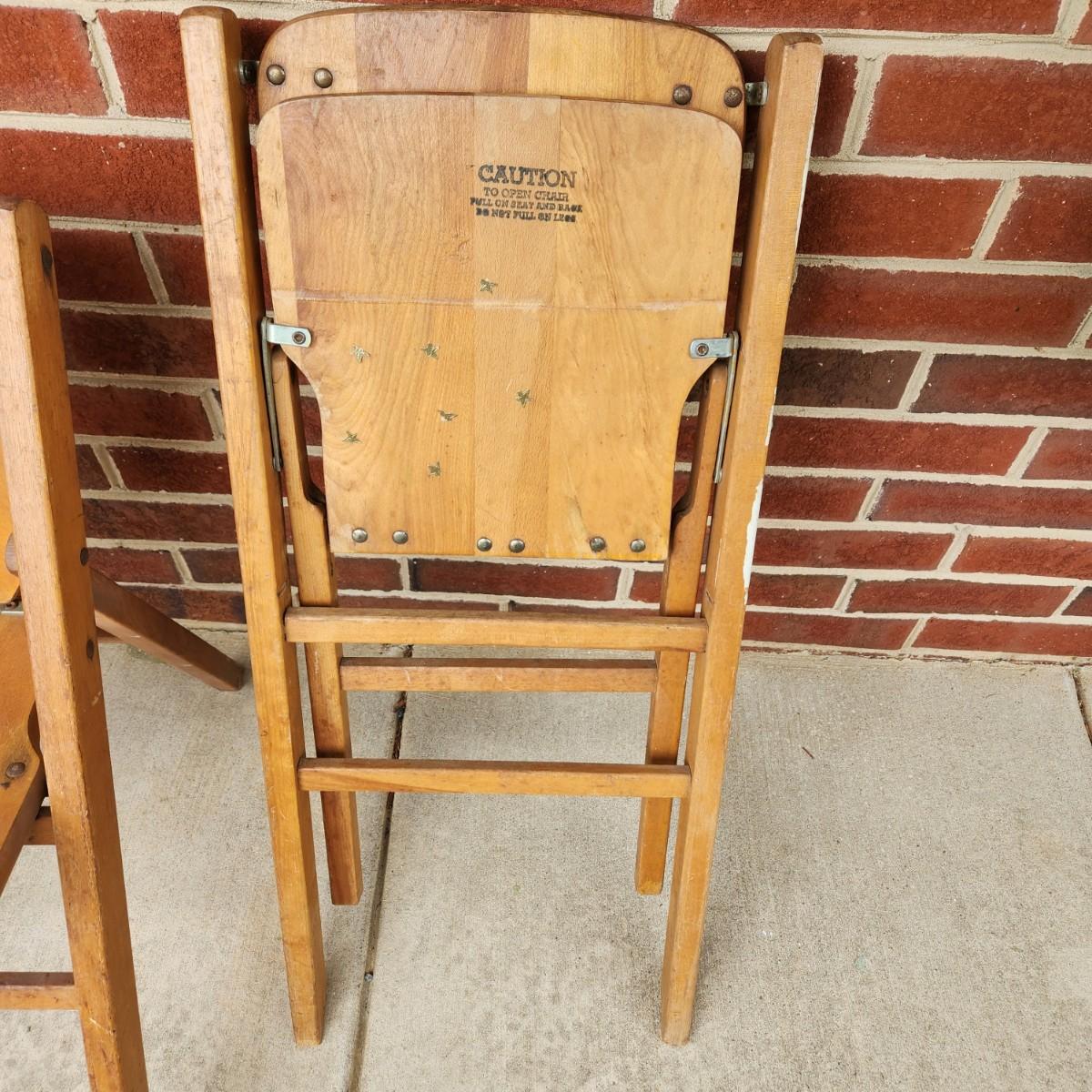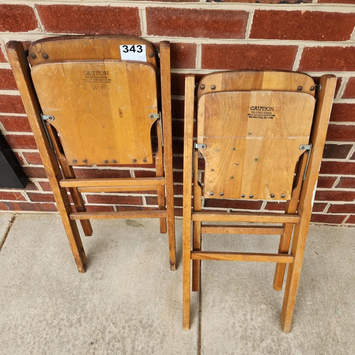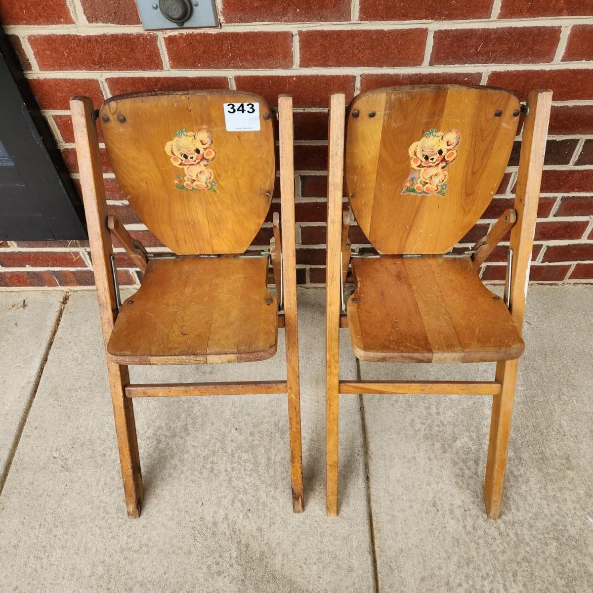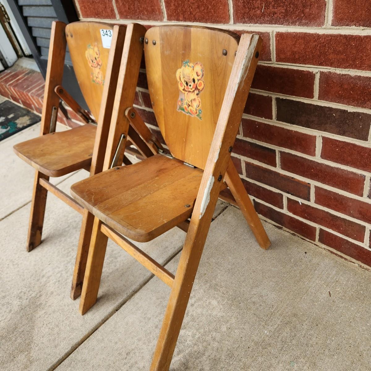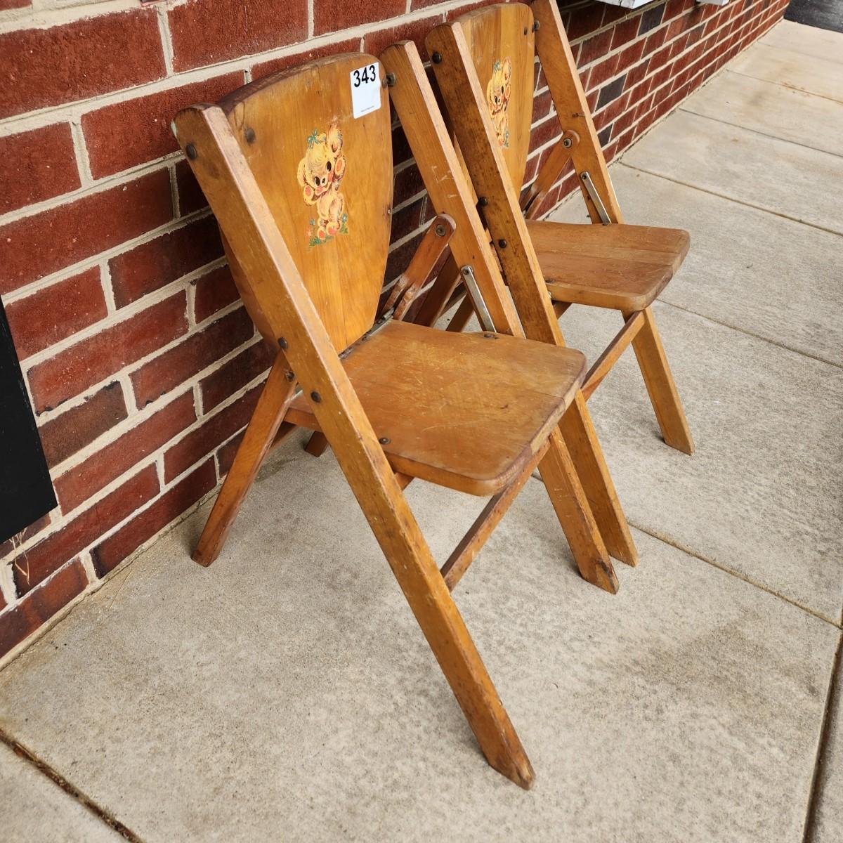 Pair Vintage Children Wood Folding Chairs