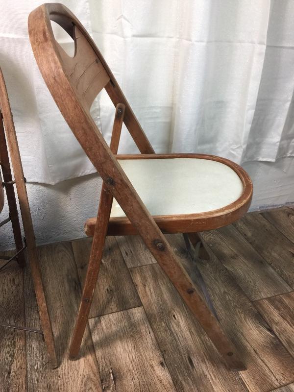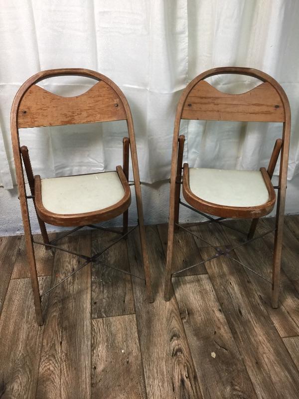 Lot #167 Pair Vintage Folding Solid Wood Chairs High Point N.C.