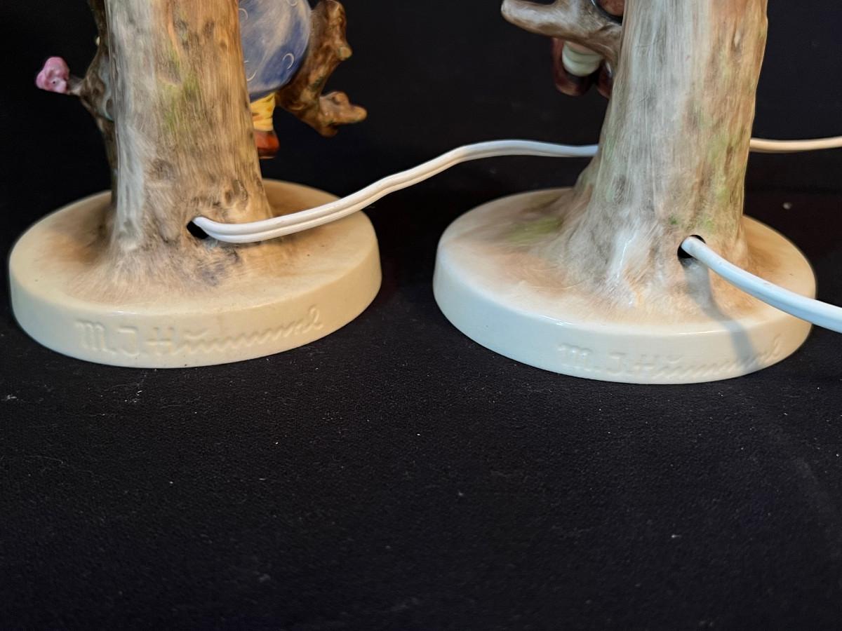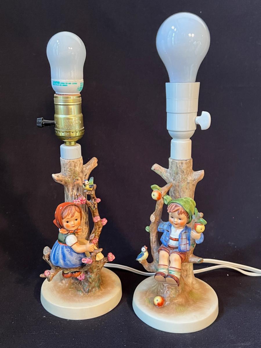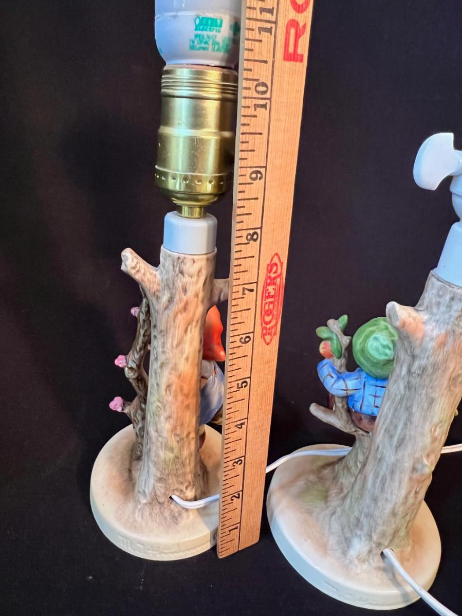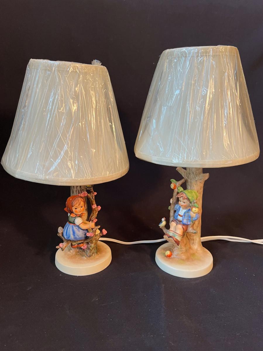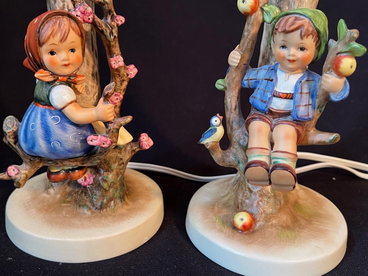 Pair Vintage Hummel lamps Apple Tree Boy n Girl TMK-5 w shades
