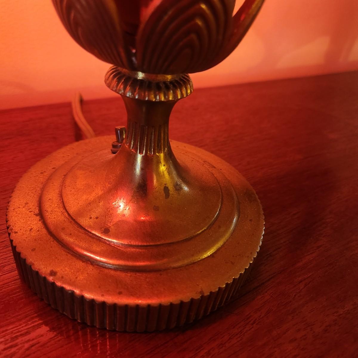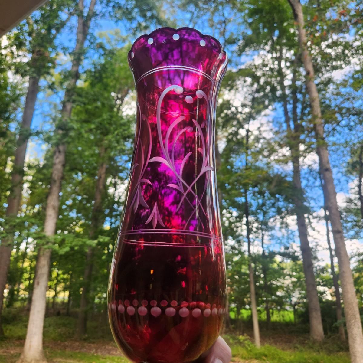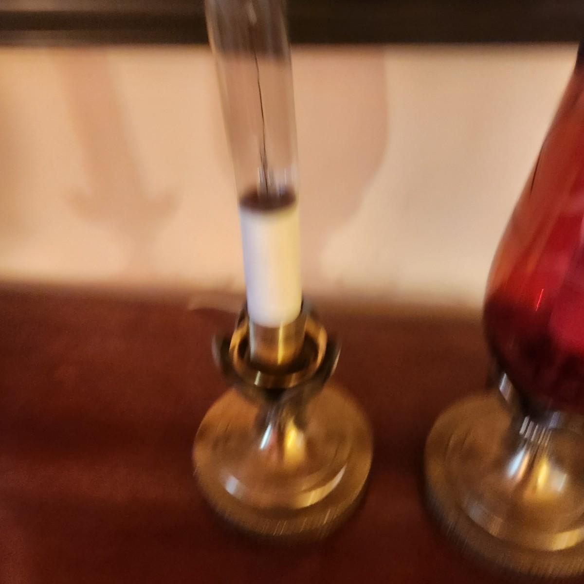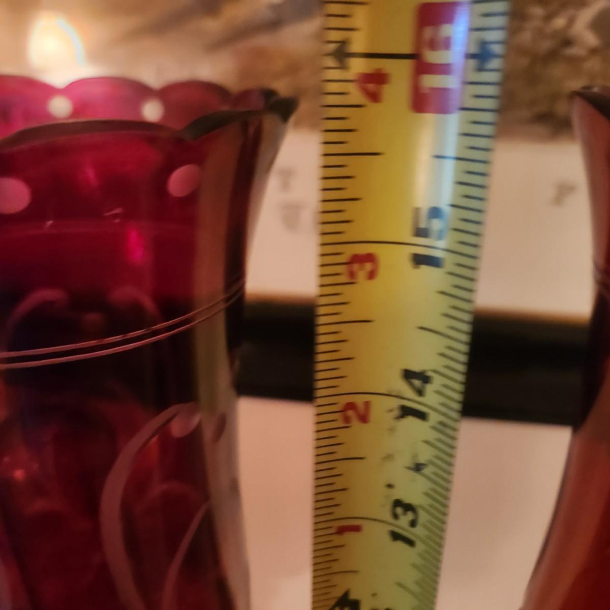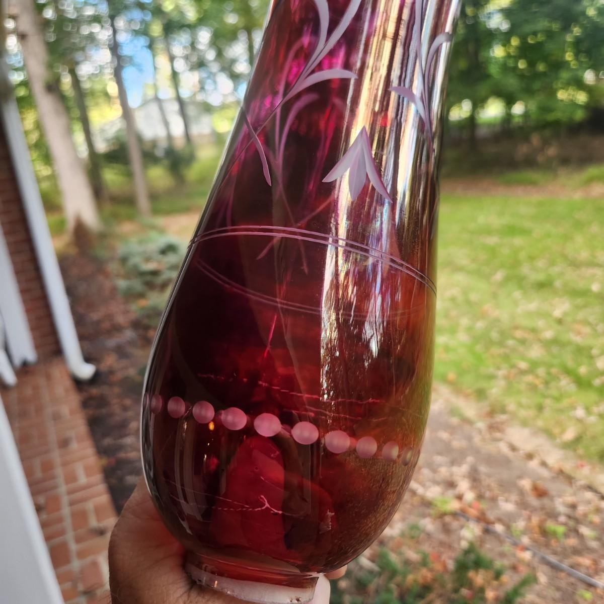 Pair Vintage Hurricane Cranberry Etched Table lamps