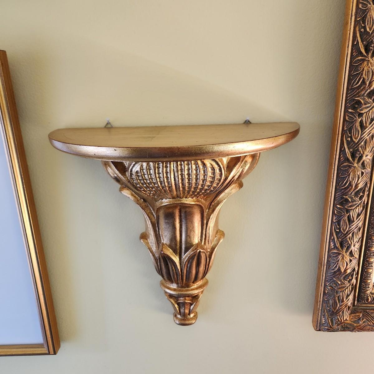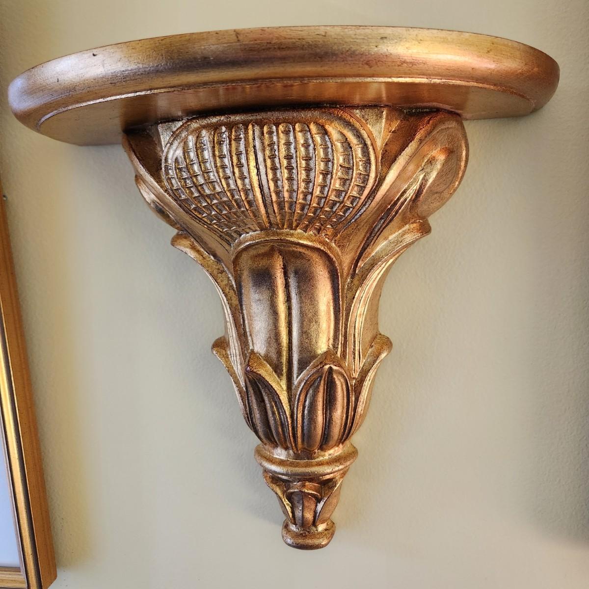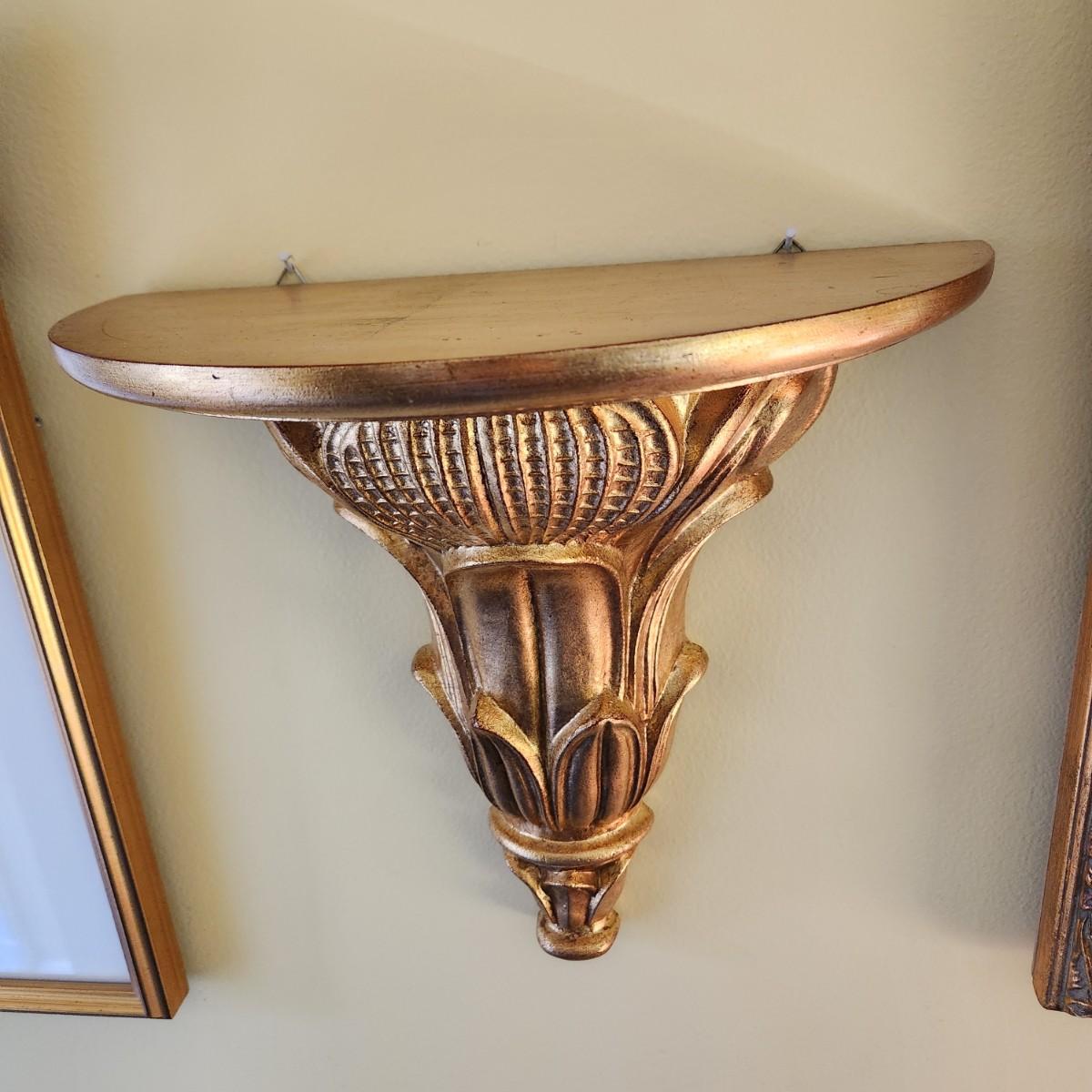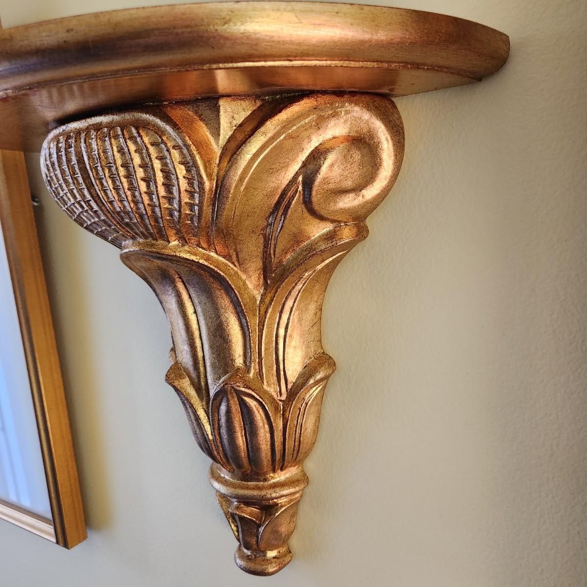 Pair Vintage Italian Gilded Wood Half Moon Bracket Shelf Made in Italy