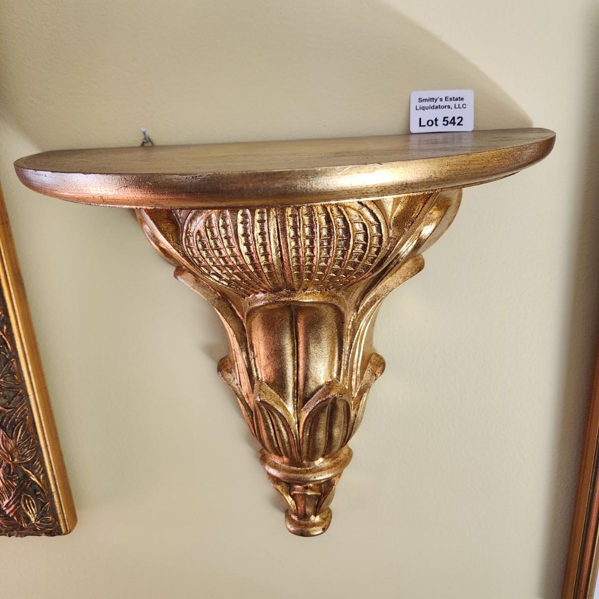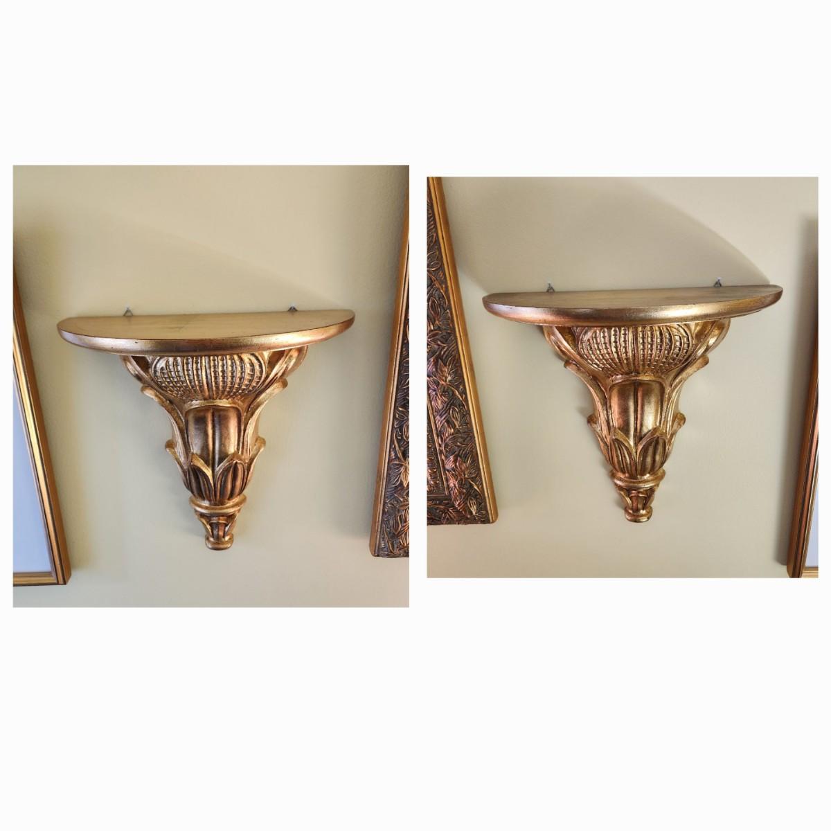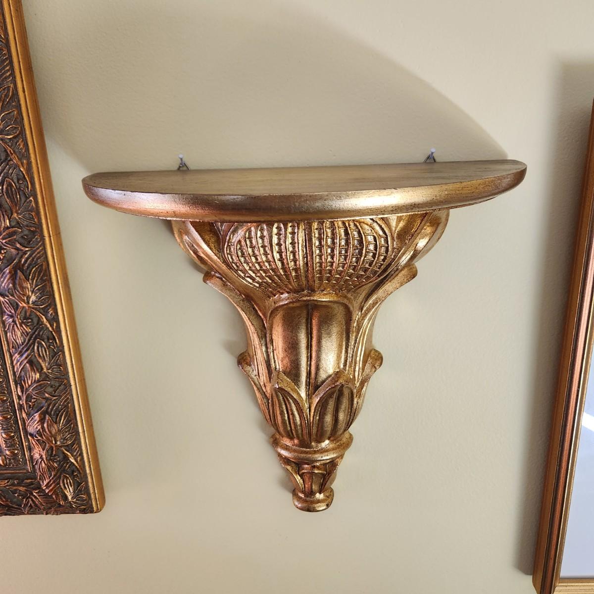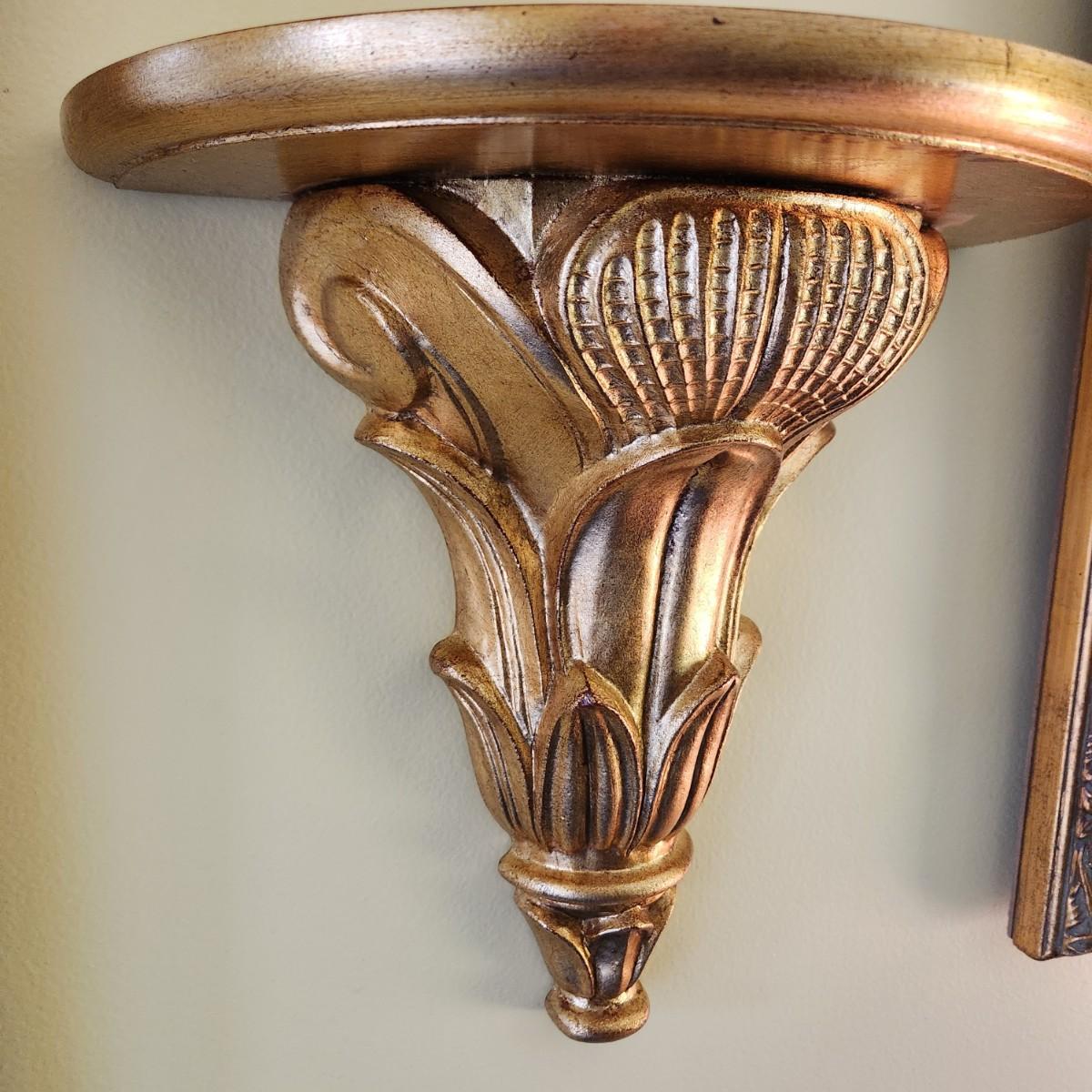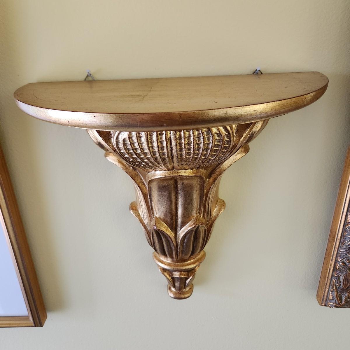 Pair Vintage Italian Gilded Wood Half Moon Bracket Shelf Made in Italy