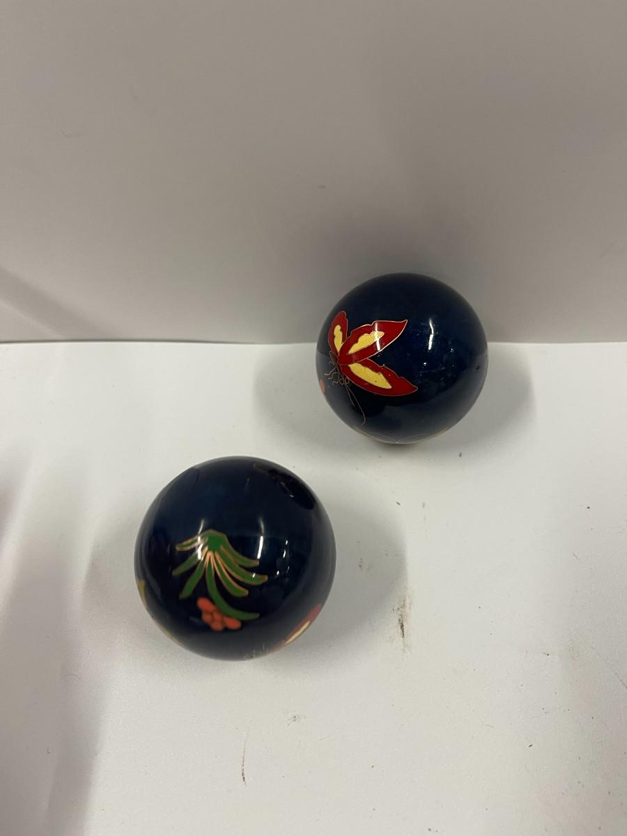 Pair Vintage Oriental Enamel Chiming / Medicine Balls