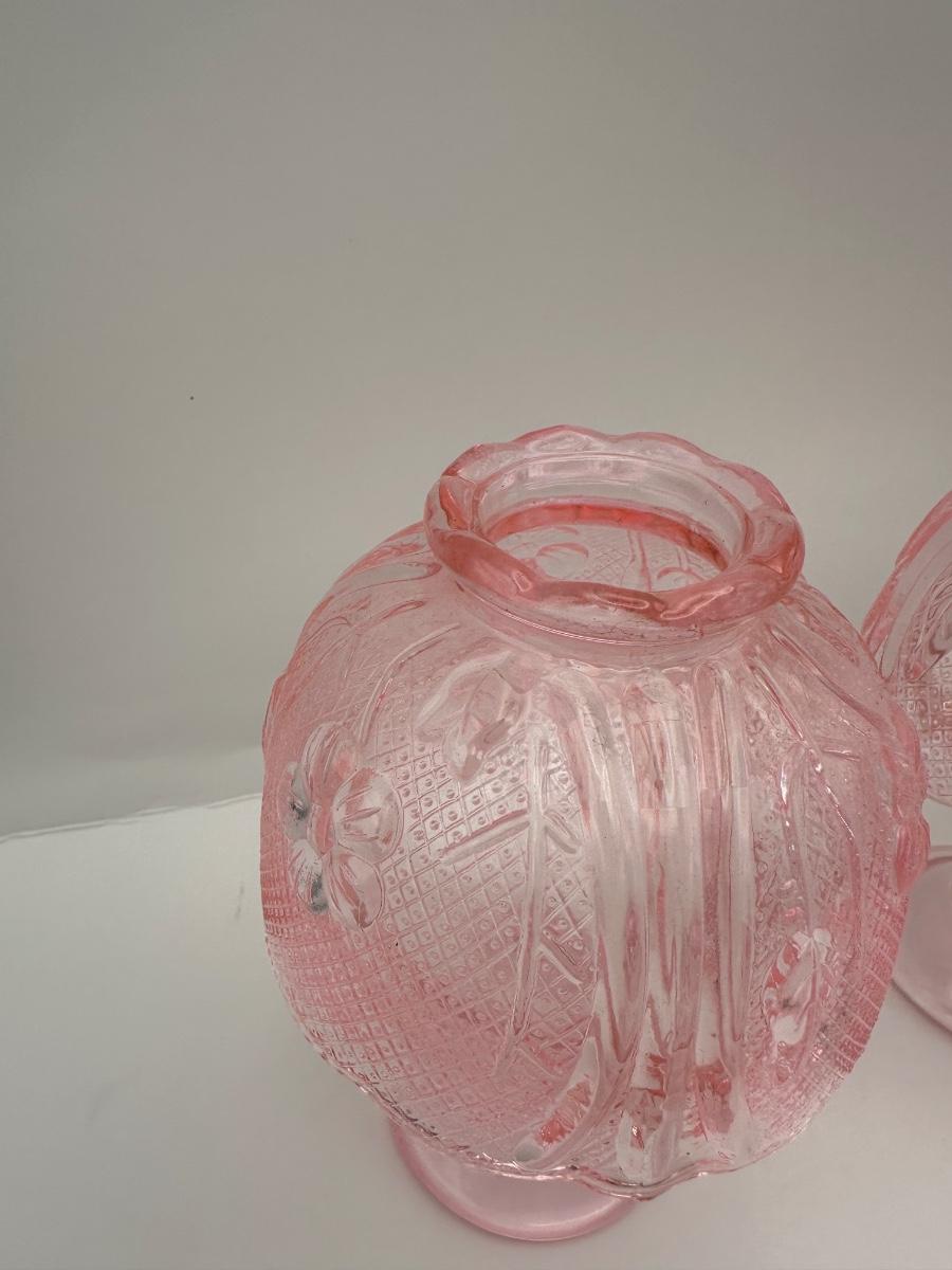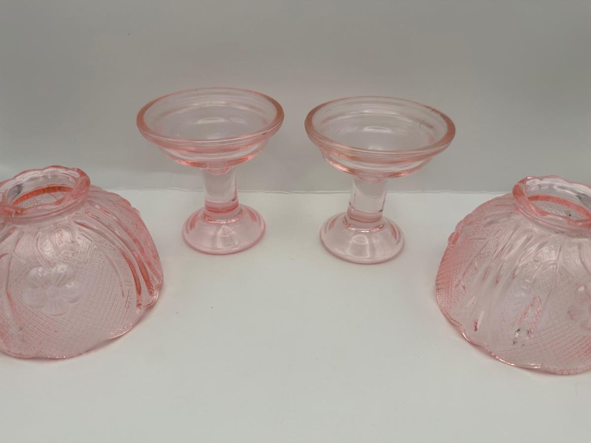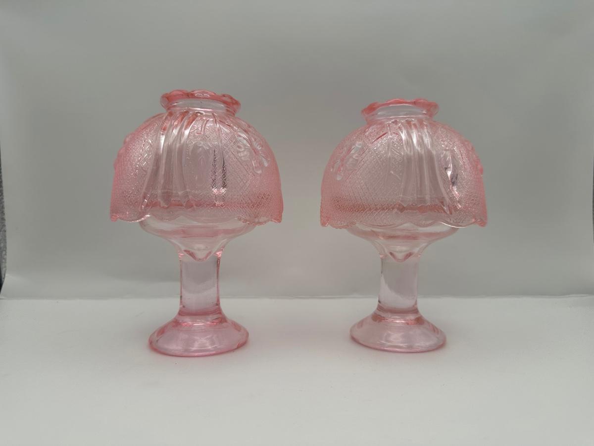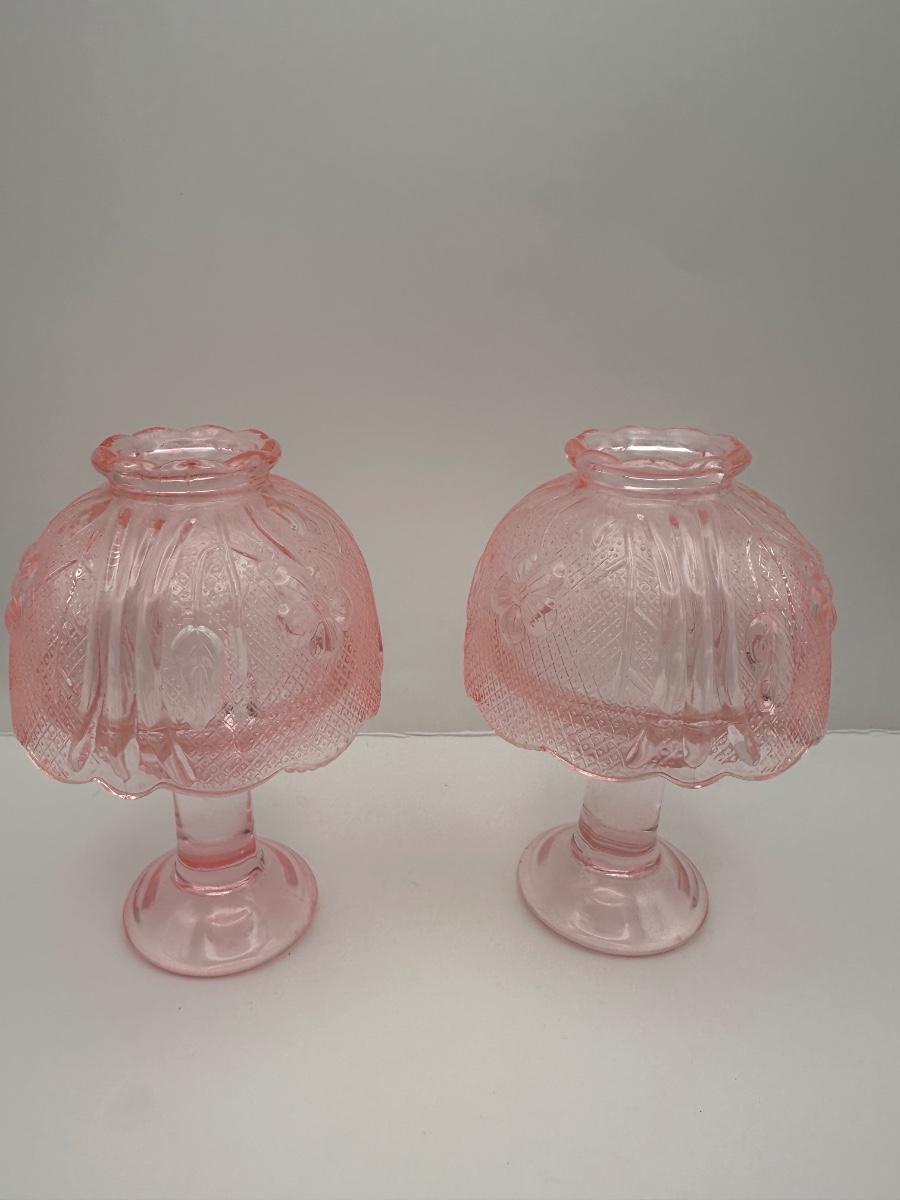 Pair Vintage Pink Pressed Glass Fairy Lamps / Candle Lamps