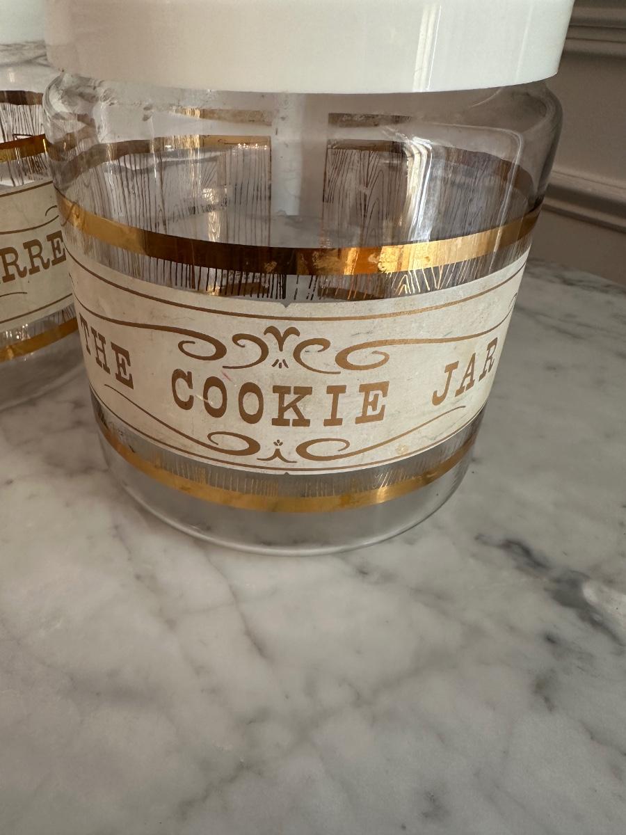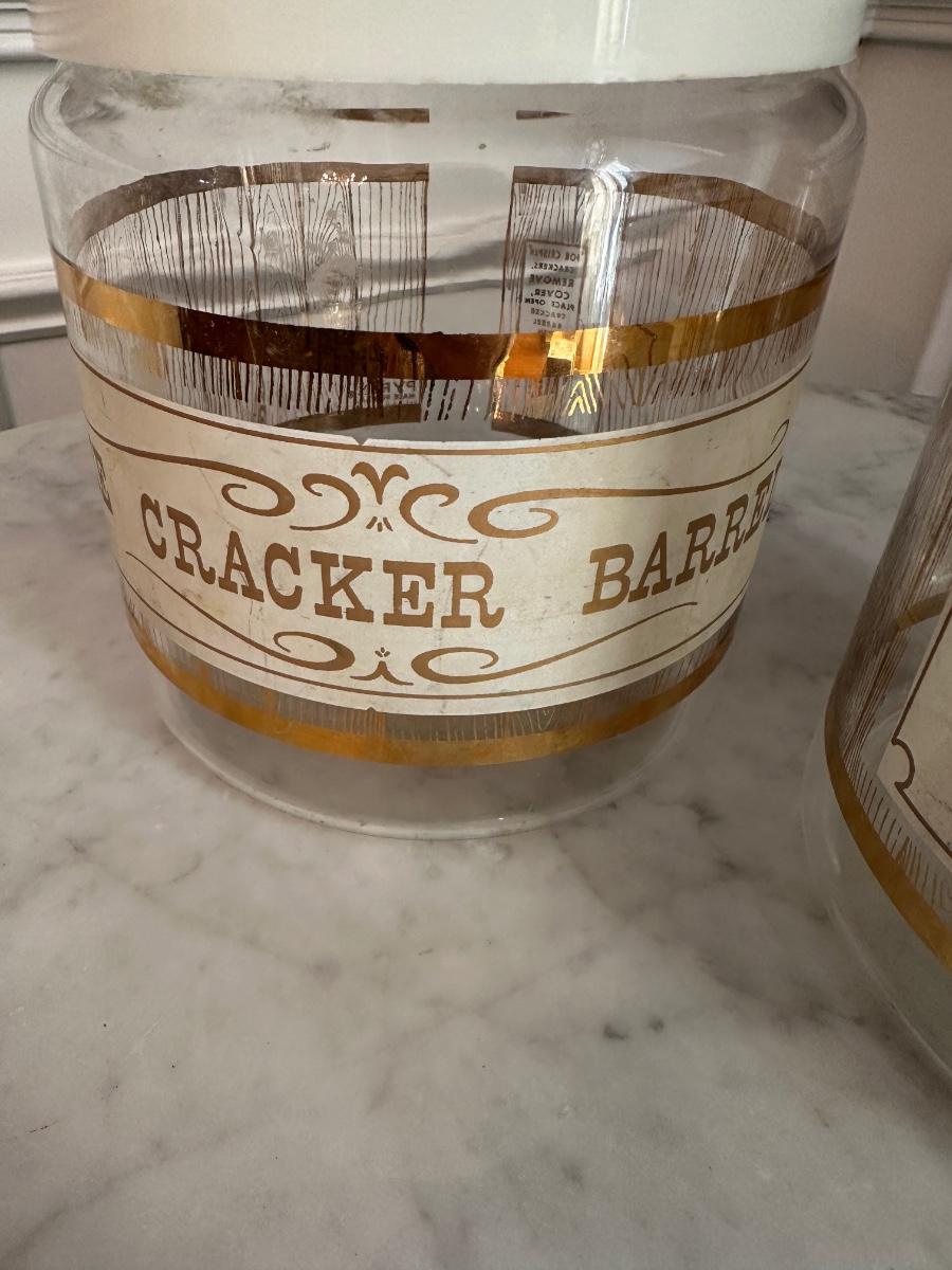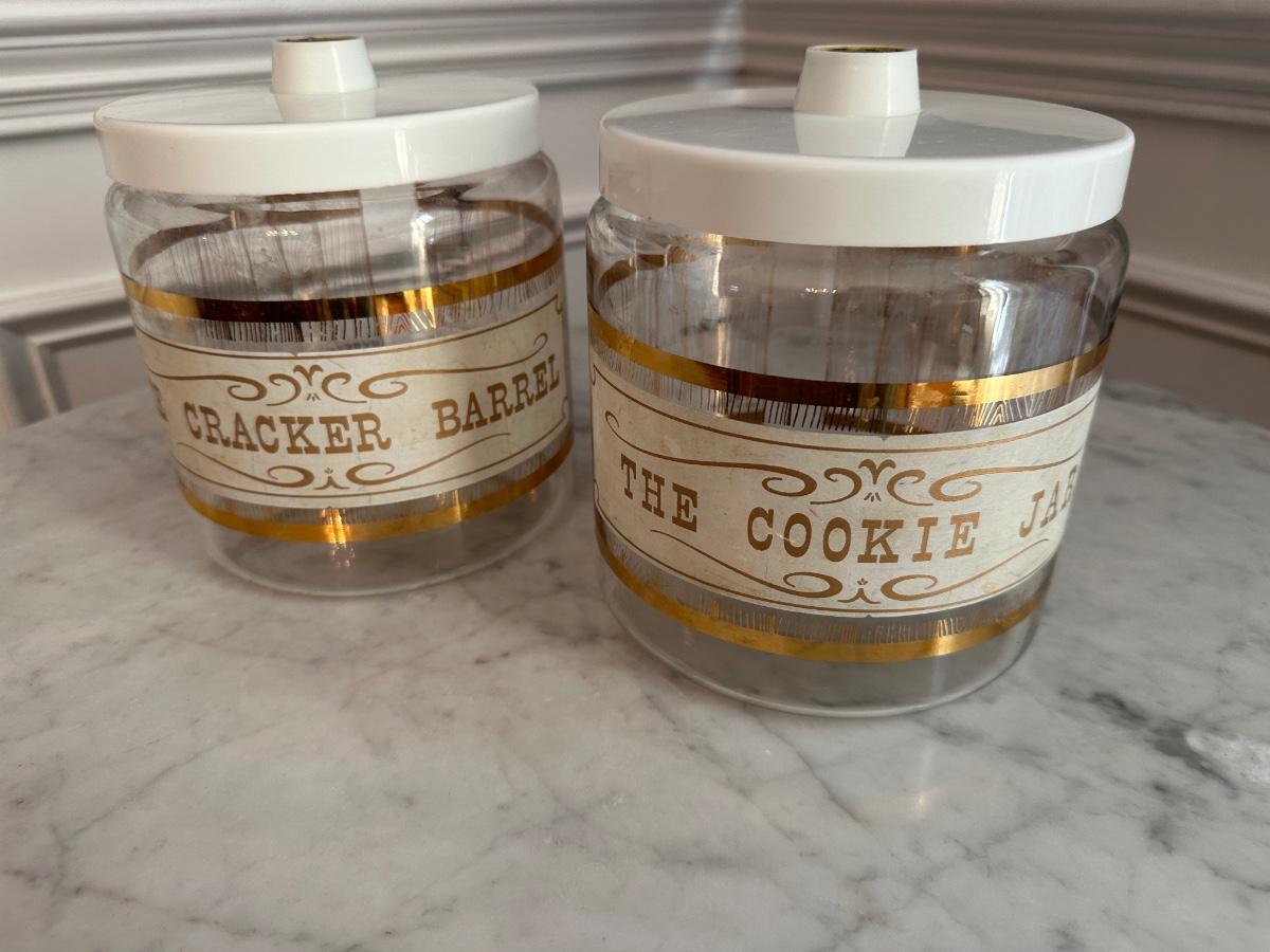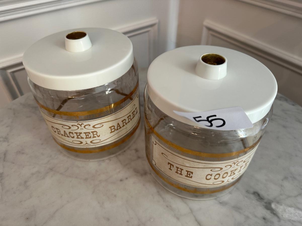 Pair vintage Pyrex The cookie jar and Cracker barrel glass canisters