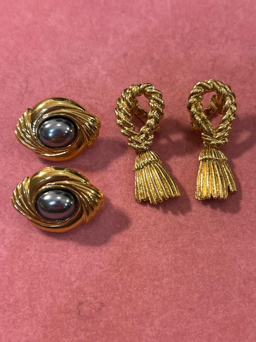 Pair Vintage Unmarked Avon Gold Tone Clip On Earrings