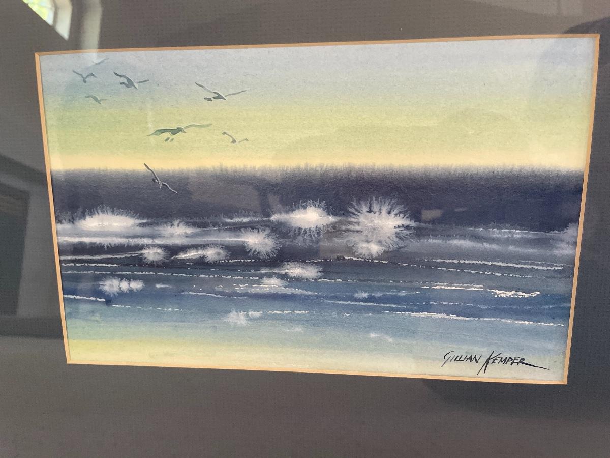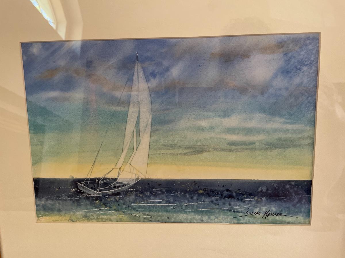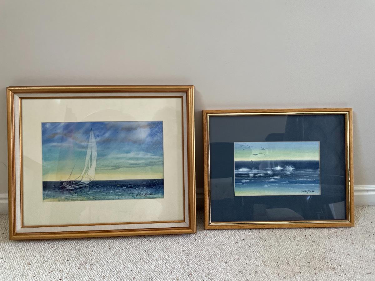 #56 Pair Watercolor Framed Art Seaside Sailboat GILLIAN KEMPER