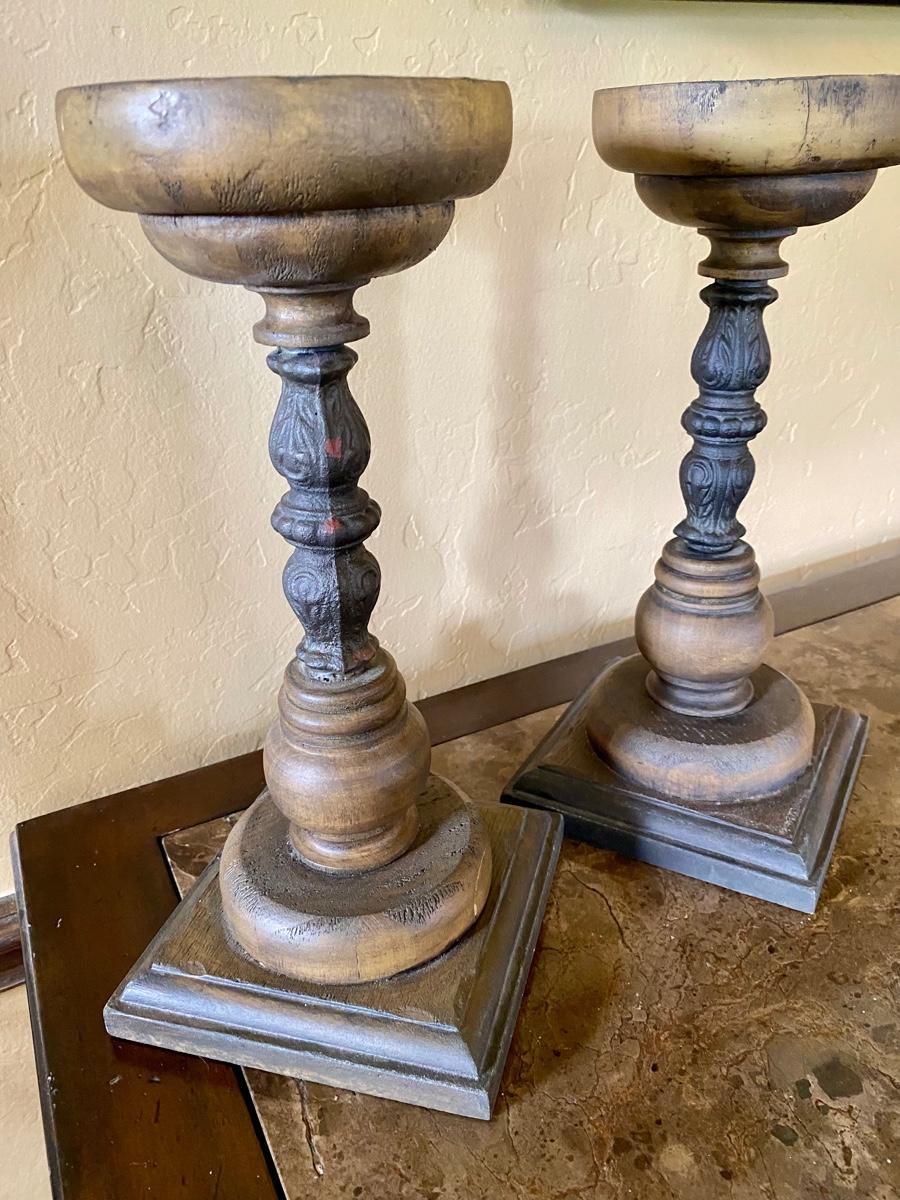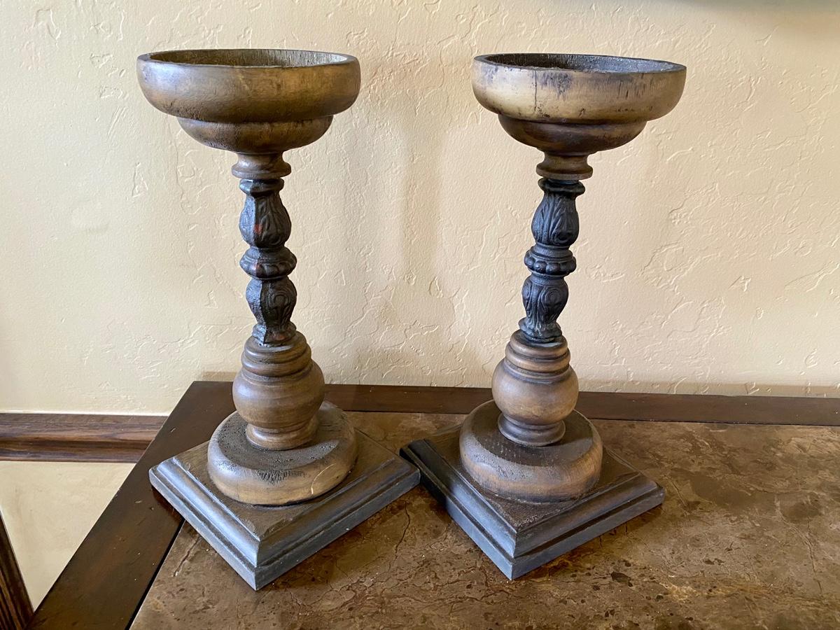 Pair Wood Candlesticks