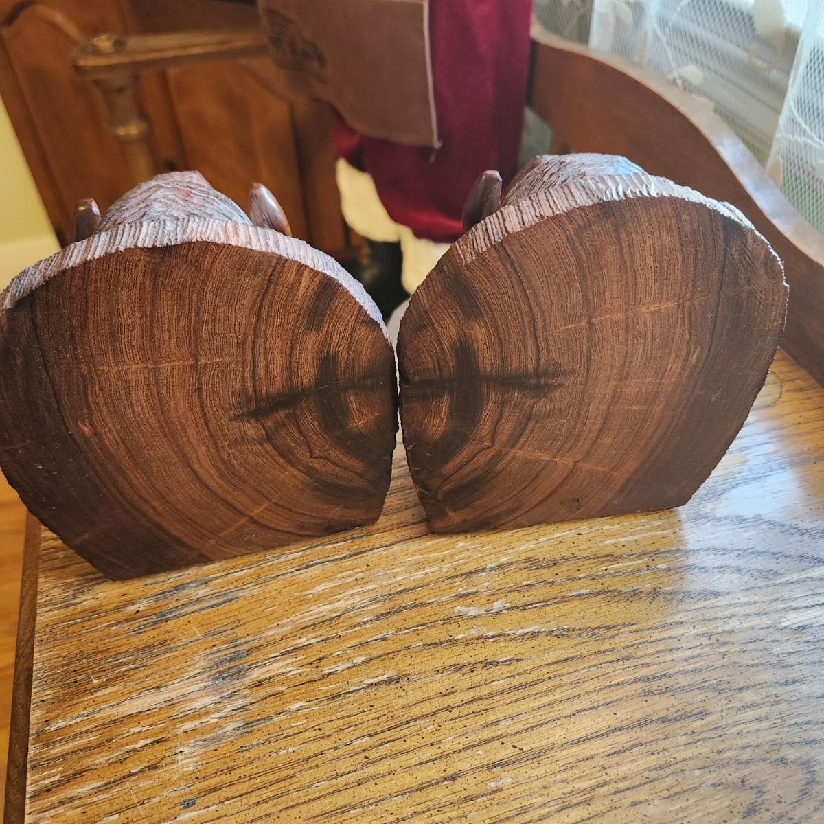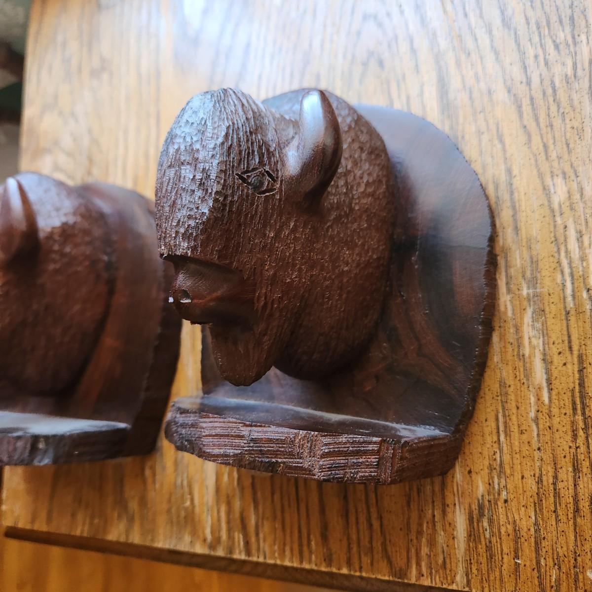 Pair Wood Carved Bison Bookends