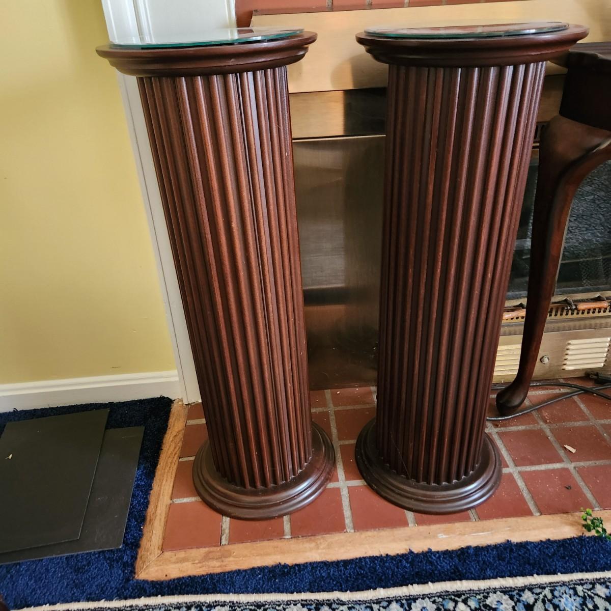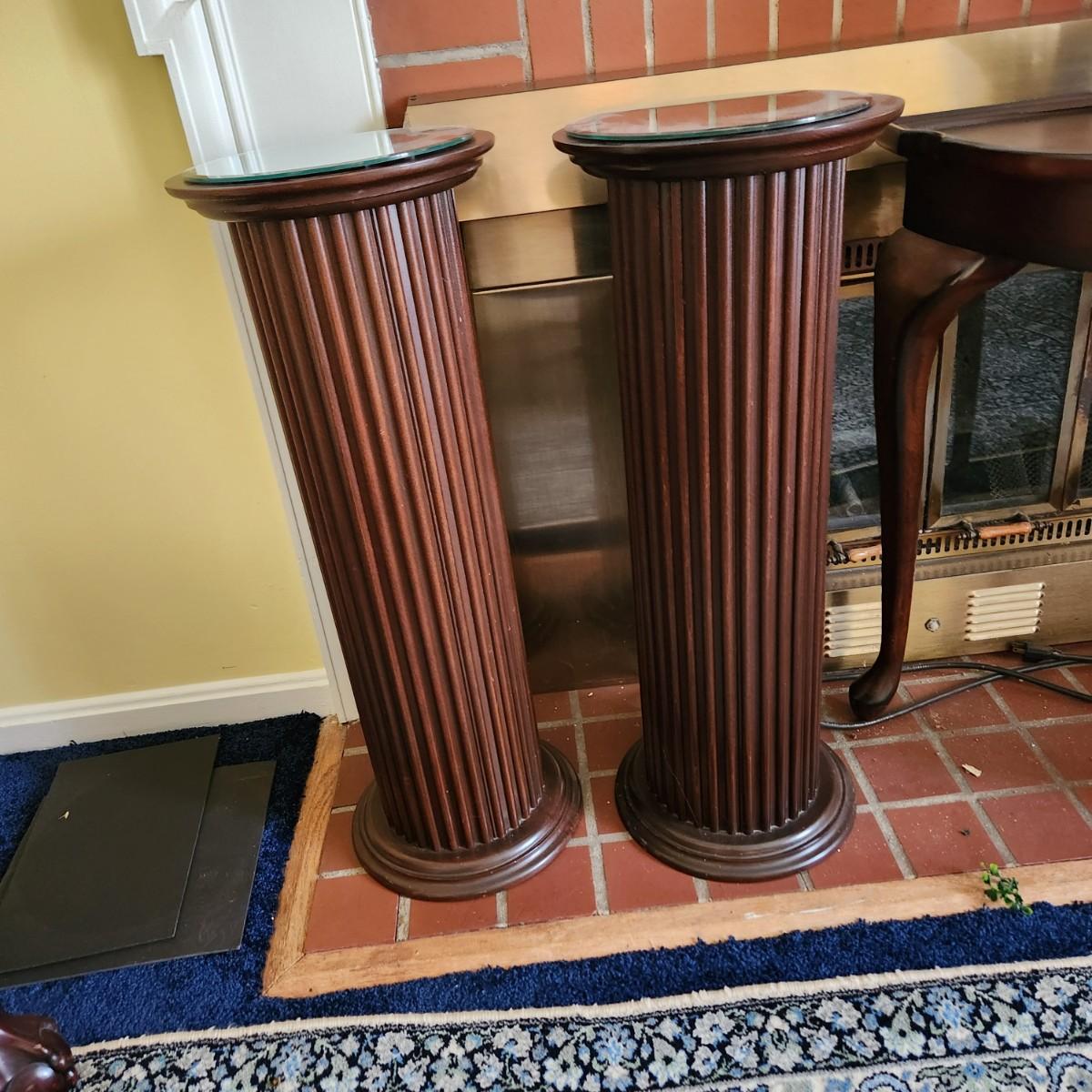 Pair Wood Pedestal w Fluted Column 11.25" Diameter 30" Tall