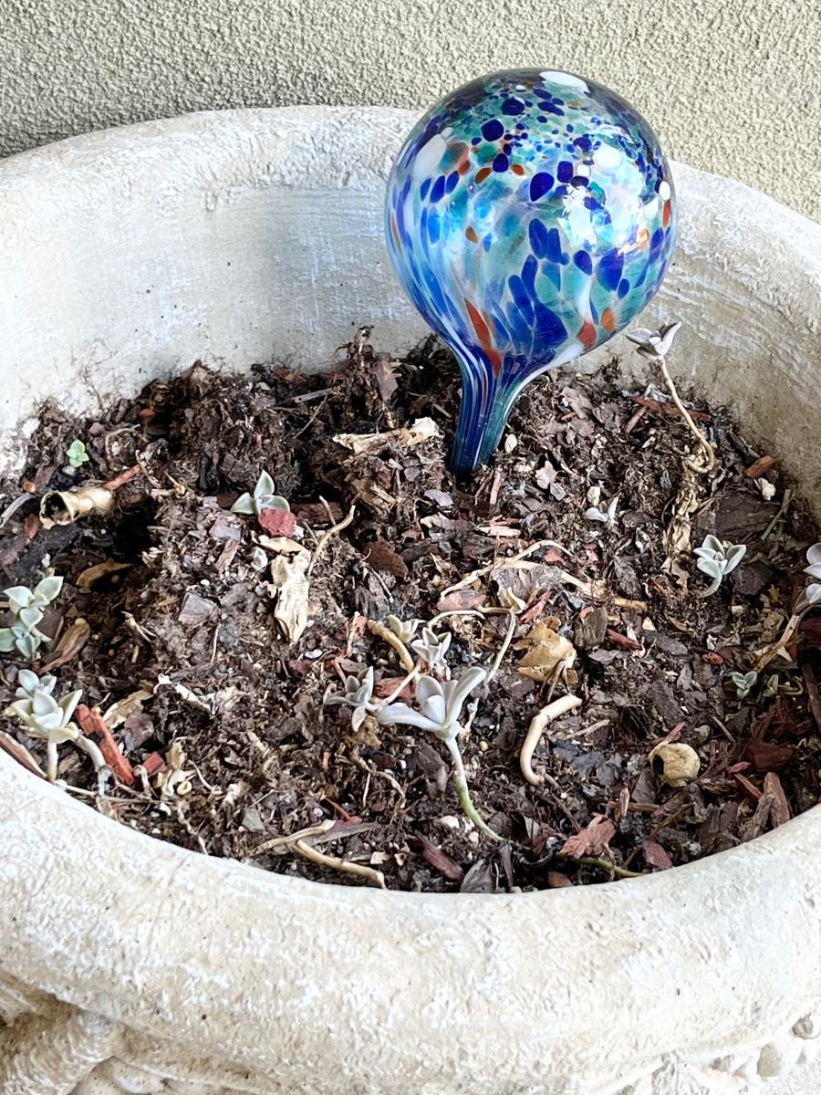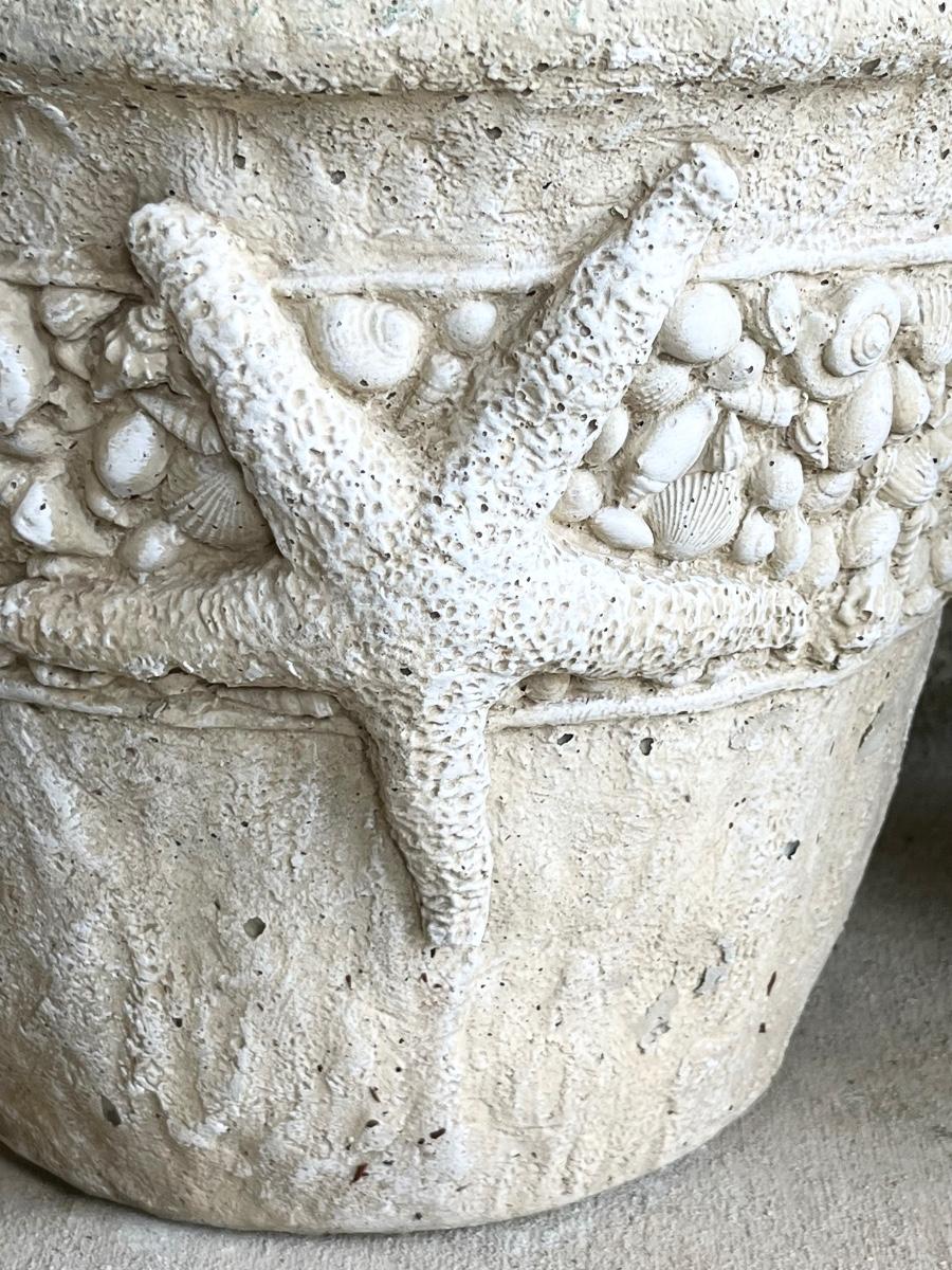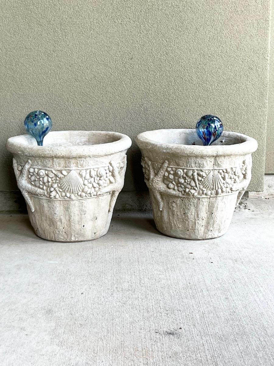 Pair (2) ~ Cement Seashore Planters With Glass Watering Balls