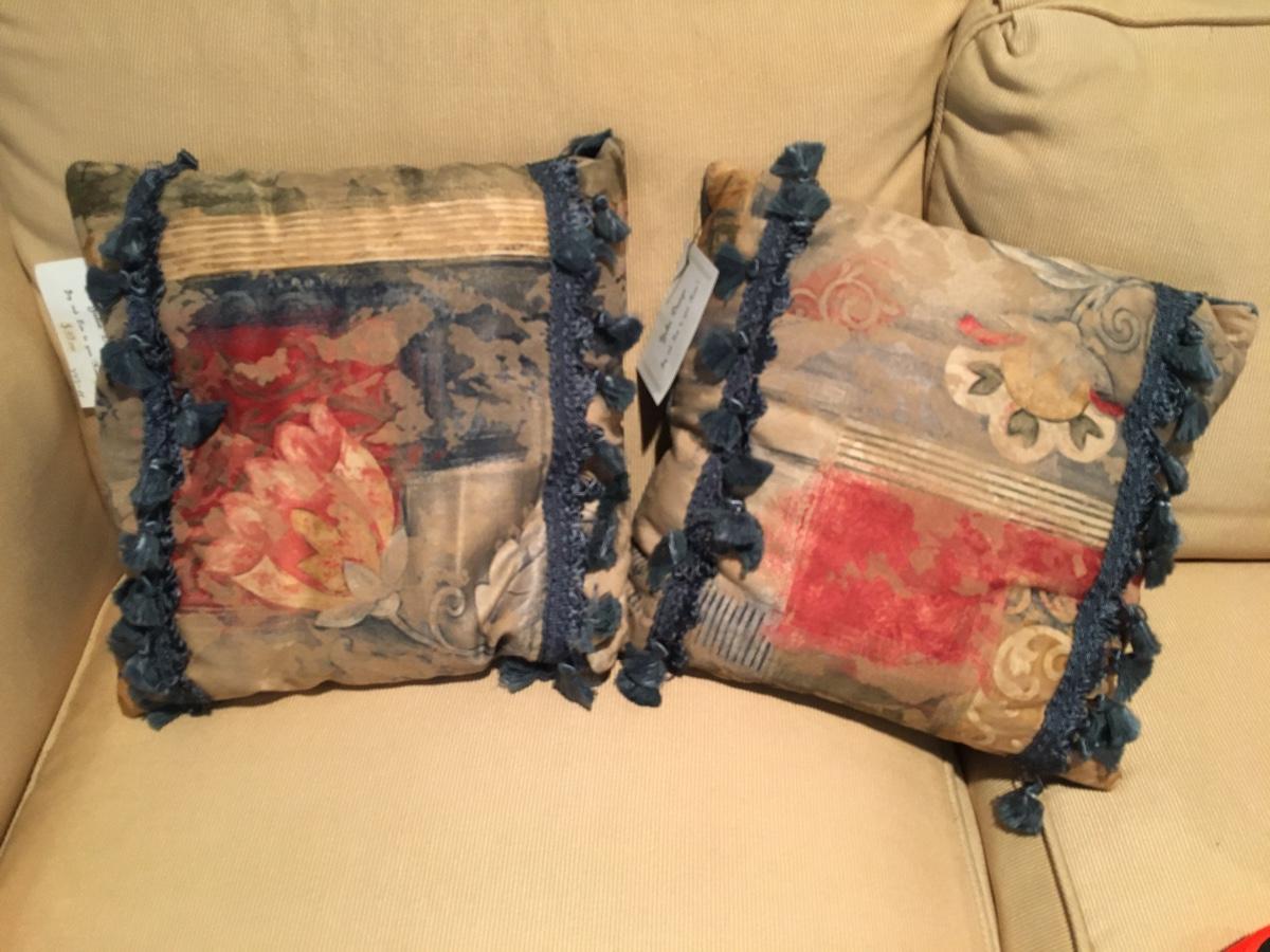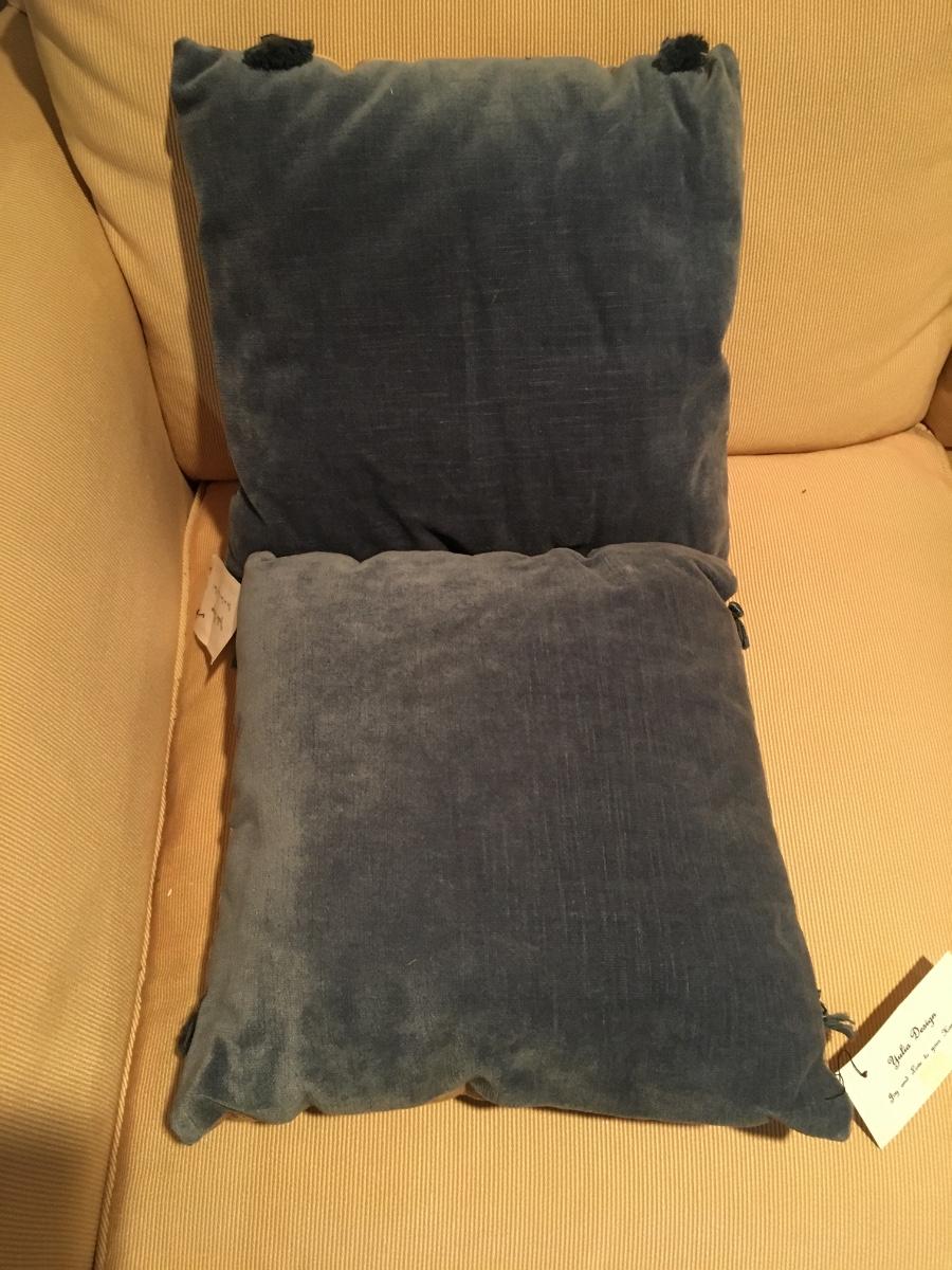New with tags pillows with tassle trim and velvet back. 12" square.