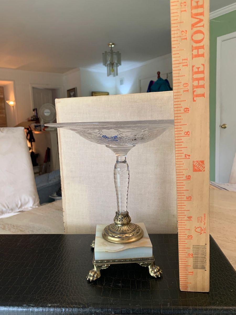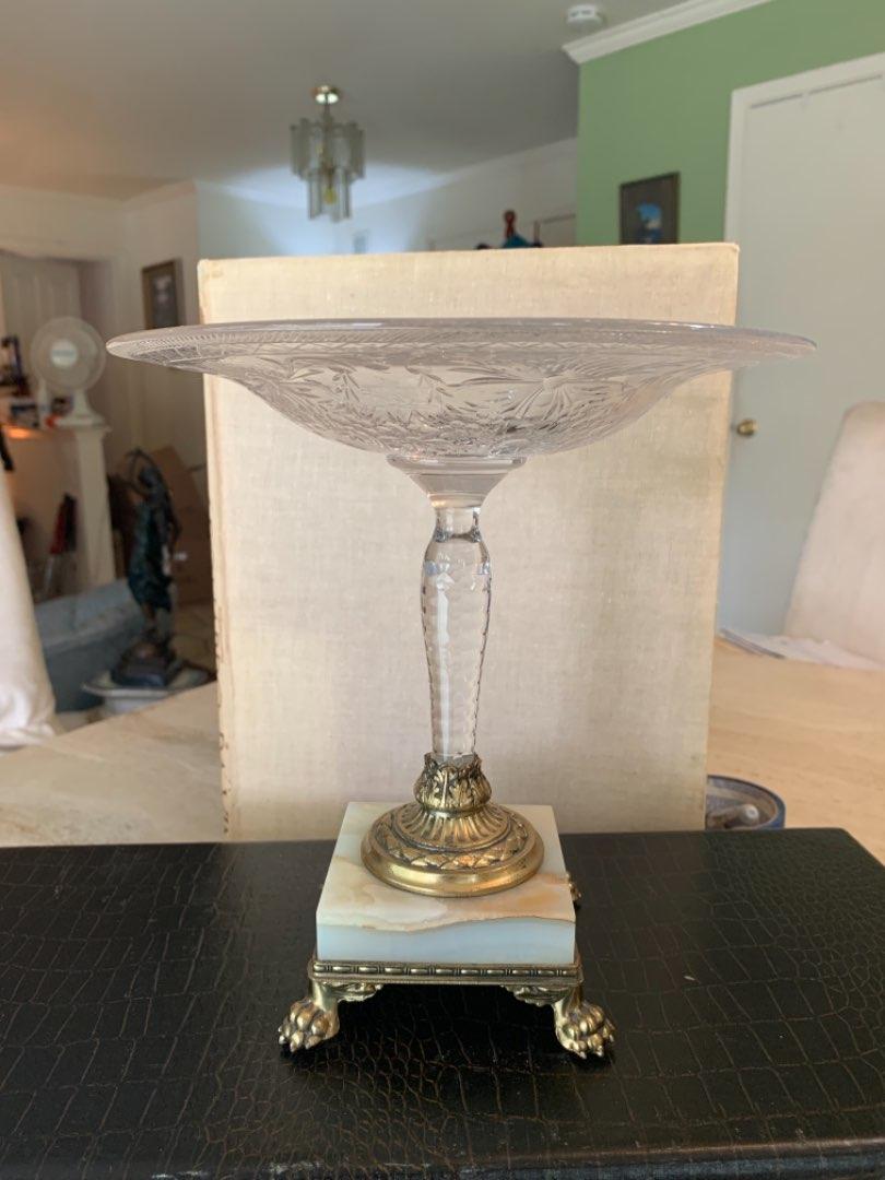 Pairpoint Crystal Cut Glass Compote Dish w/ Marble Base