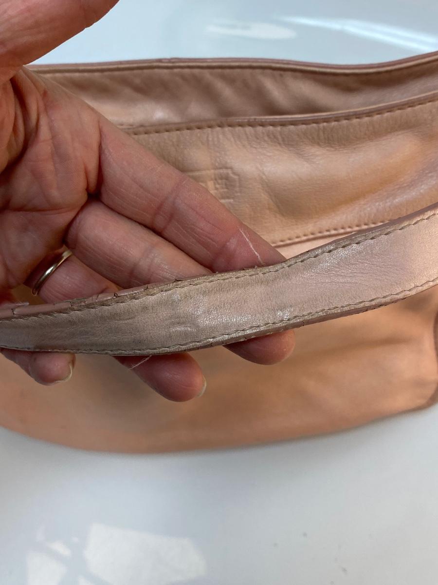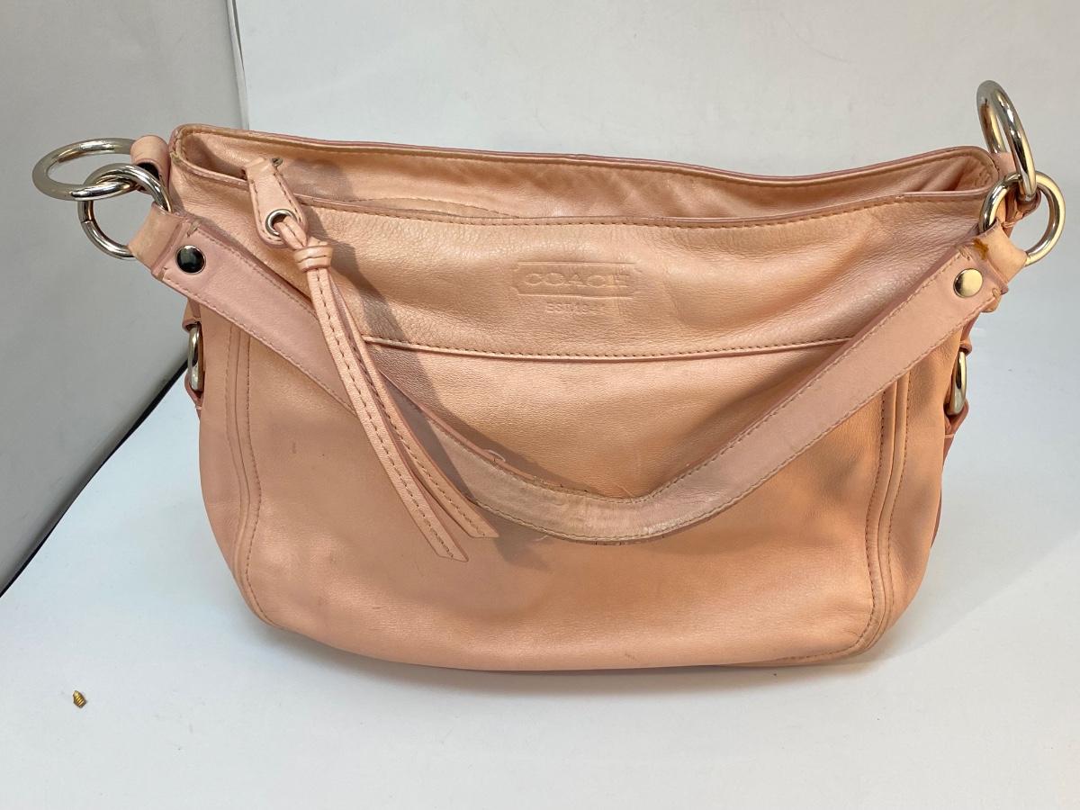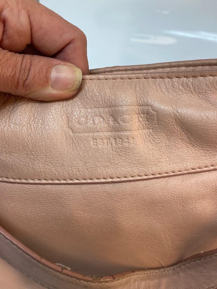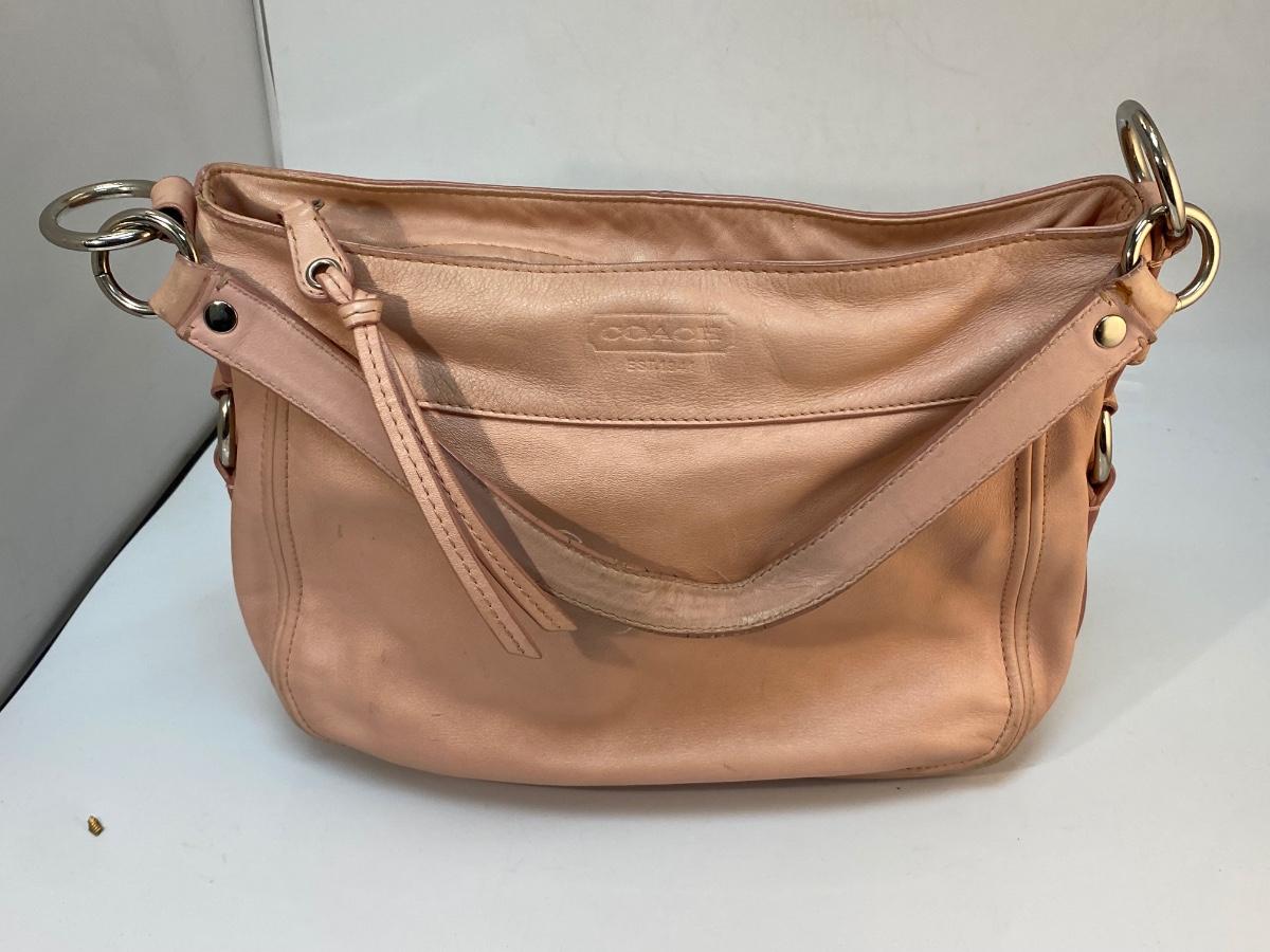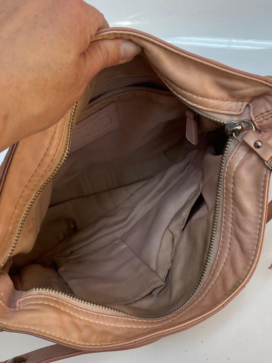 Pale Baby Pink Coach Leather Hobo Handbag Shoulder Bag Purse. In well loved, used condition. Could use a cleaning.
