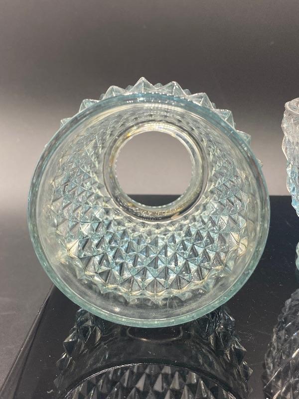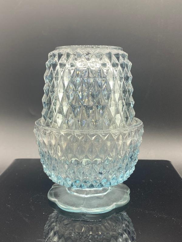 Pale Blue Fairy Lamp. 2 pieces, No chips. Under 6" tall.
