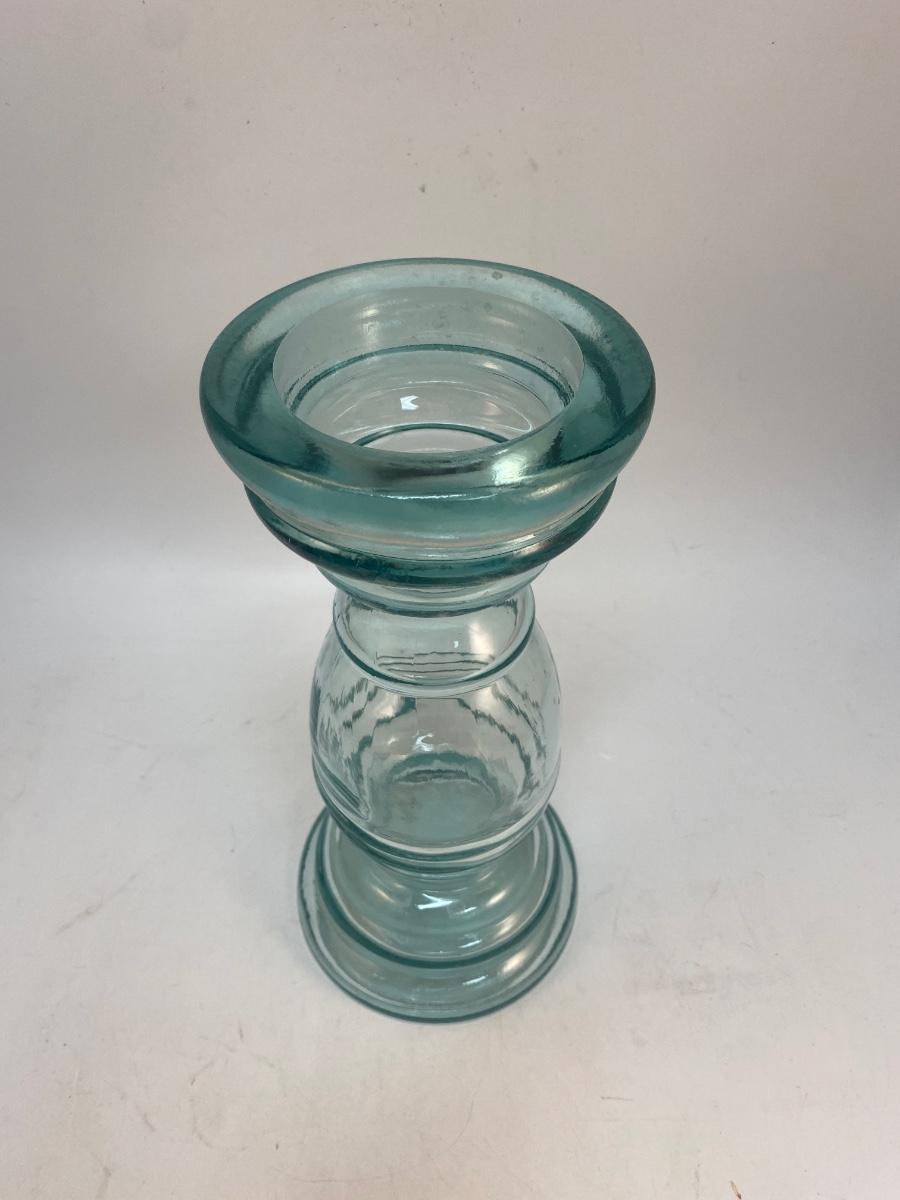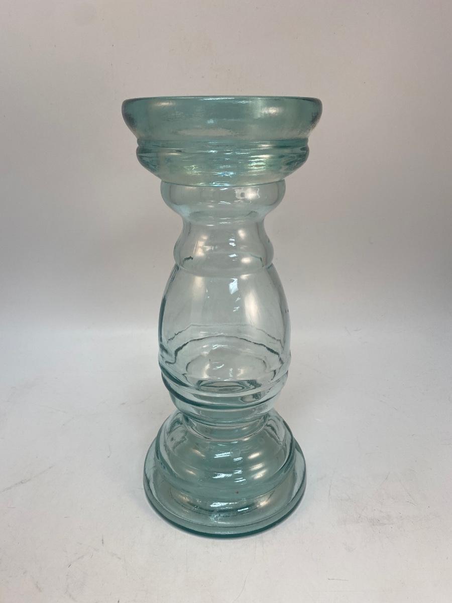 Pale Blue Glass Pedestal Candle Holder Pillar Vase