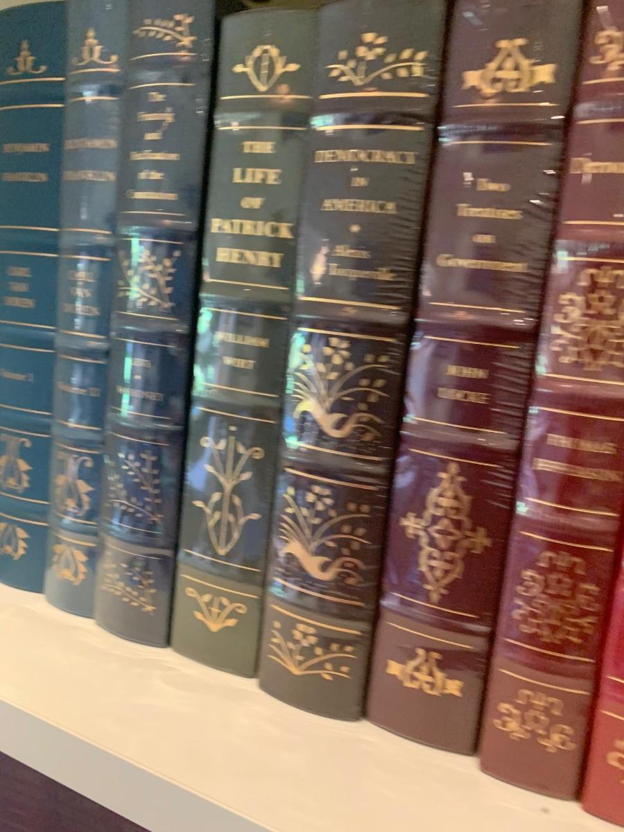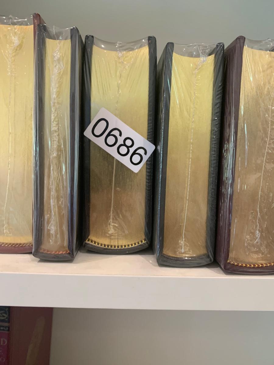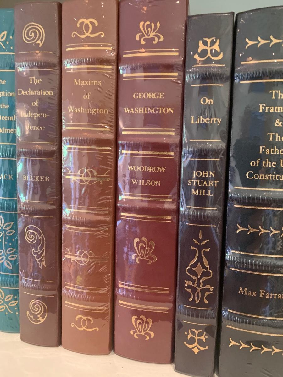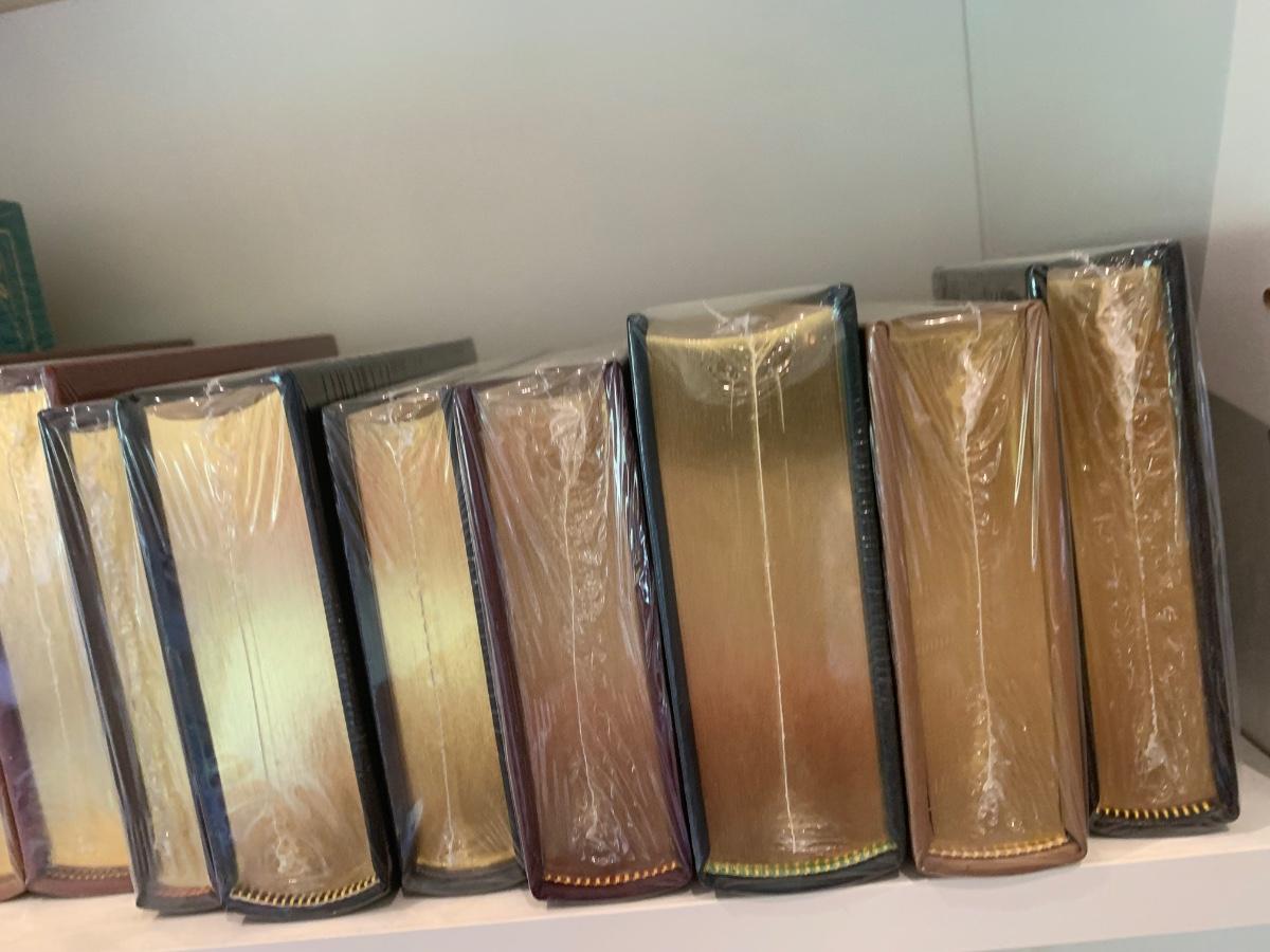 All with leather covers, tight spine and bindings, only a few are outside original plastic - see all pics. All but a few new in plastic. Selling as is, as found in the estate. See MANY photos for content, condition & dimensions. Never a Buyers Premium or Credit Card Fee added.