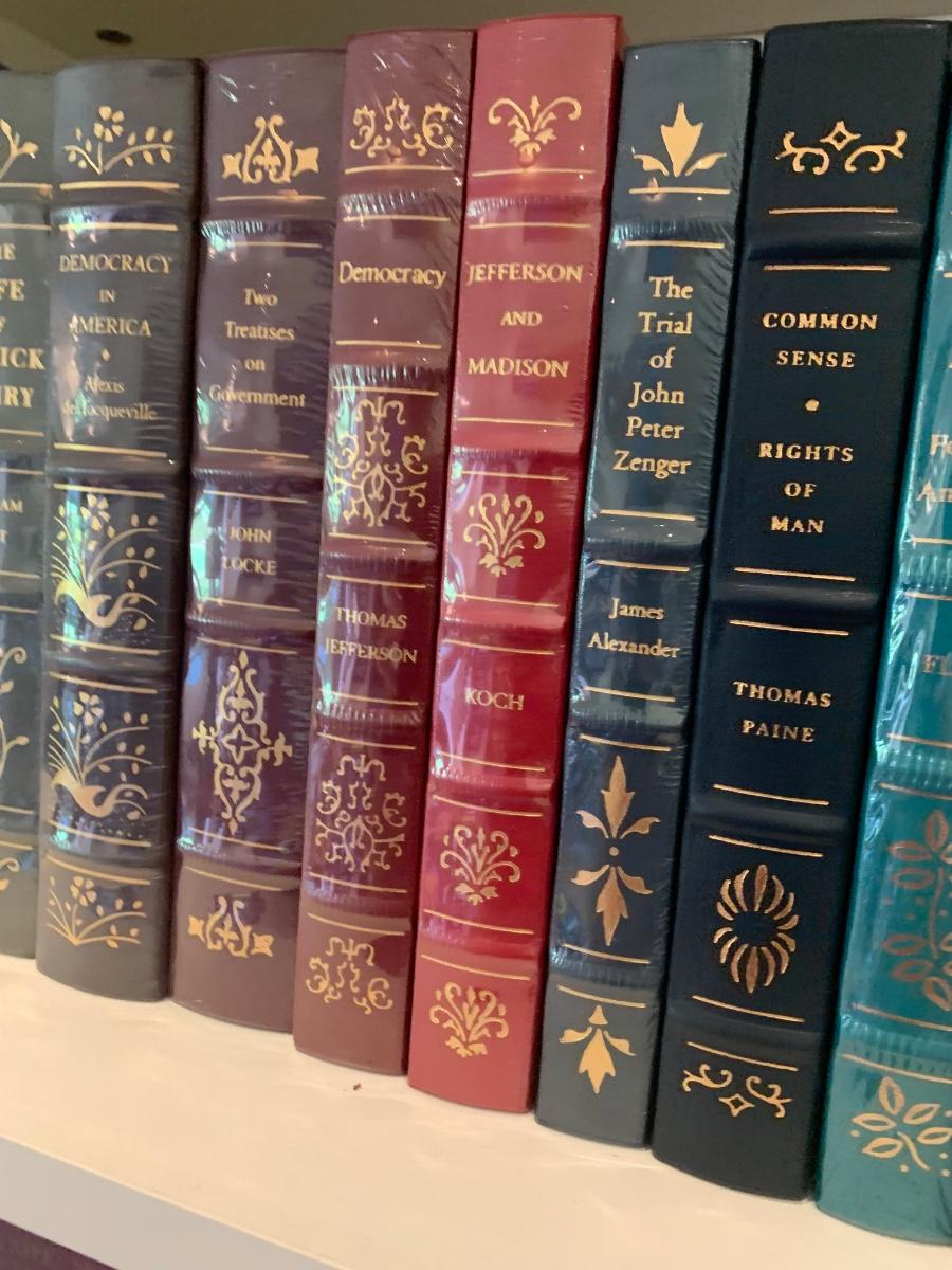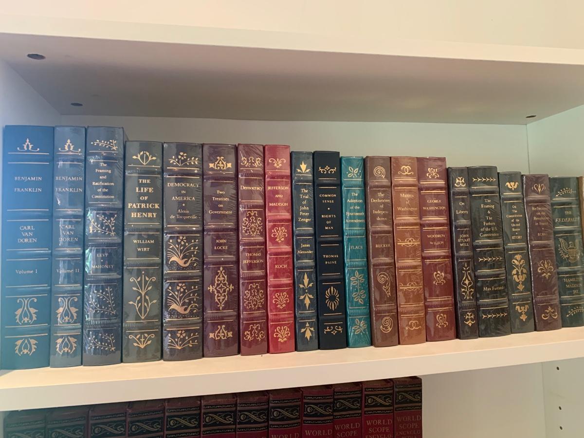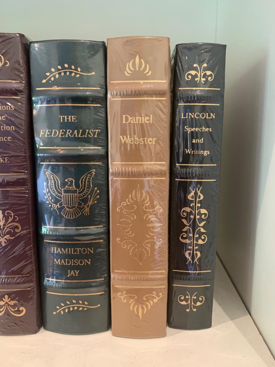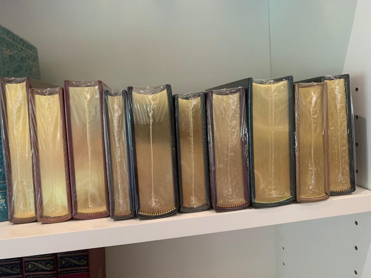 All with leather covers, tight spine and bindings, only a few are outside original plastic - see all pics. All but a few new in plastic. Selling as is, as found in the estate. See MANY photos for content, condition & dimensions. Never a Buyers Premium or Credit Card Fee added.