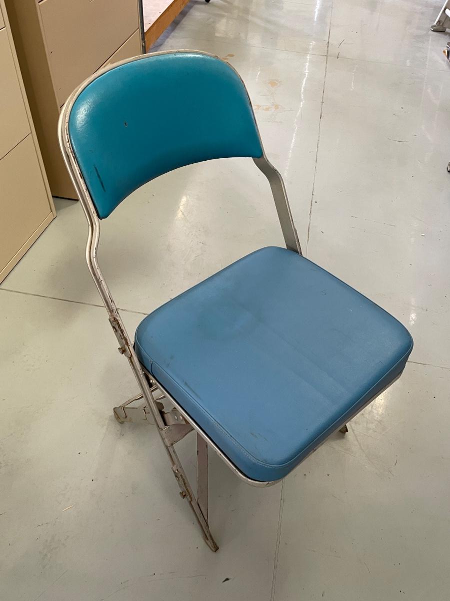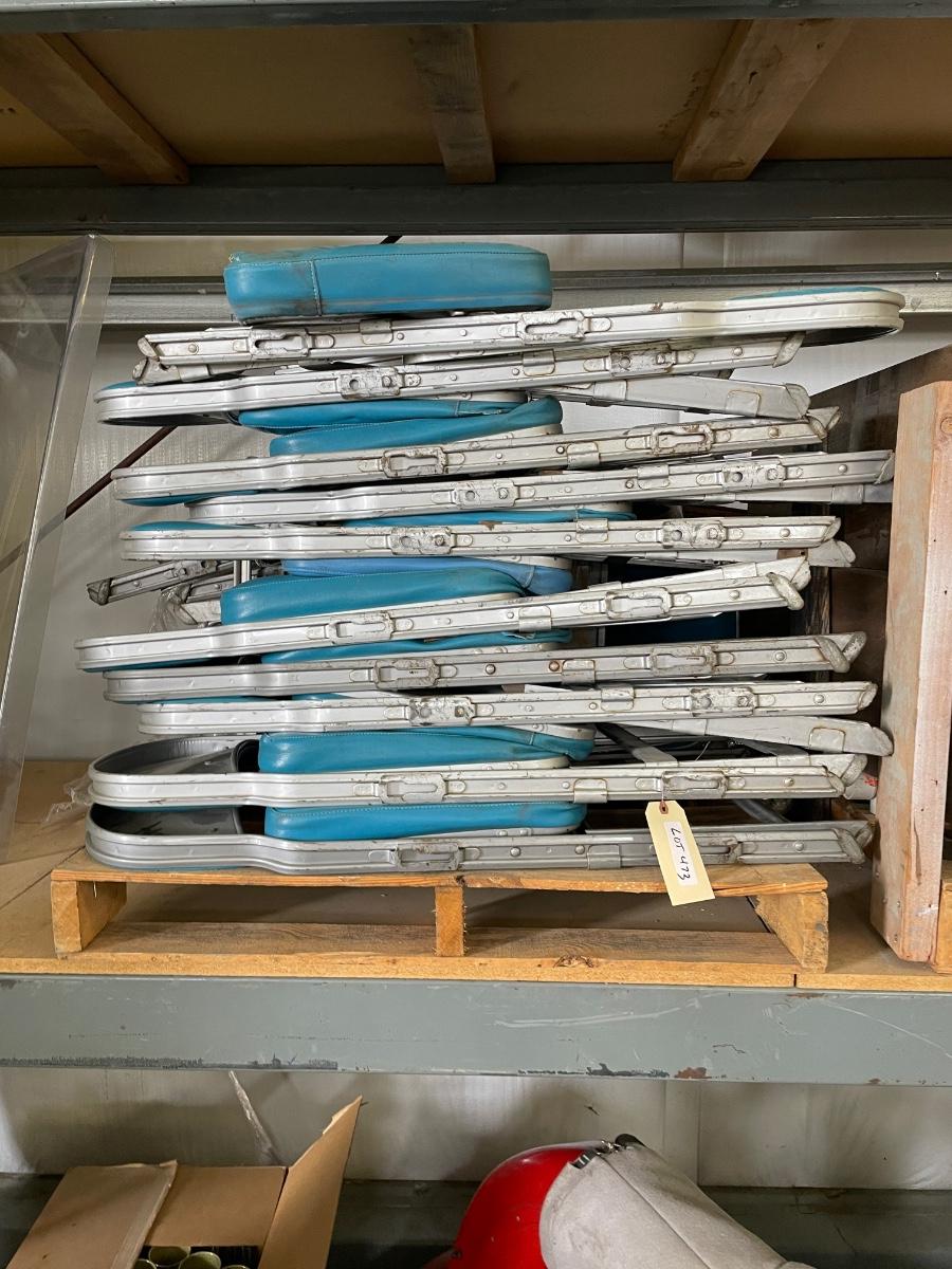 Pallet full of Vintage Metal Folding Chairs w/Blue Cushions - Old Air Race Chairs
