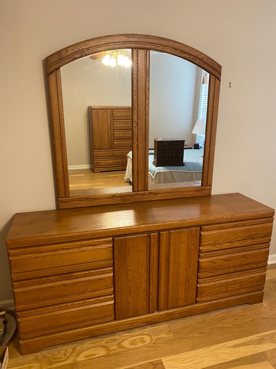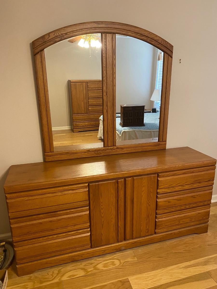 Palliser Oak Dresser 77x70x18 Excellent Condition, 2 Doors, 6 Drawers, and Mirror