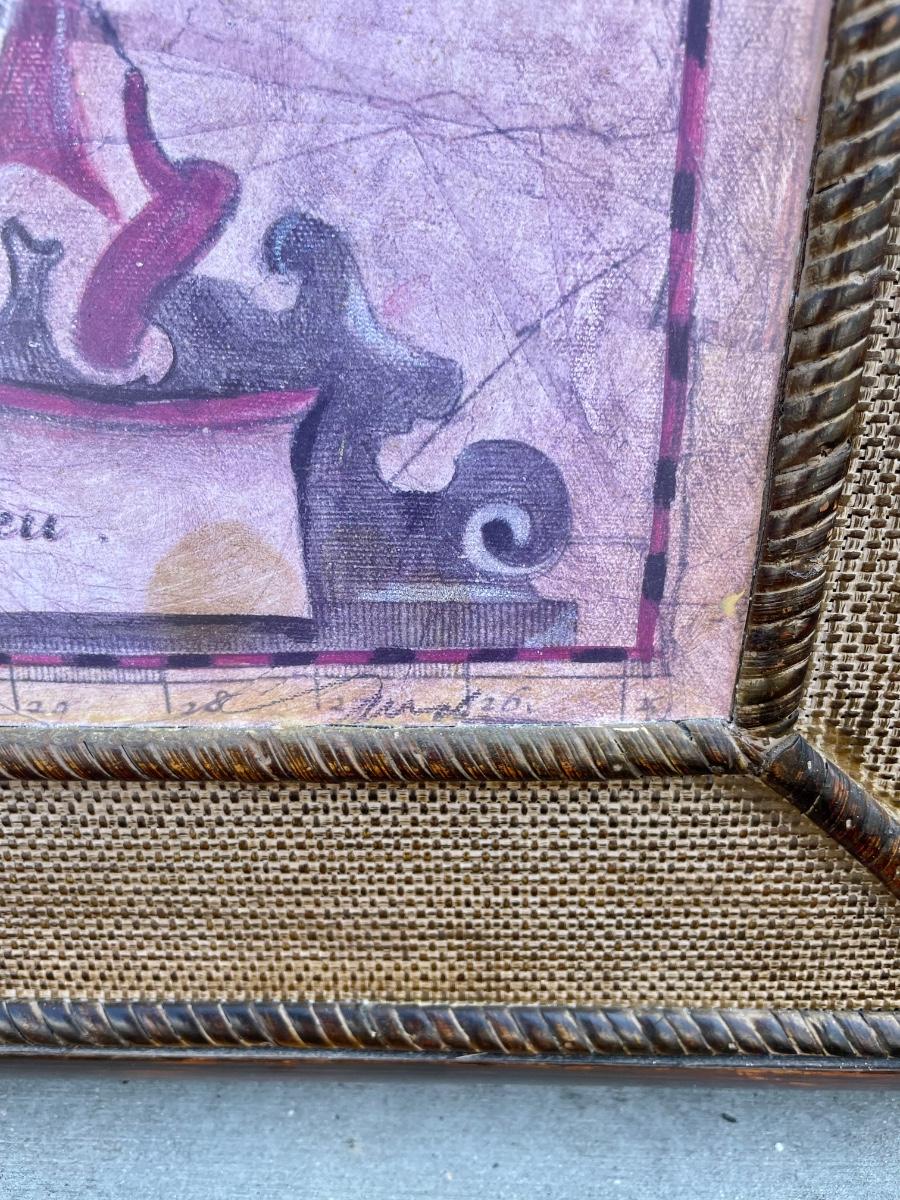 Simulated bamboo frame with Latin inscription below image of tree. Approx size 28” x 38”.