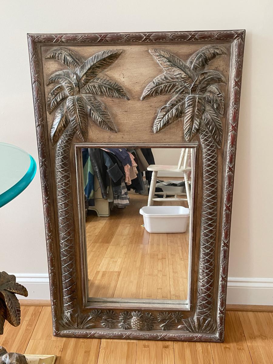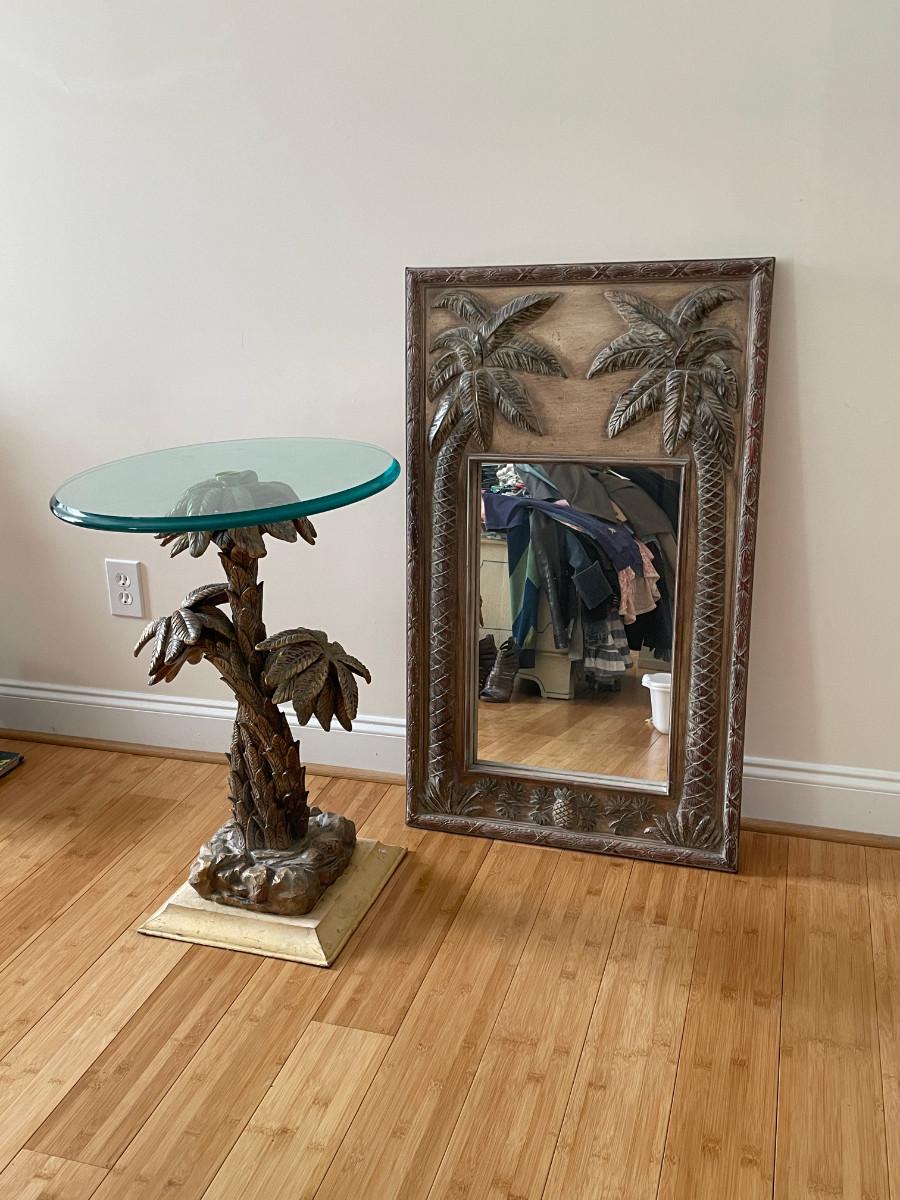 Table is approximately 29” tall. Mirror is approximately 39.5” tall and 23.75” wide. Hand-painted by owner who was a professional painter.