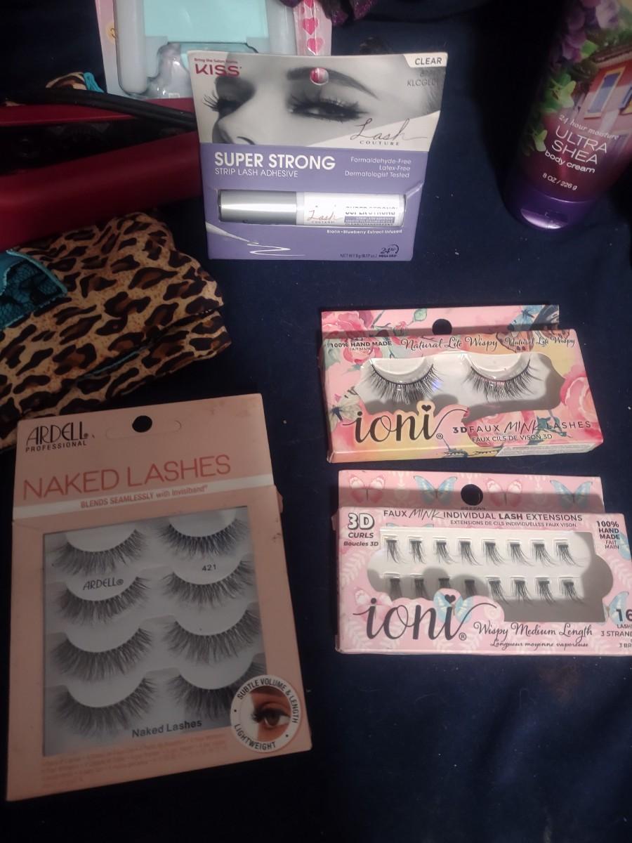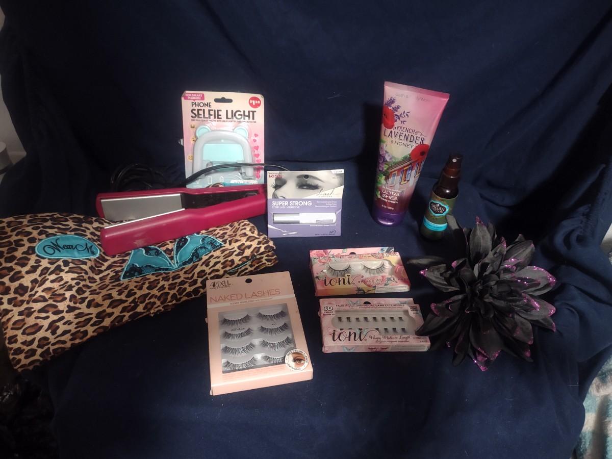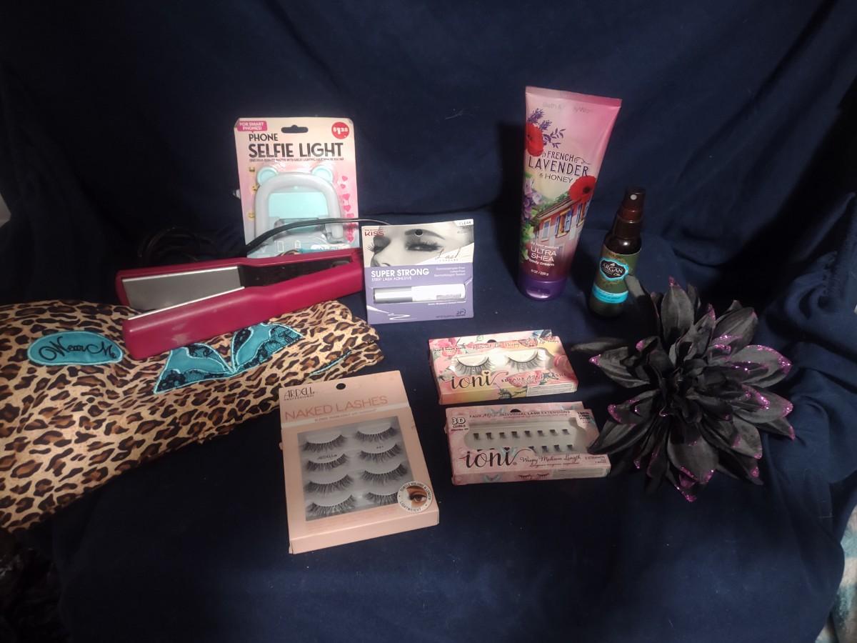 FALSE EYELASHES W/ GLUE ALL BRAND NEW. BATH AND BODY WORKS LOTION, HAIR STRAIGHTENER AND MORE!