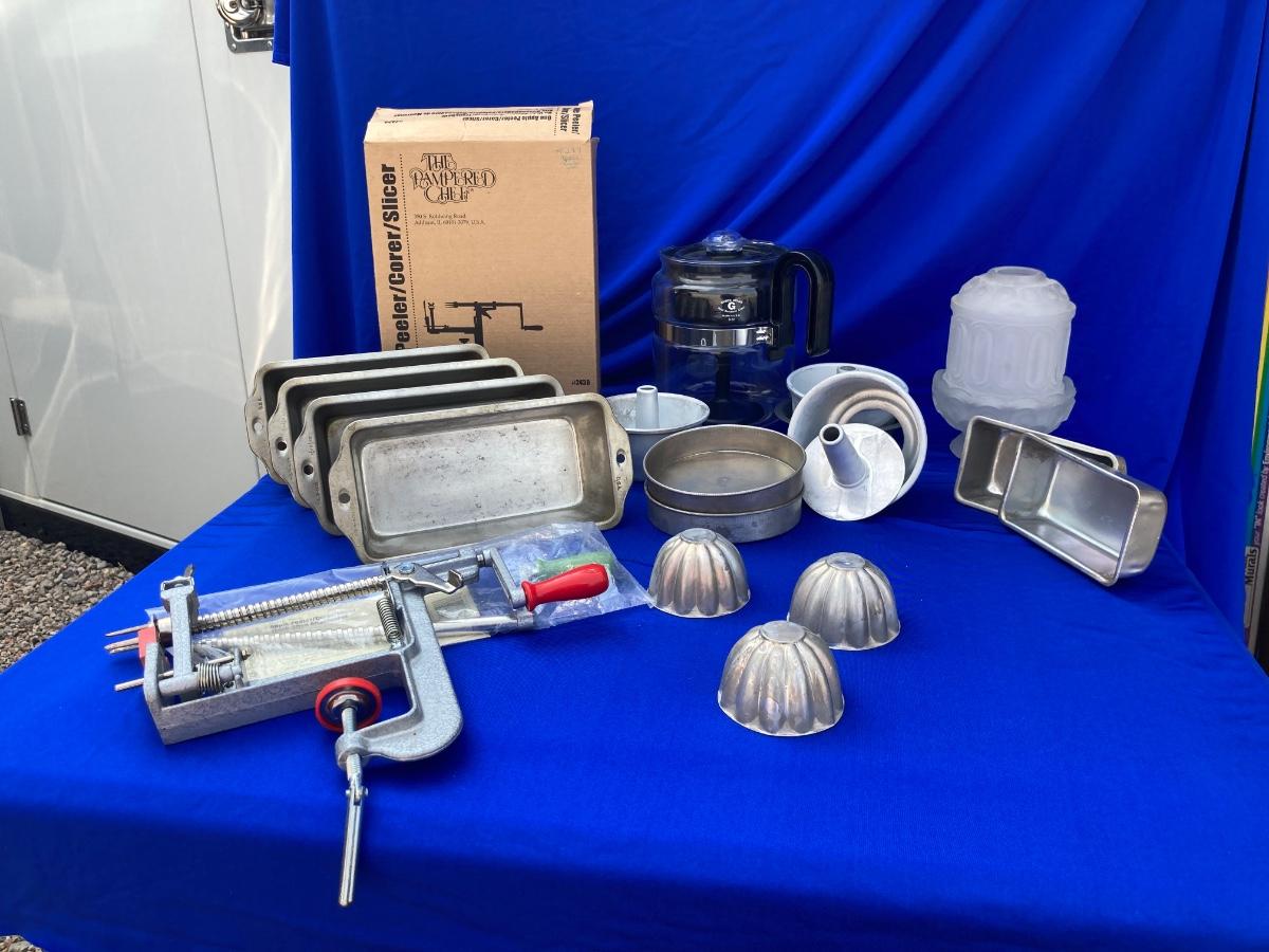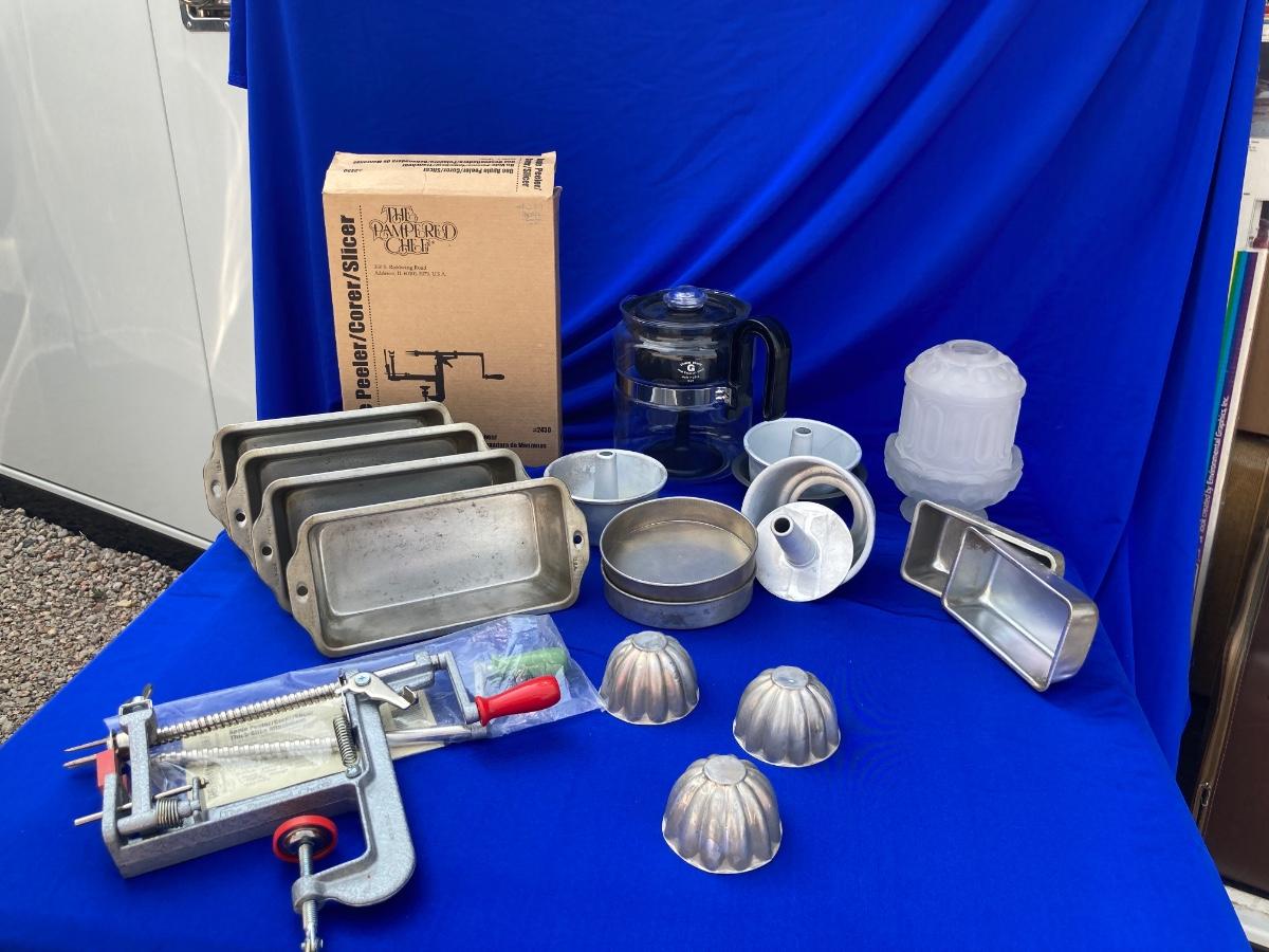 PAMPERED CHEF APPLE 🐎 PEELER, STOVE TOP COFFEE POT AND ALL SORTS. IF BABY BAKING PANS AND MORE