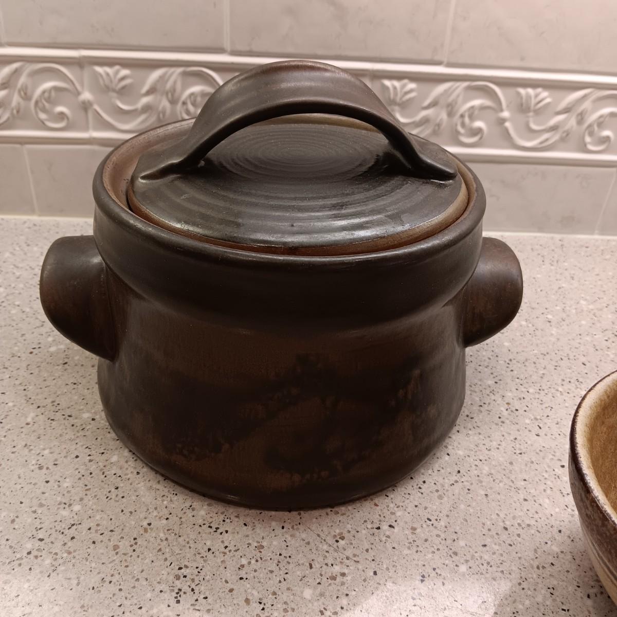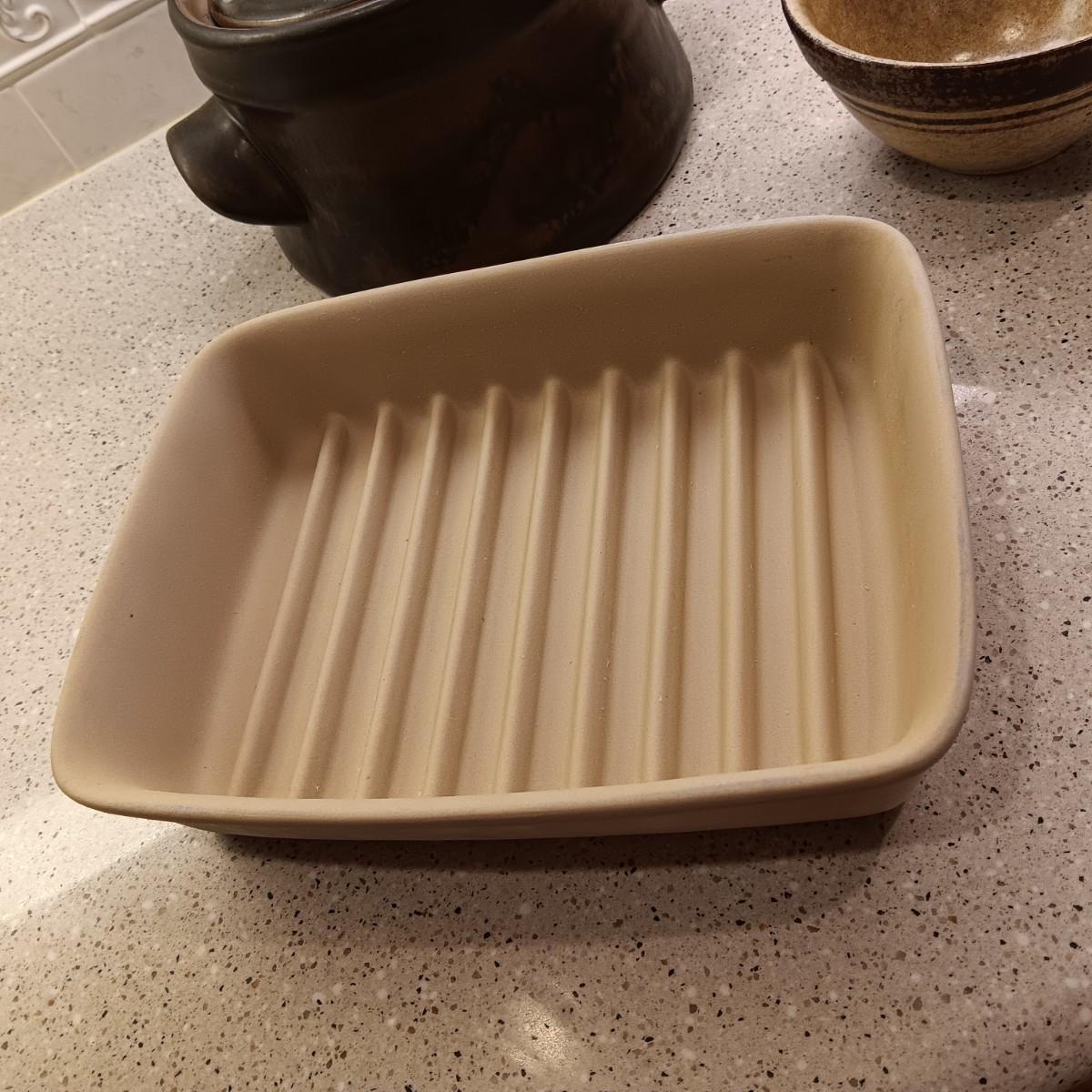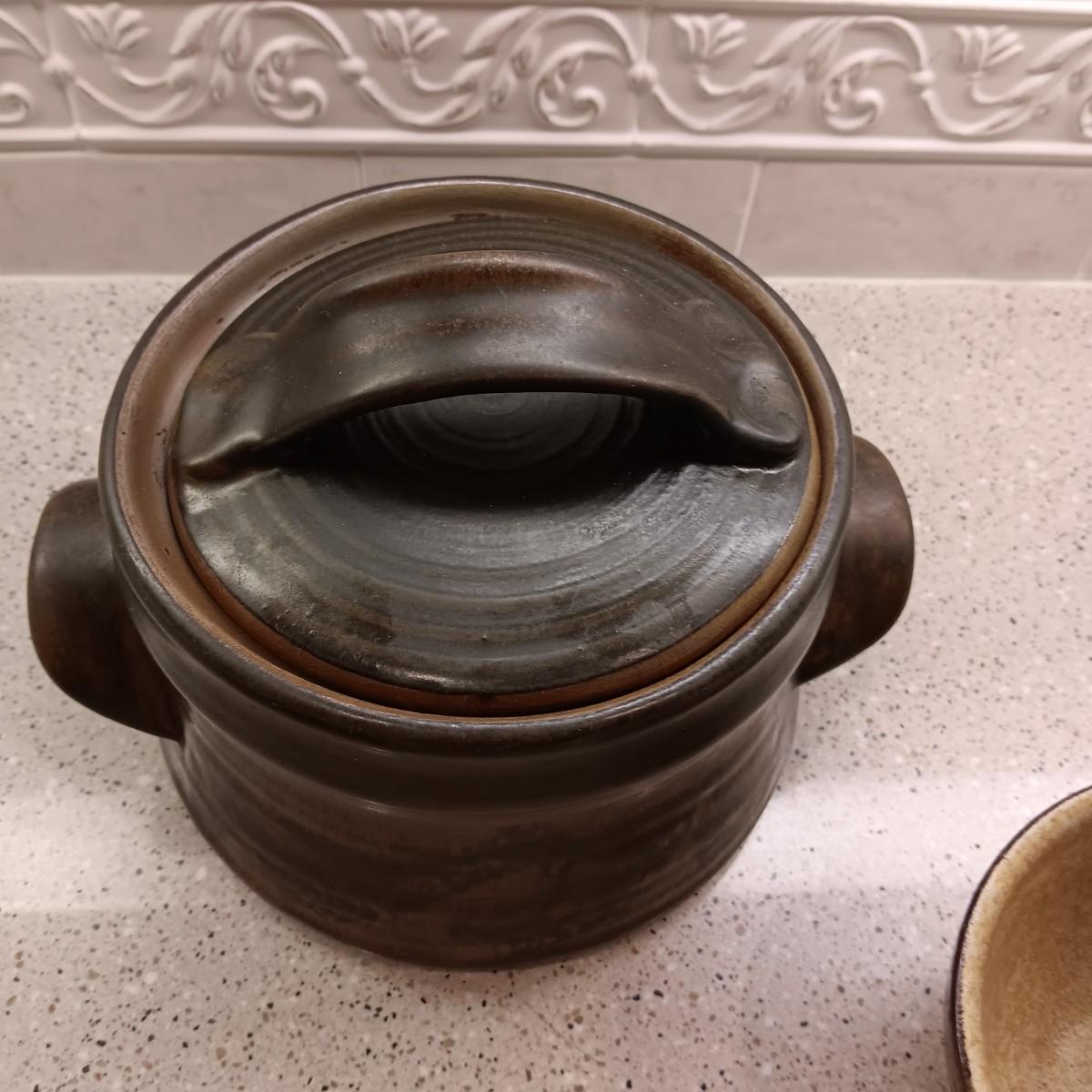 PAMPERED CHEF BAKING DISH, POTTERY CRAFT BOWL AND A BEAN POT