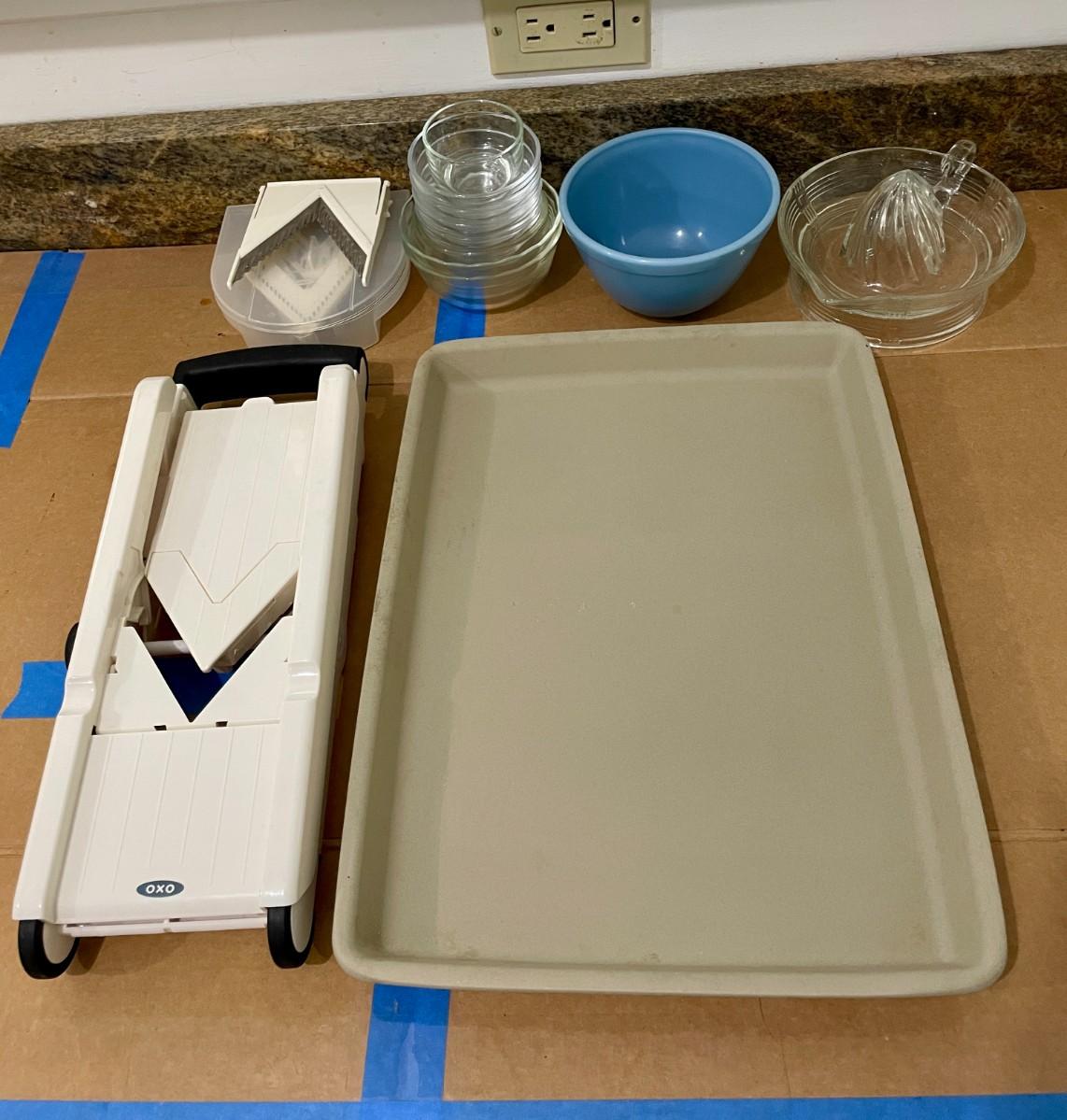 Pampered Chef baking sheet, mandoline slicer + extras