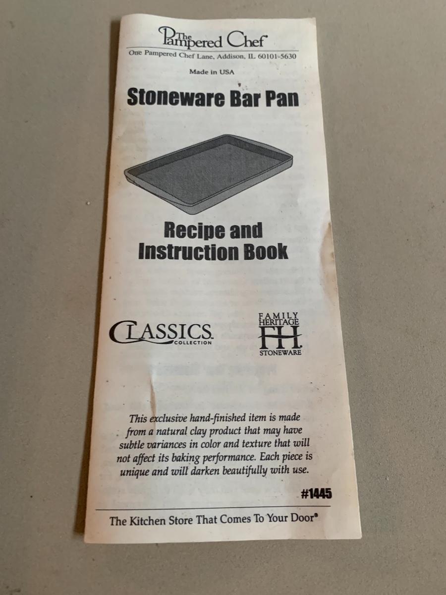 Pampered Chef stoneware bar pan, lightly if ever used.