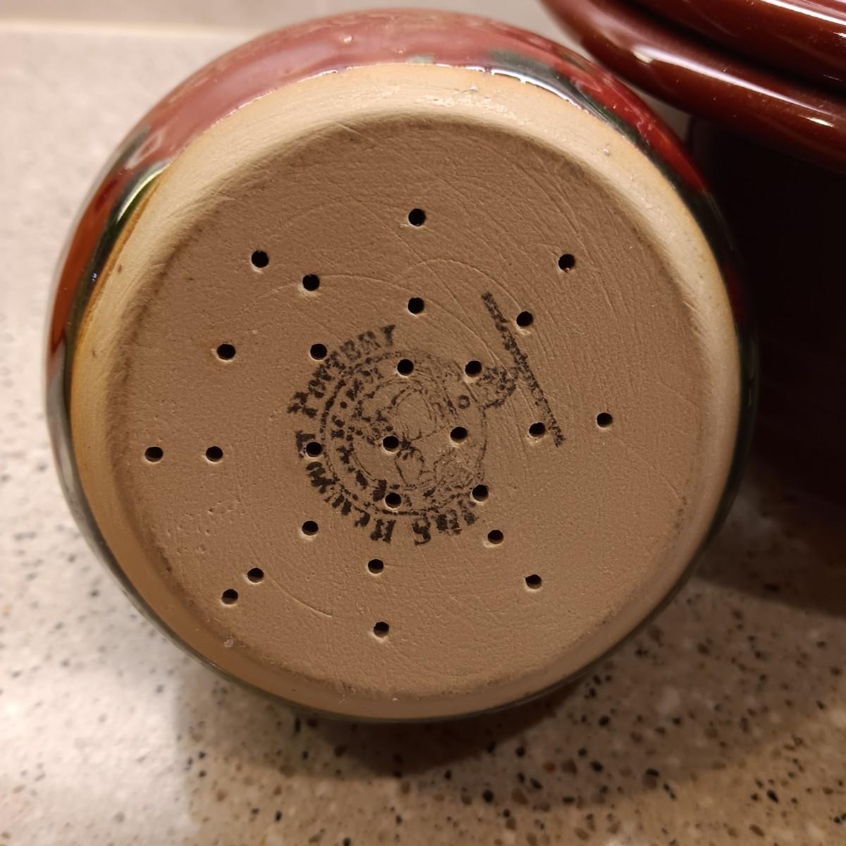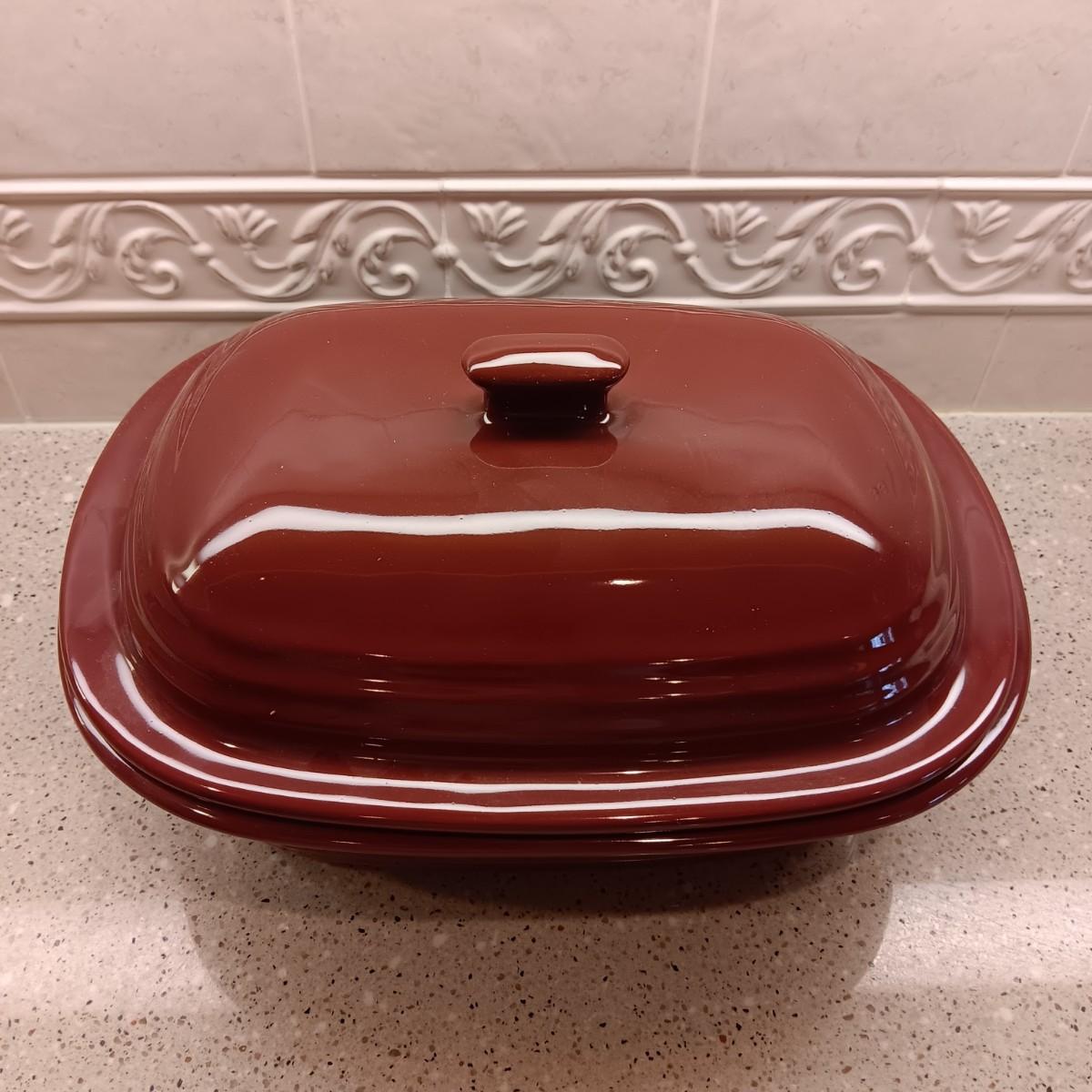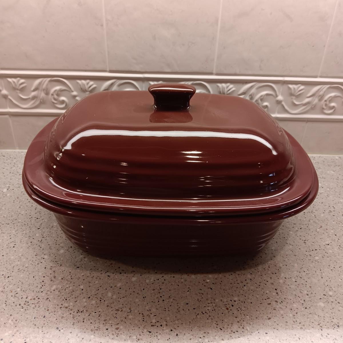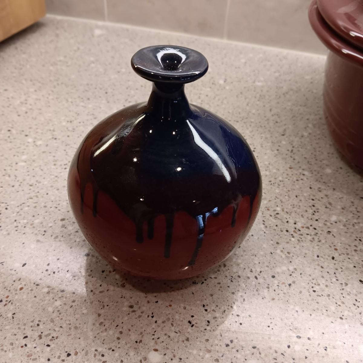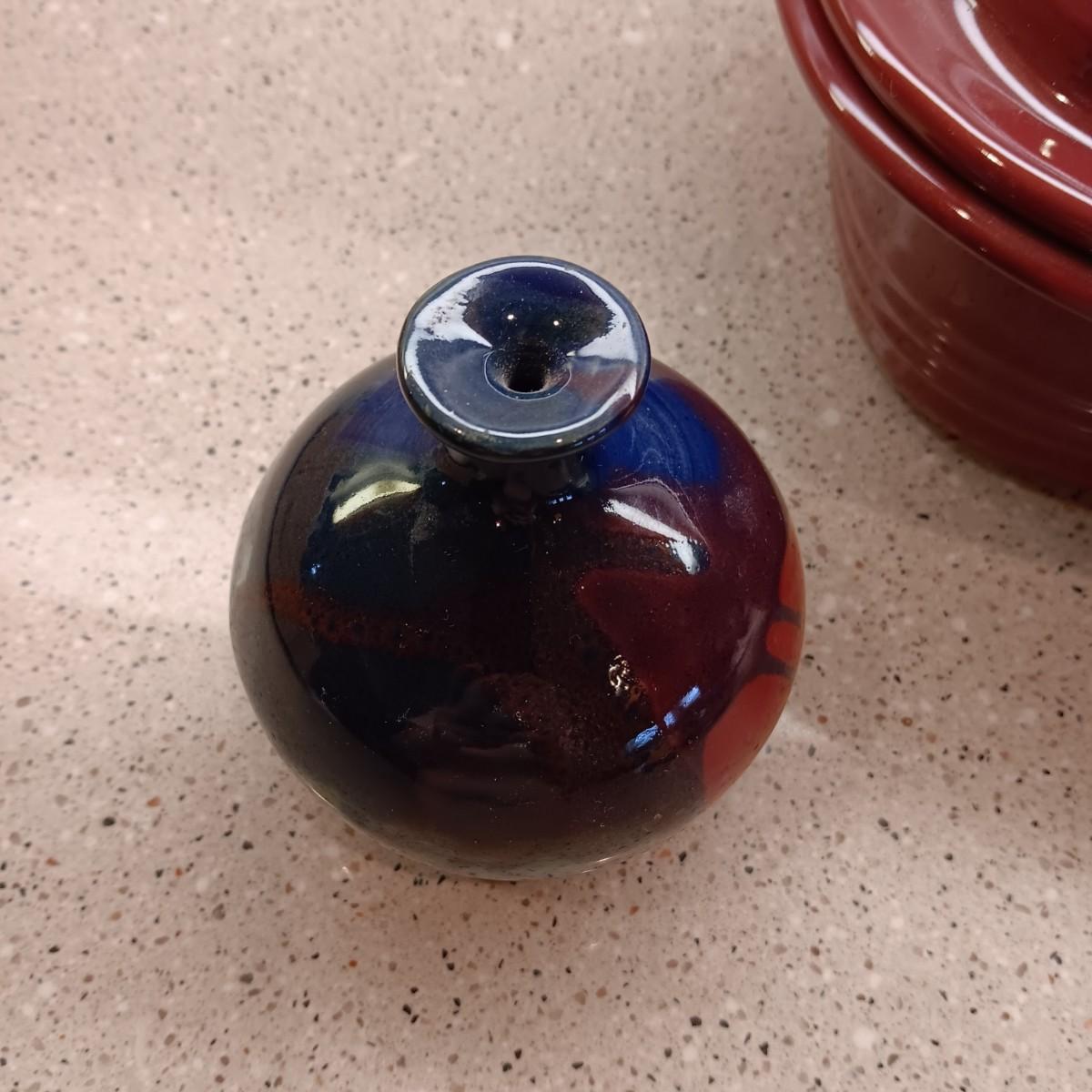 PAMPERED CHEF DEEP COVERED BAKER, CLAY BUD VASE AND 2 CLAY BOWLS