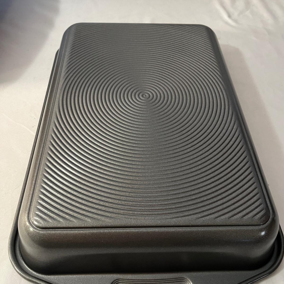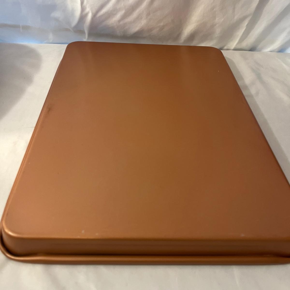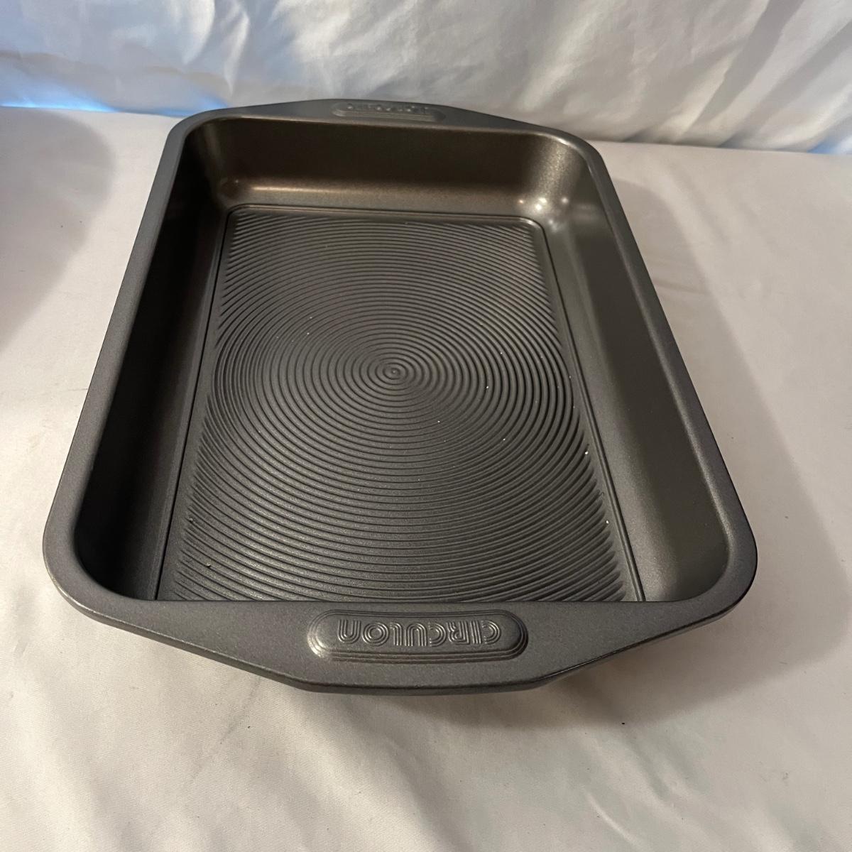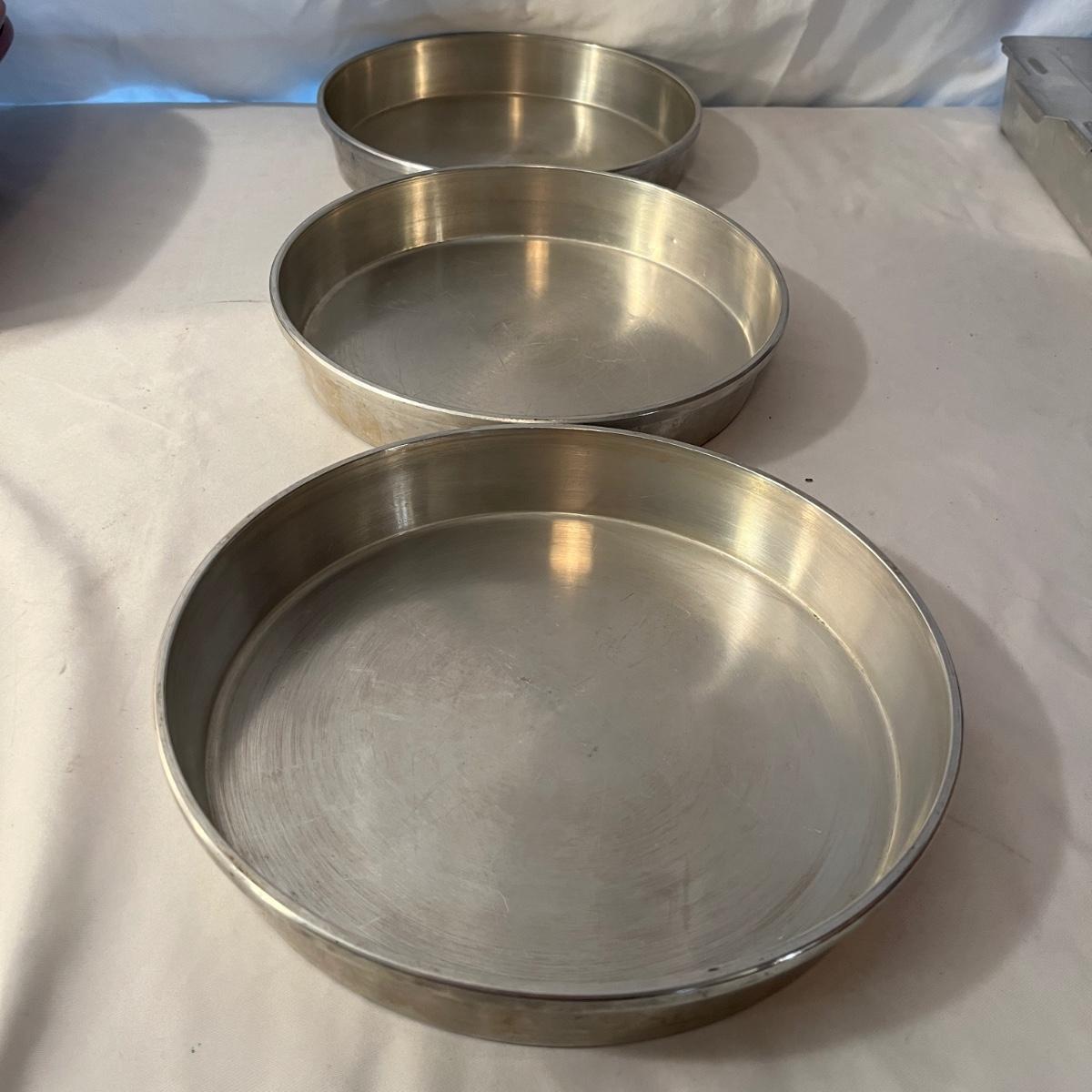 Lot includes a Pampered Chef Dutch Oven, two wooden rolling pins, Pyrex pie dish, three muffin tins, baking pans, sifters, bread pan, large baking pan and more. Large pan measures 12.5” x .17.5” x .5”H.