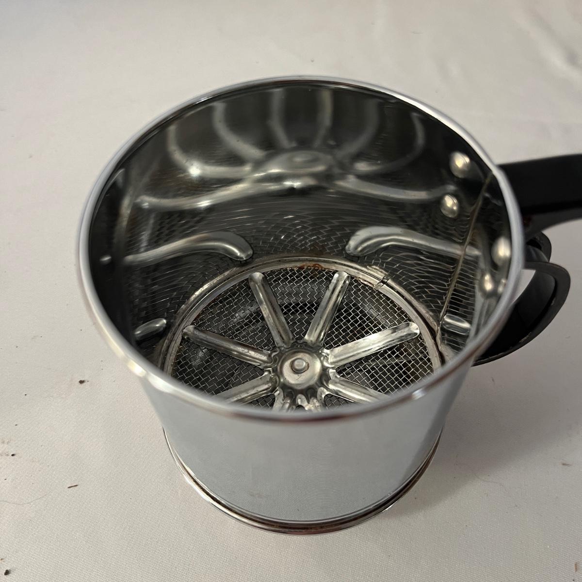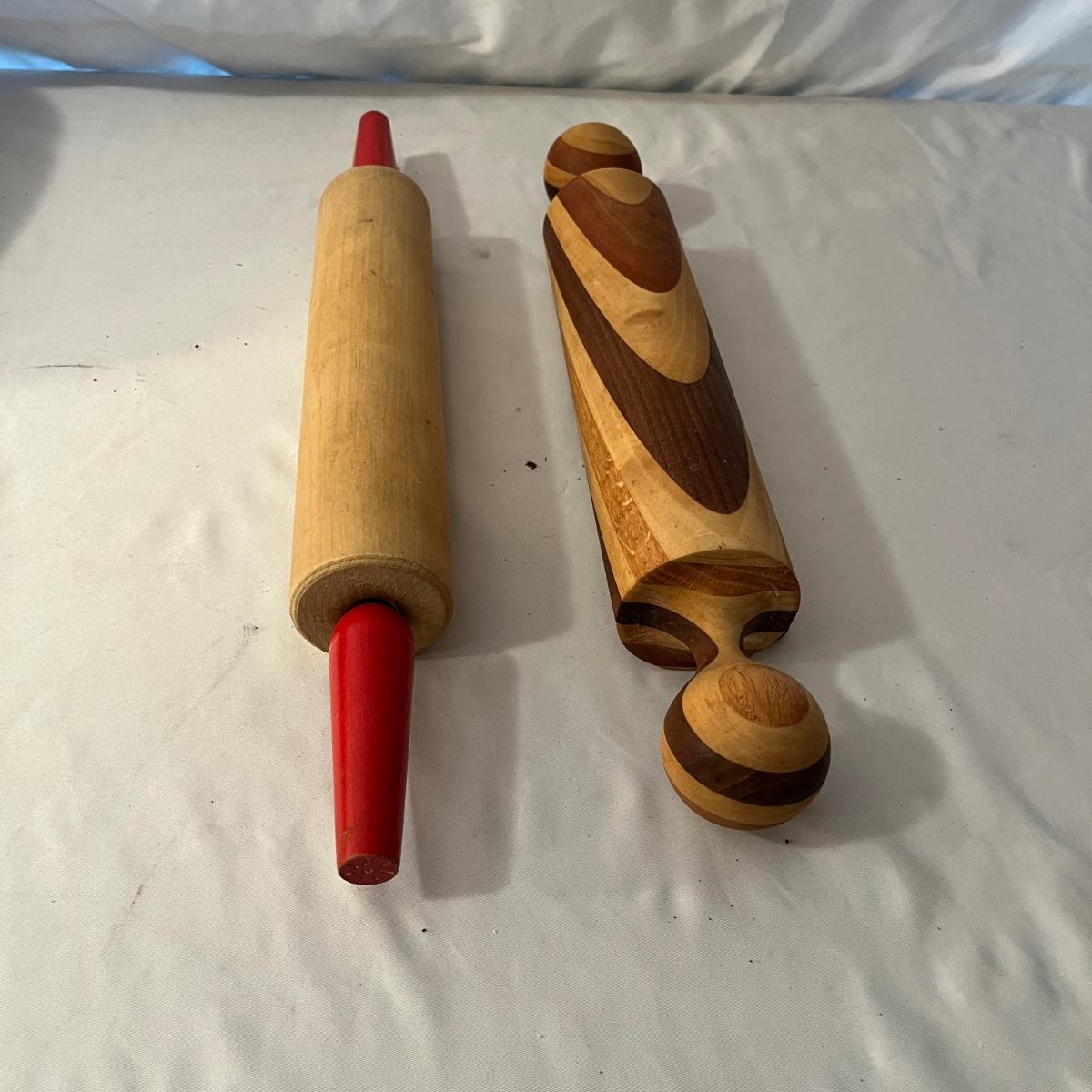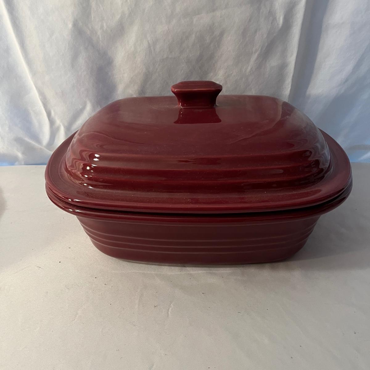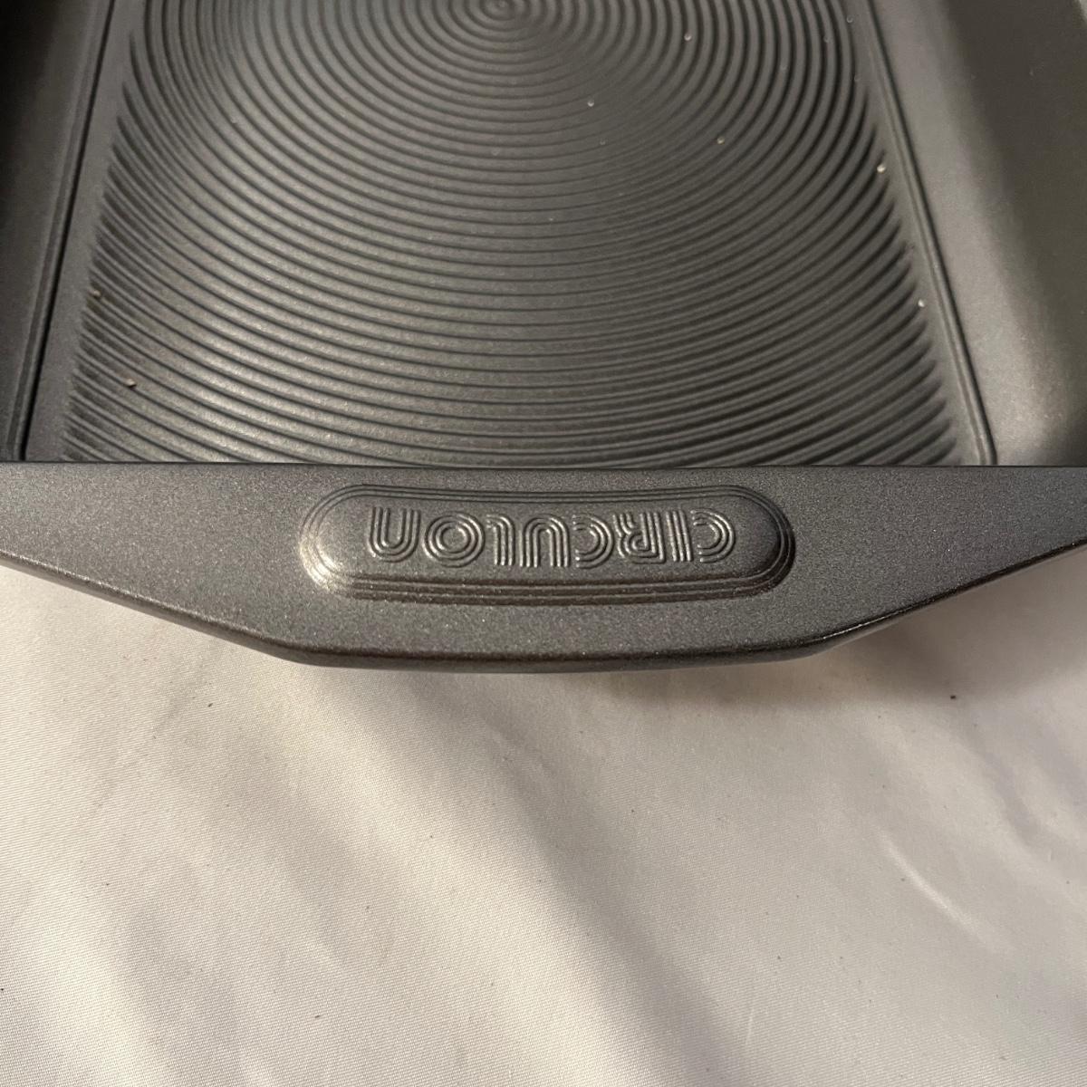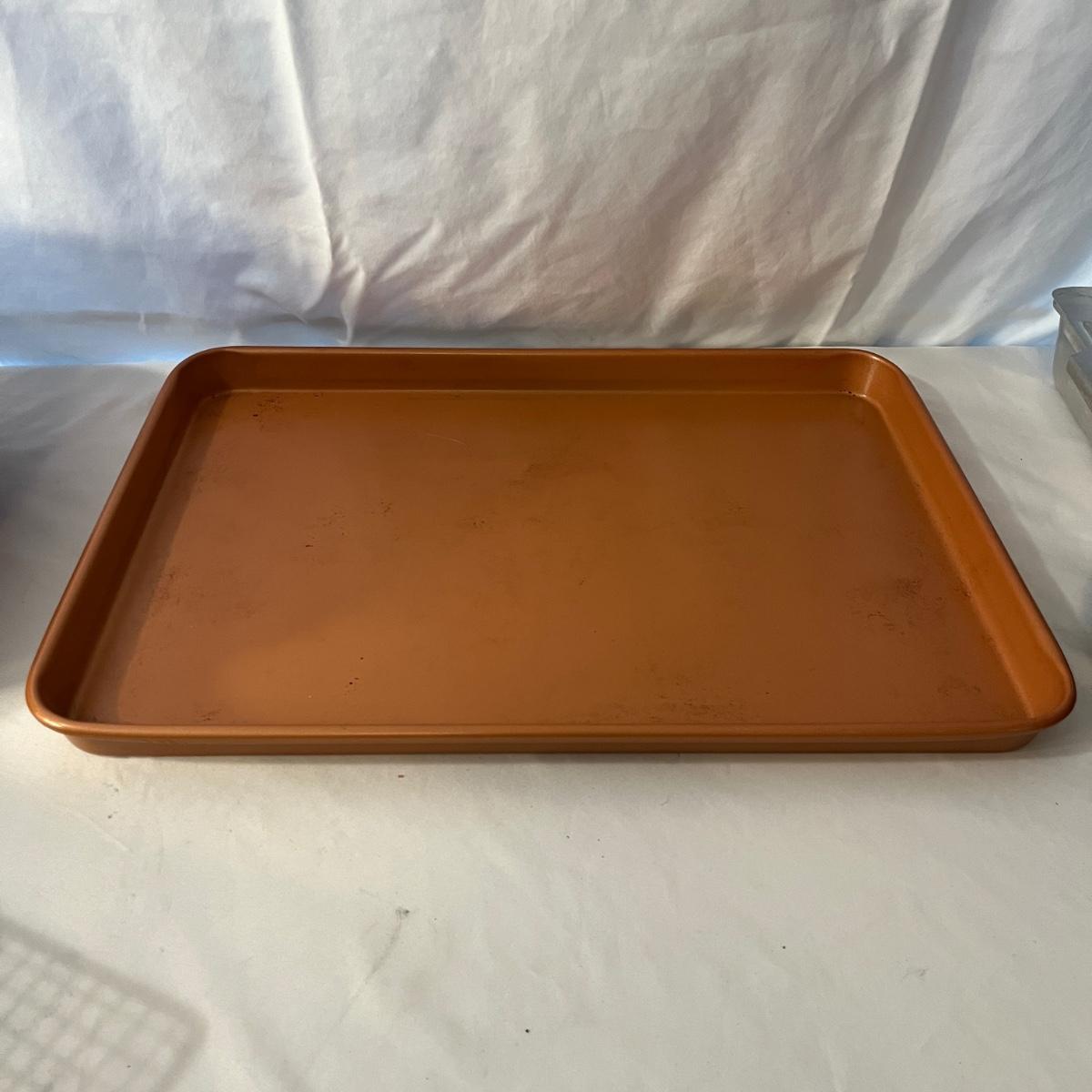 Lot includes a Pampered Chef Dutch Oven, two wooden rolling pins, Pyrex pie dish, three muffin tins, baking pans, sifters, bread pan, large baking pan and more. Large pan measures 12.5” x .17.5” x .5”H.