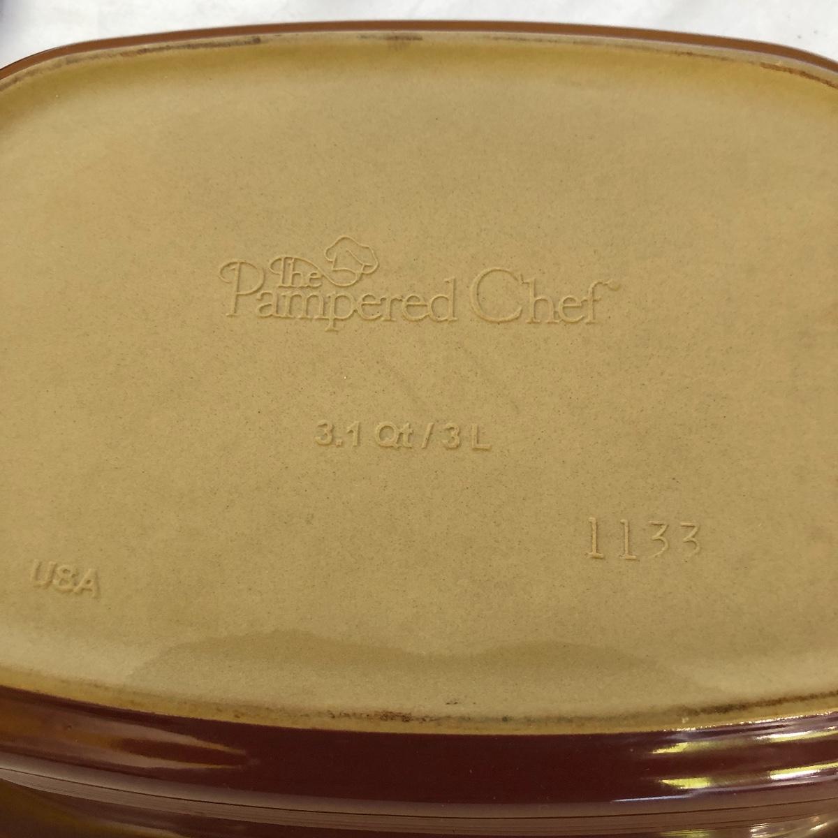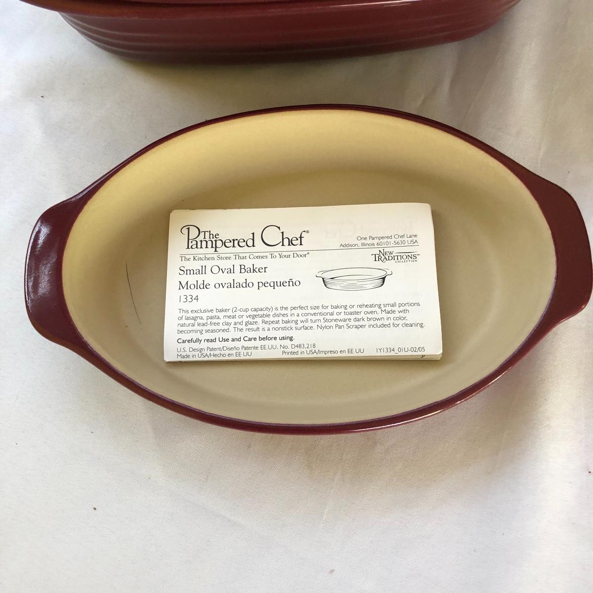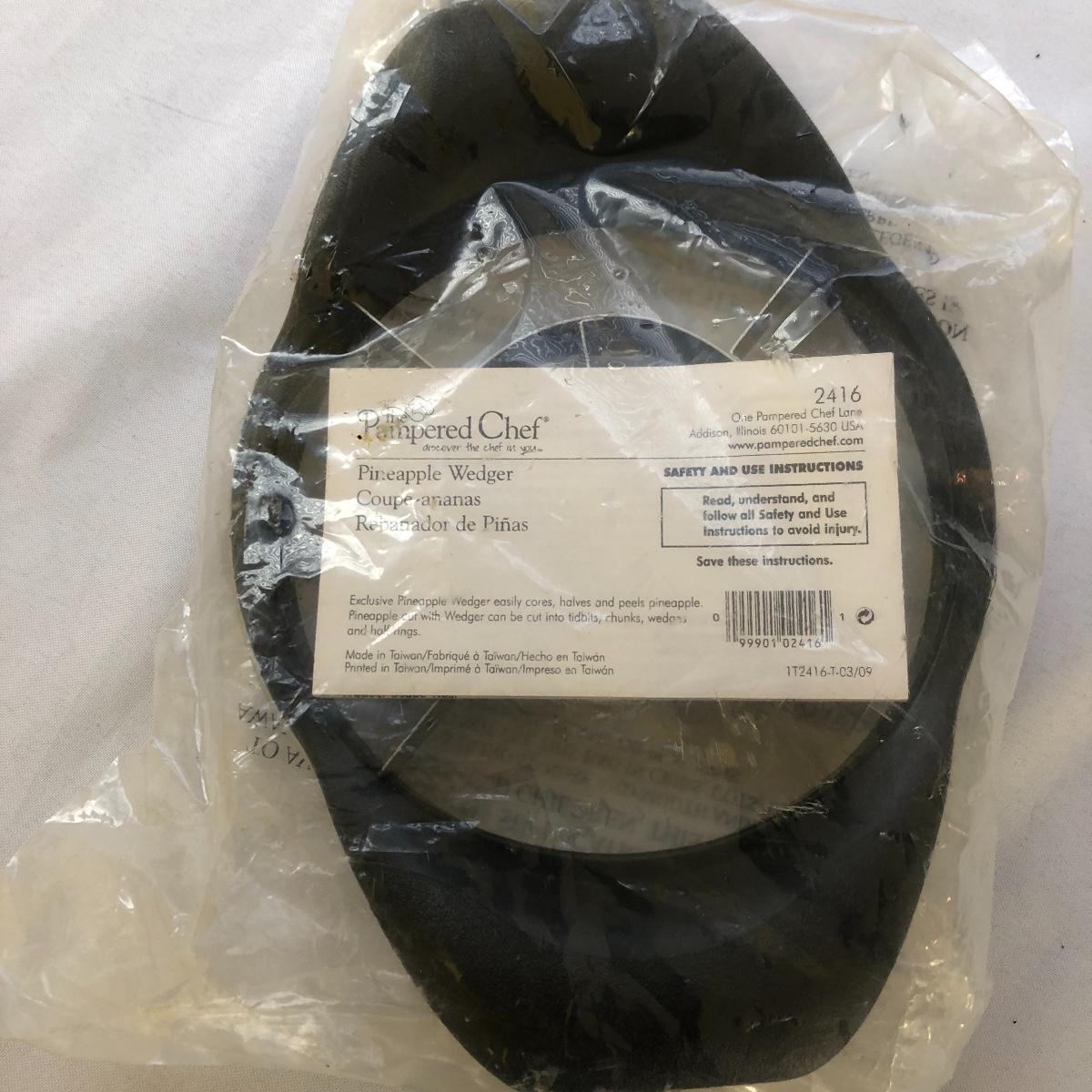 This lot includes six pampered chef items: a small oval baker, covered casserole dish, creative cutters set, a pineapple wedger and two baking dishes. Local pick up only.
