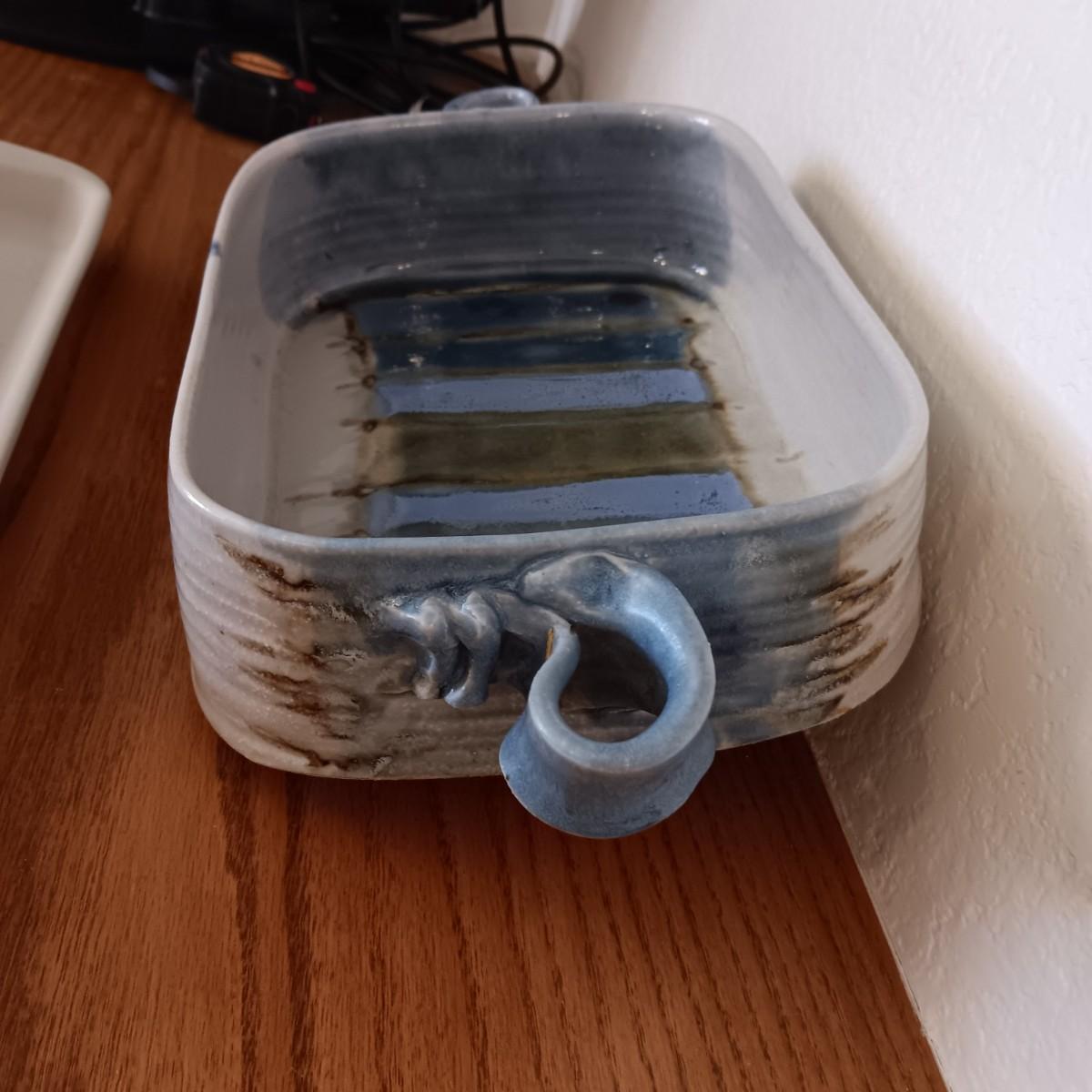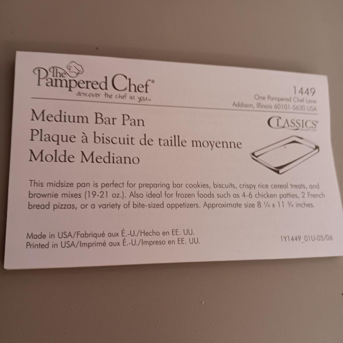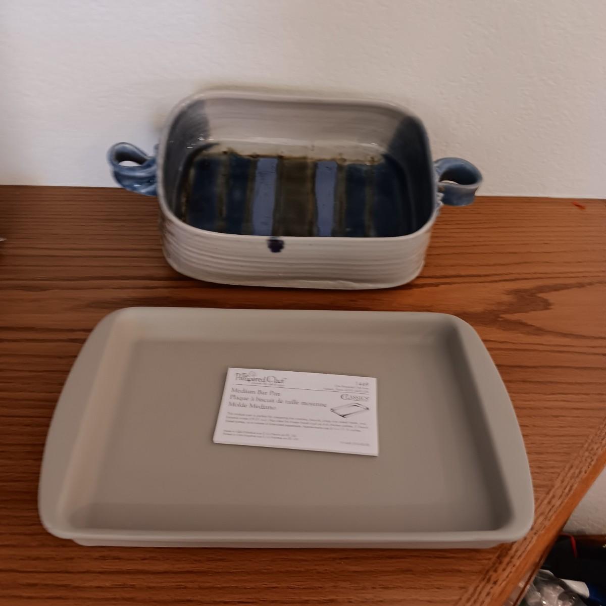 PAMPERED CHEF MEDIUM BAR PAN AND A CLAY CASSEROLE DISH