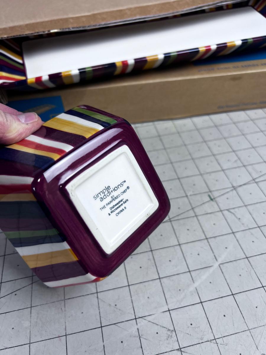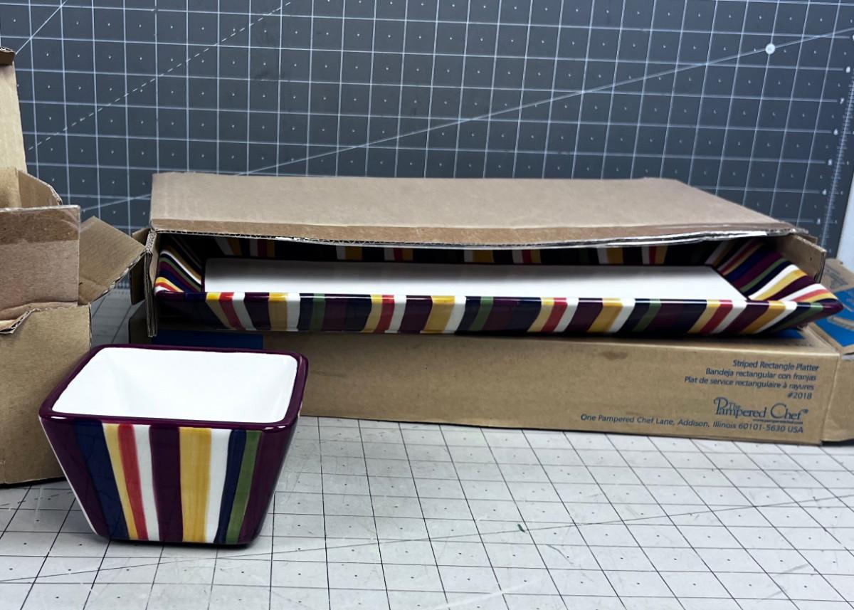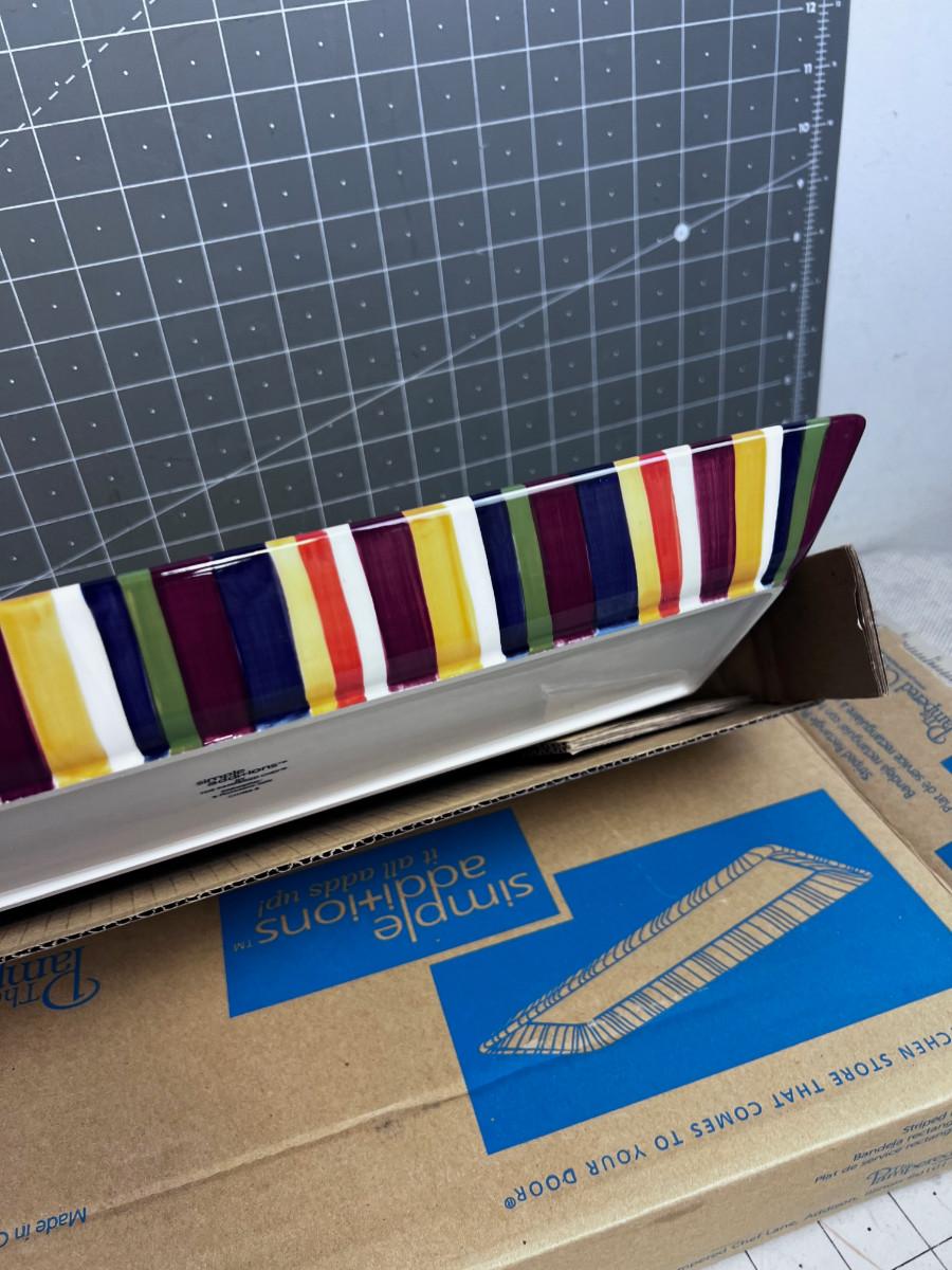 Pampered Chef Simple Editions, Stripped Serving Platter and Bowl, Ceramic