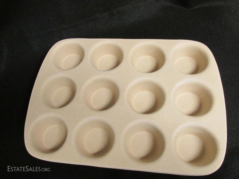 Stoneware Pan holds 12 Muffins. Please view photos at full screen size for best detail.