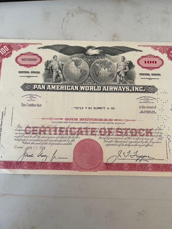 Pan American World Airways Stock Certificate